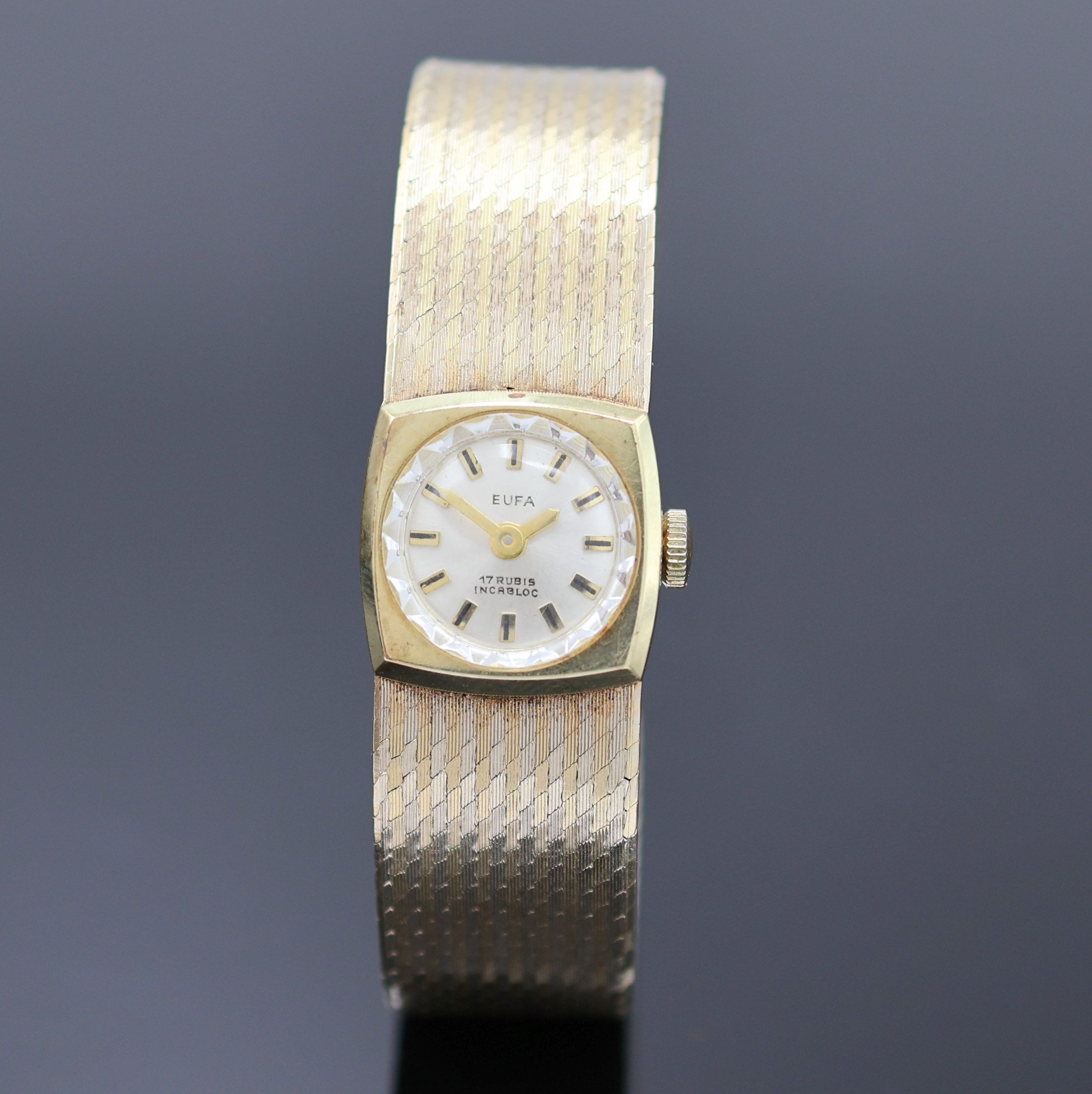 EUFA Damenarmbanduhr in GG 585/000, Schweiz um 1975, Handaufzug, 2-tlg. Geh. m. anges.