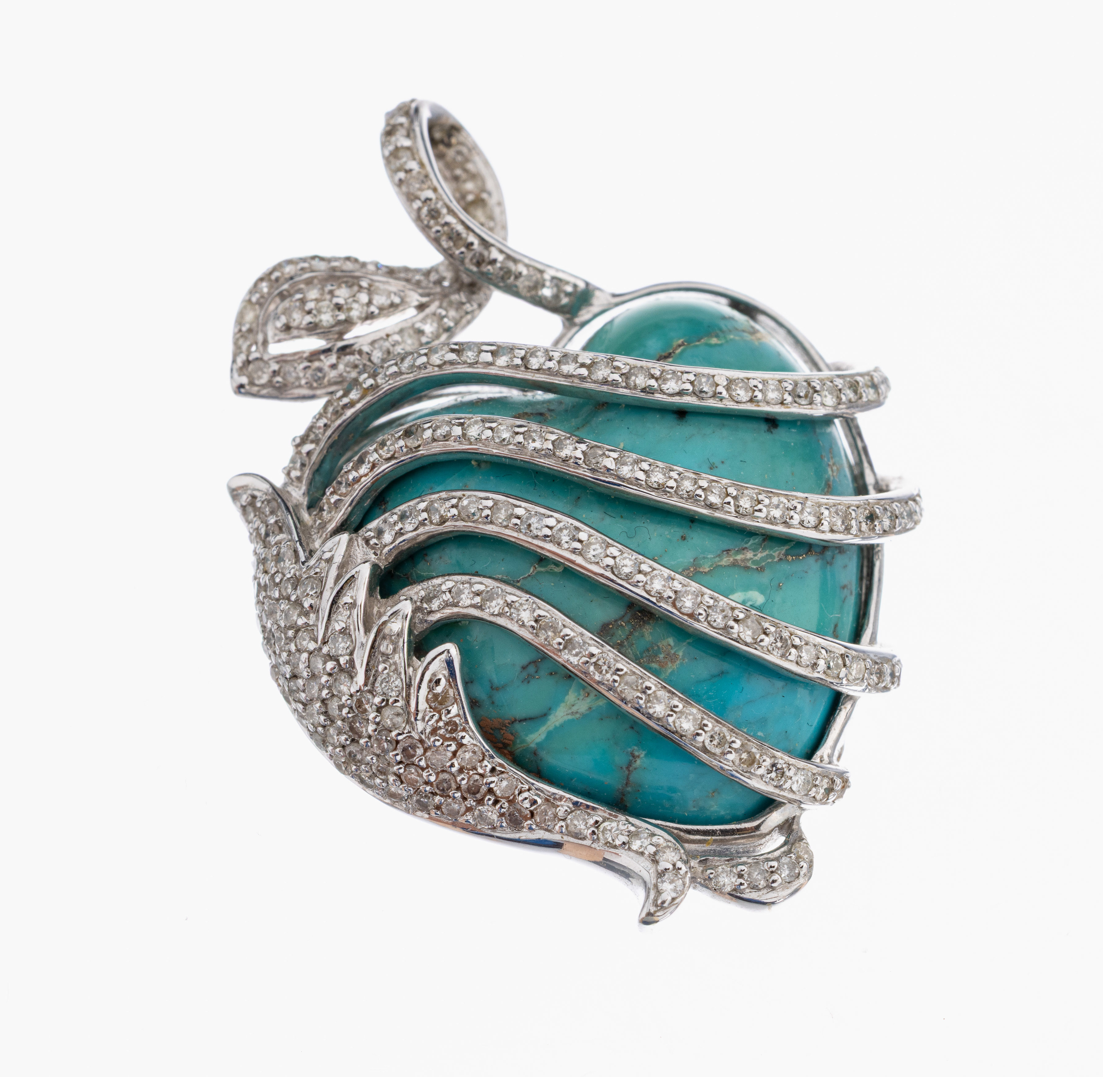18 kt Gold Türkis-Diamant-Anhänger, WG 750/000, herzf. Türkis mit Matrix (Risse),