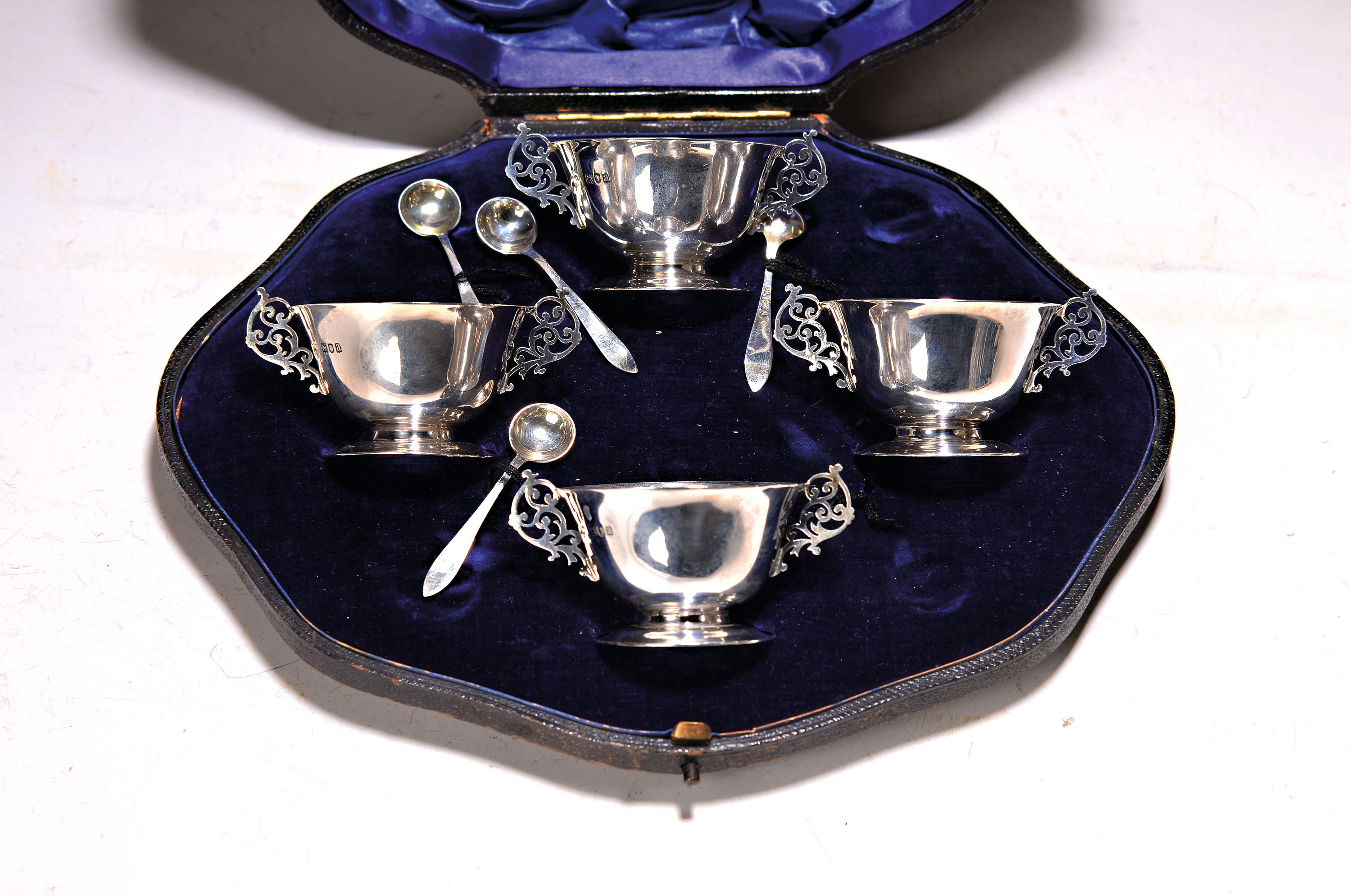 4 Kaviarschälchen aus Silber, London, 1896, Silber, Meistermarke JH, 4 Doppelhenkelschälchen