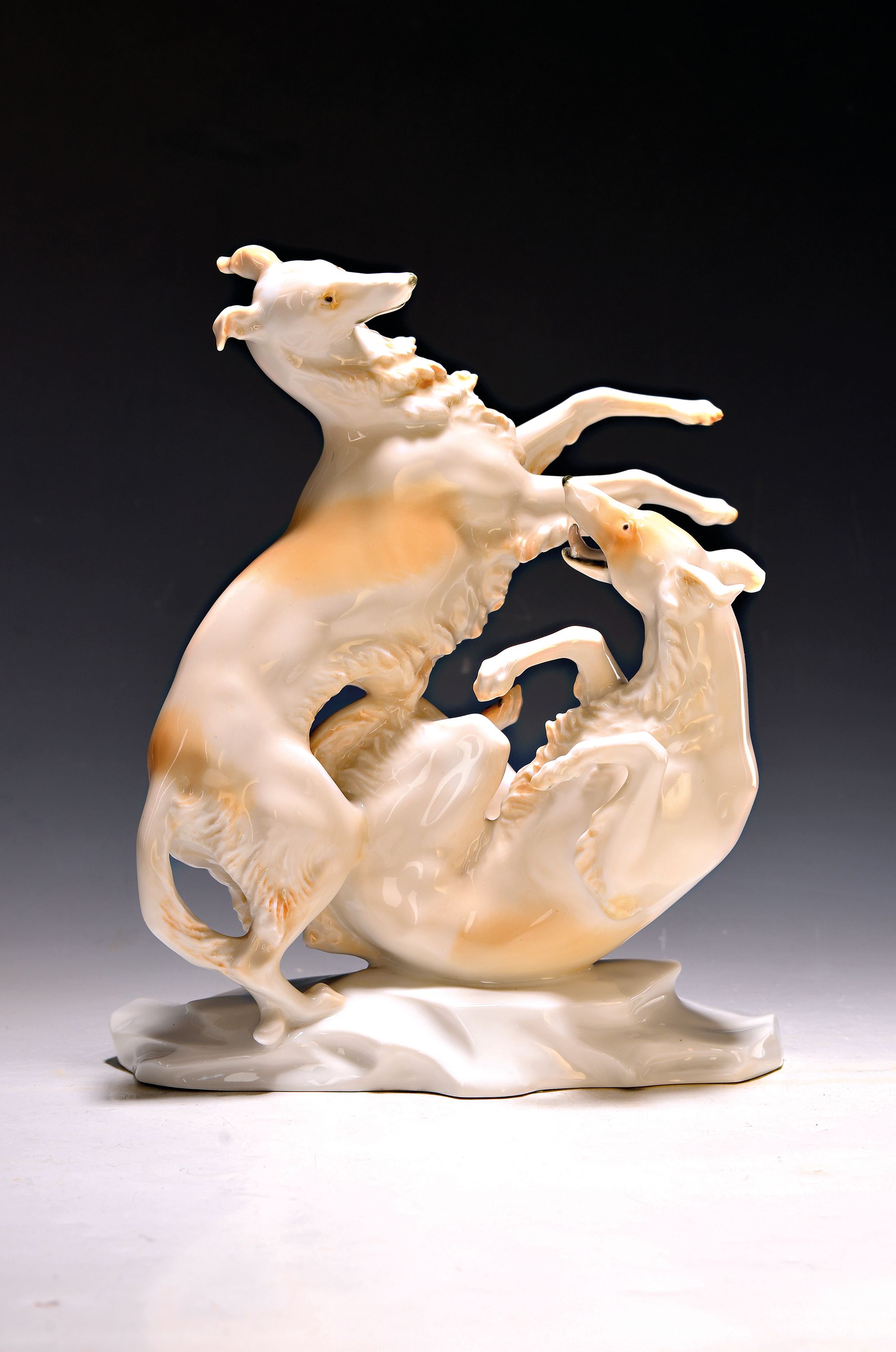 Porzellanfigur spielende Windhunde, Hutschenreuther, Selb, Entw. Max Hermann Fritz,