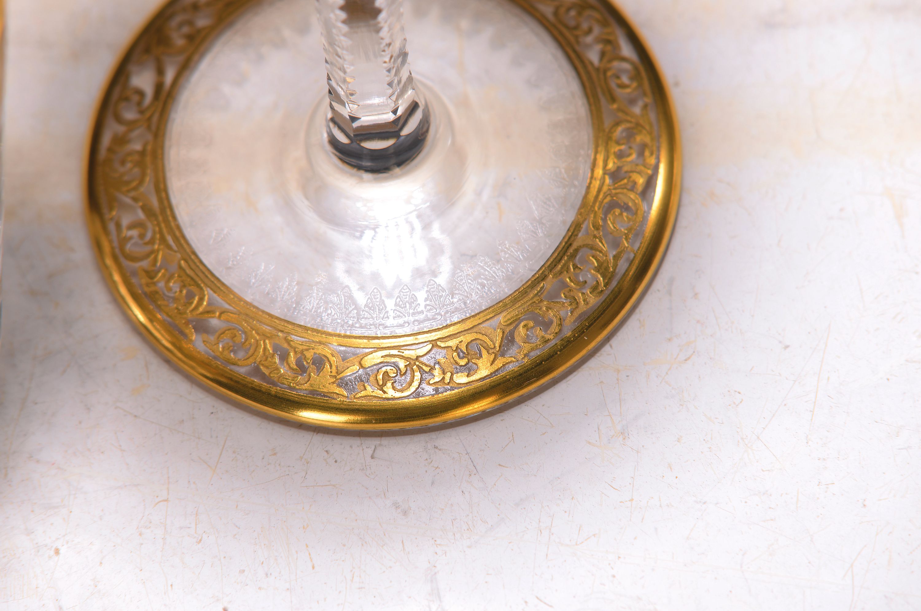 6 Whisky-Gläser, mundgeblasene, handgeschliffene Gläser, vergoldetes Fries, guter