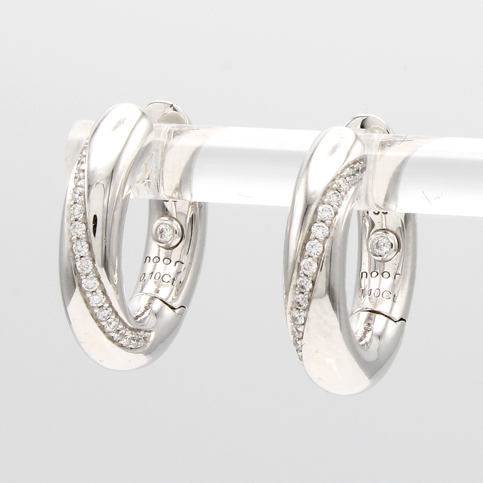 Paar Klappcreolen mit Brillanten, WG 750/000, 36 Brill. diagonal gef. zus. ca. 0.21 ct feines Weiß/vs Schätzpreis: 5780, - EUR