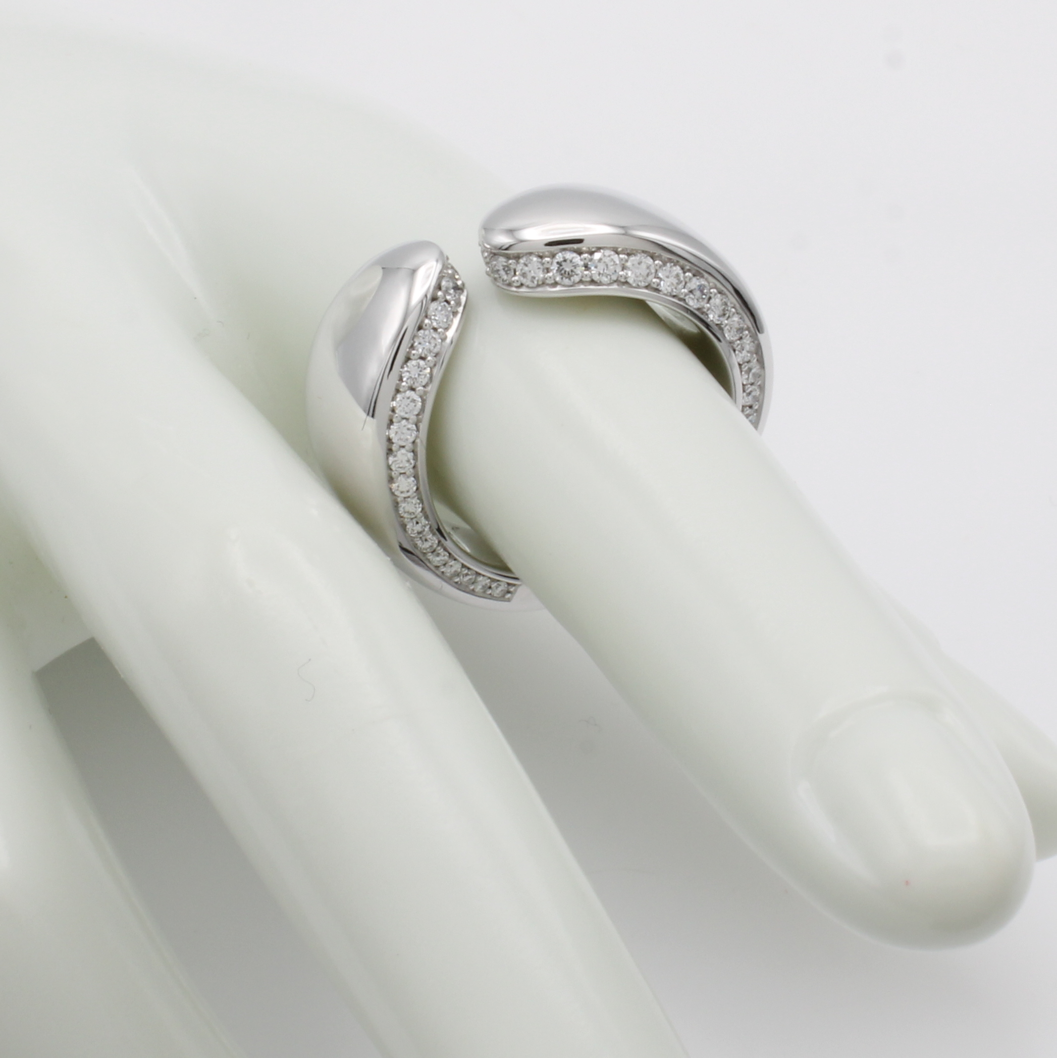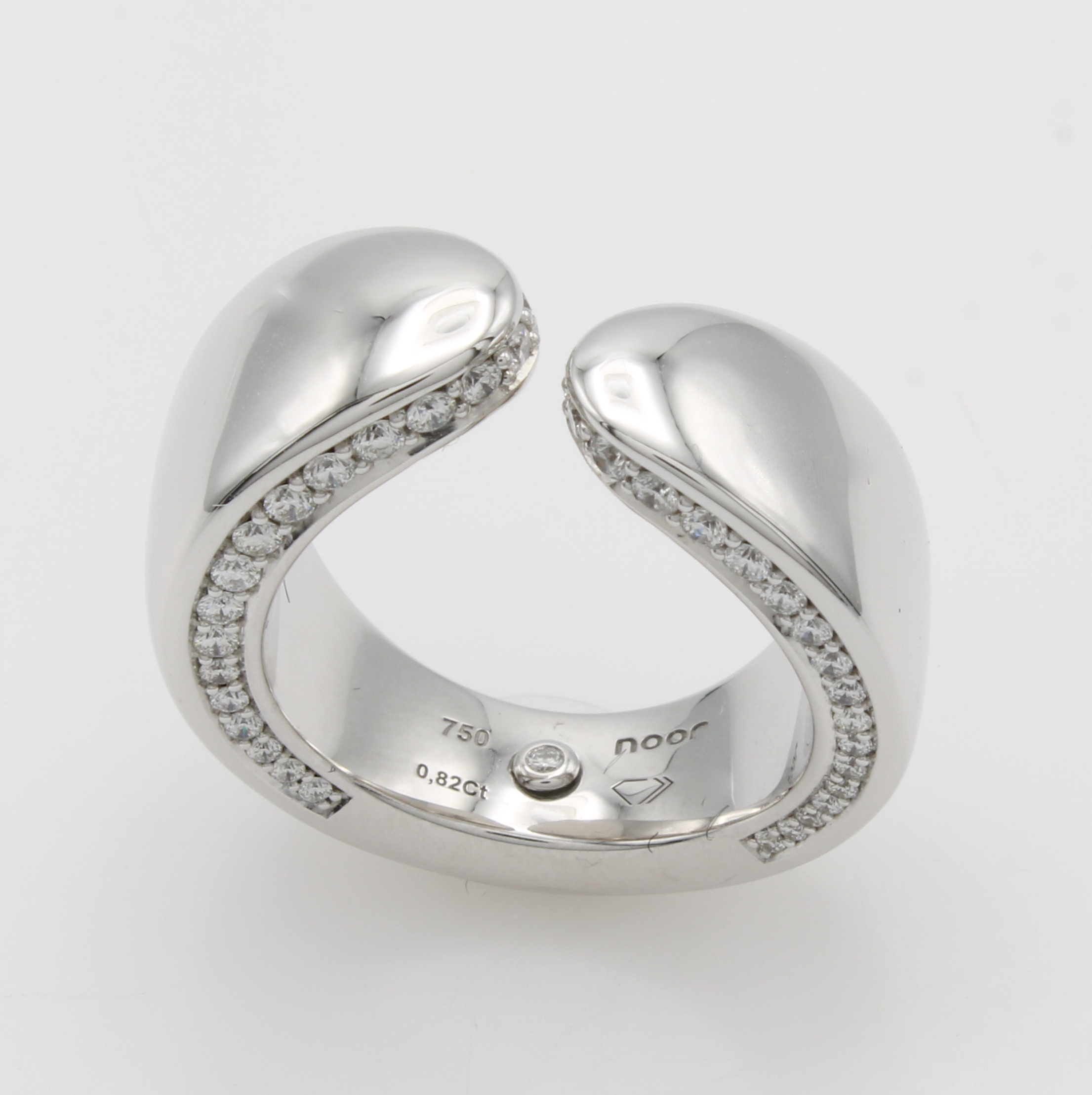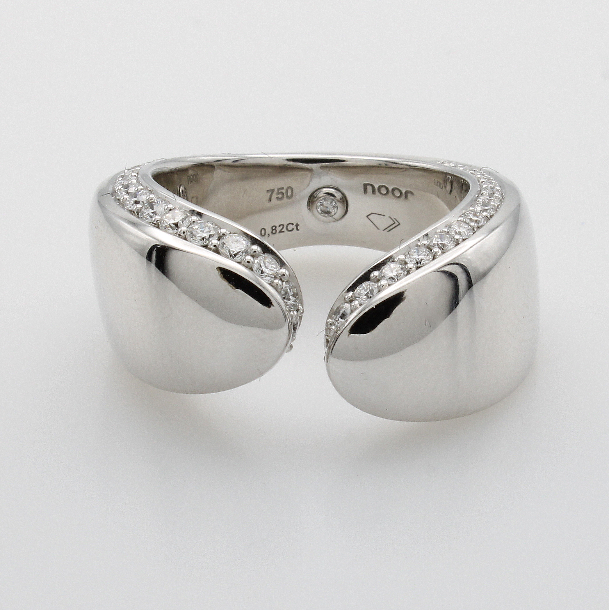 Ring mit Brillanten, WG 750/000, 65 Brill. zus. ca. 0.82 ct feines Weiß/vs, seitl. in Ringschiene gef. offen gearb., RW ca. 53 Schätzpreis: 7980, - EUR