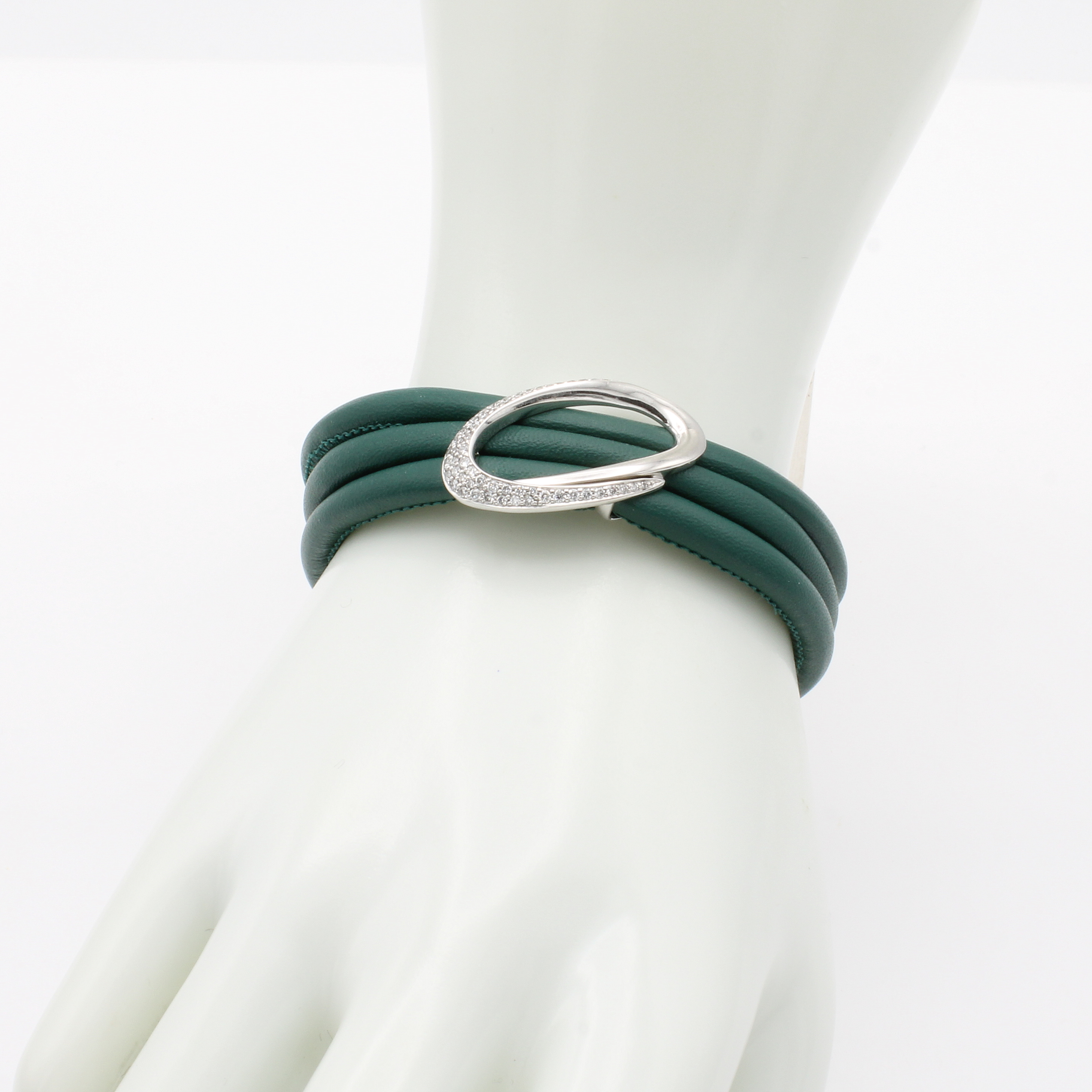 3-reihiges Lederarmband mit Brillanten, WG 750/000, 57 Brill. in ovalem Mittelteil ca. 0.46 ct Weiß/si, Kastenschl. mit Sicherheits- achten, L. ca. 19 cm Schätzpreis: 5760, - EUR