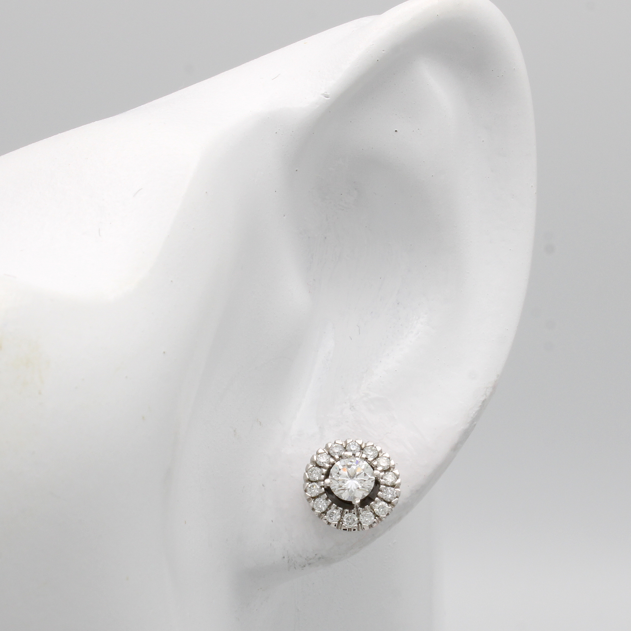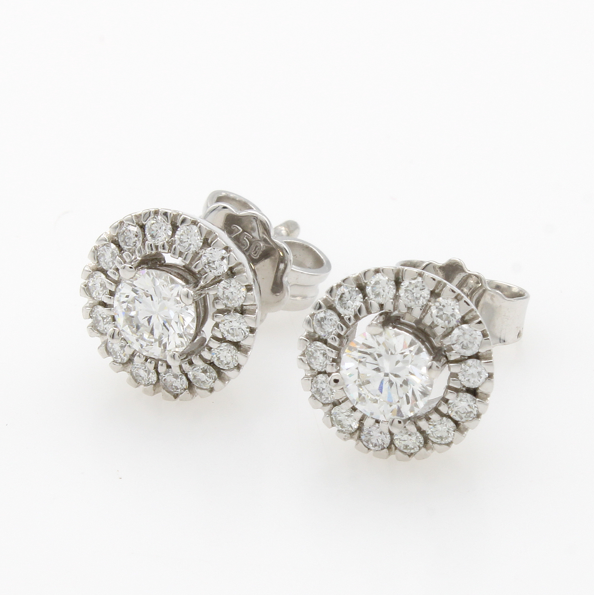 Paar Ohrstecker mit Brillanten, WG 750/000, Solitäre u. Besatzbrill. zus. ca. 0.78 ct Weiß/si, runde Form Schätzpreis: 4520, - EUR