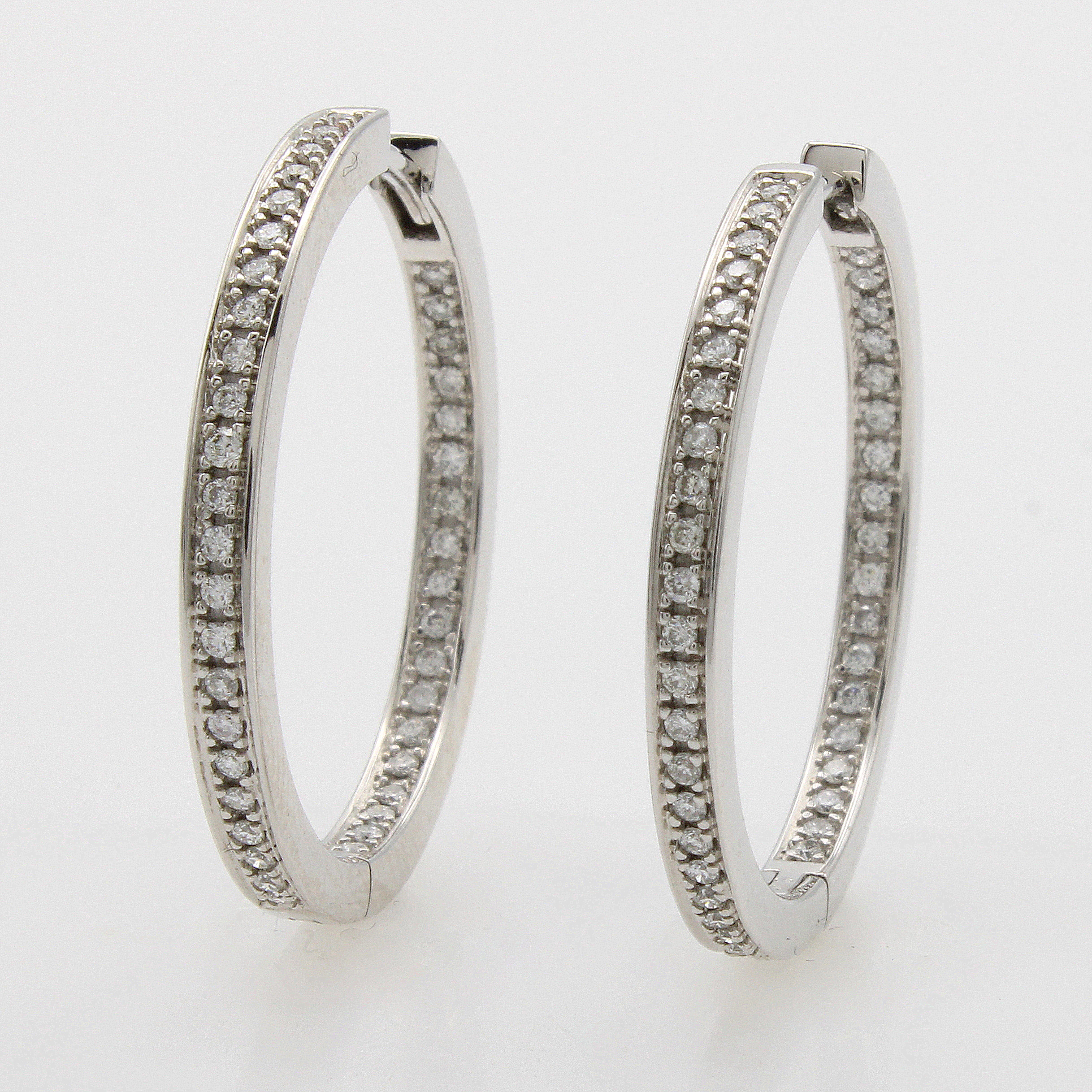 Paar Klappcreolen mit Brillanten, WG 585/000, 82 Brill. (z.T. auch innen gef.) zus. ca. 0.32 ct Weiß/si Schätzpreis: 2550, - EUR