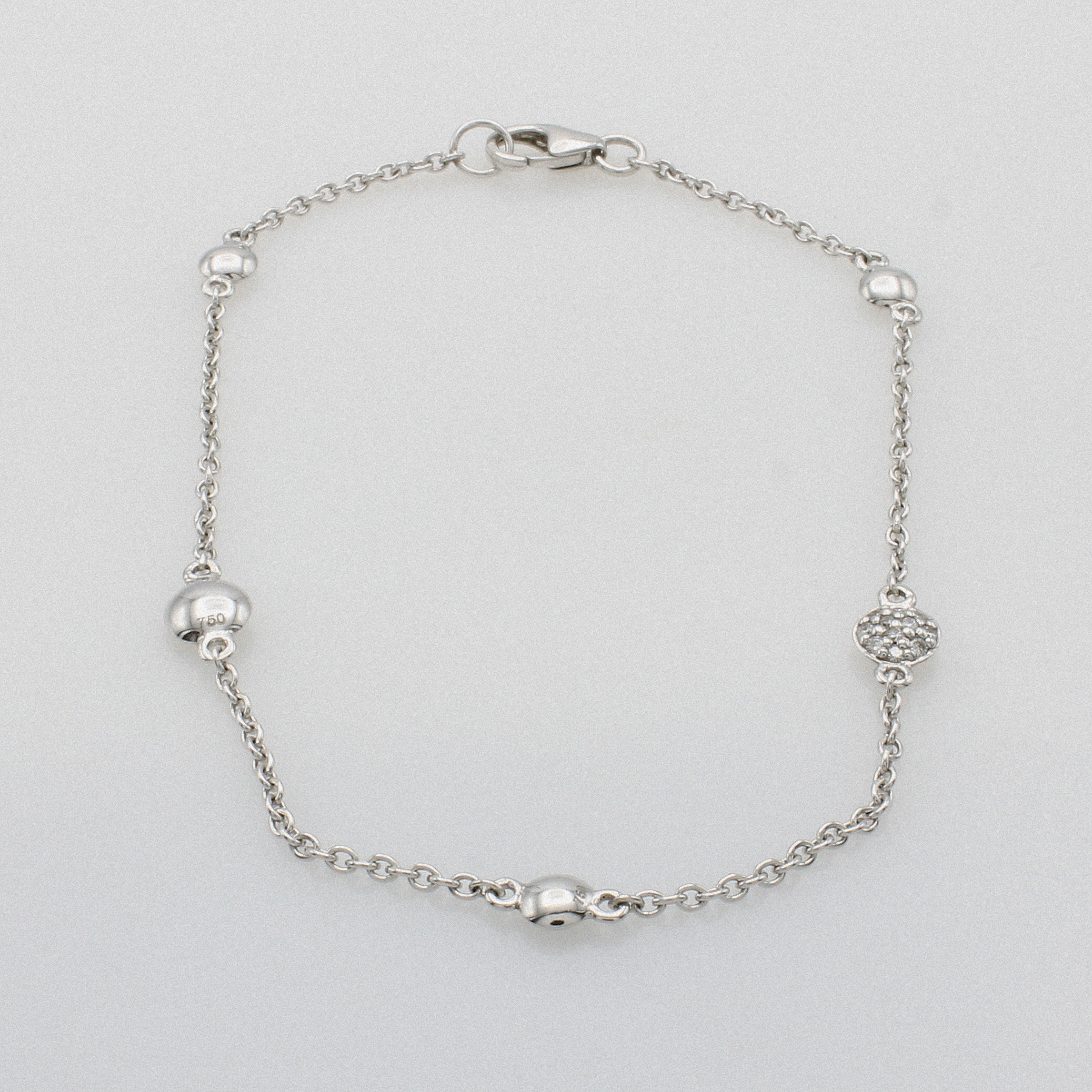 Armband mit Brillanten, WG 750/000, runde Zwischenelemente z.T. bes. m. Brill. zus. ca. 0.14 ct Weiß/si, L. ca. 18.5 cm Schätzpreis: 1920, - EUR