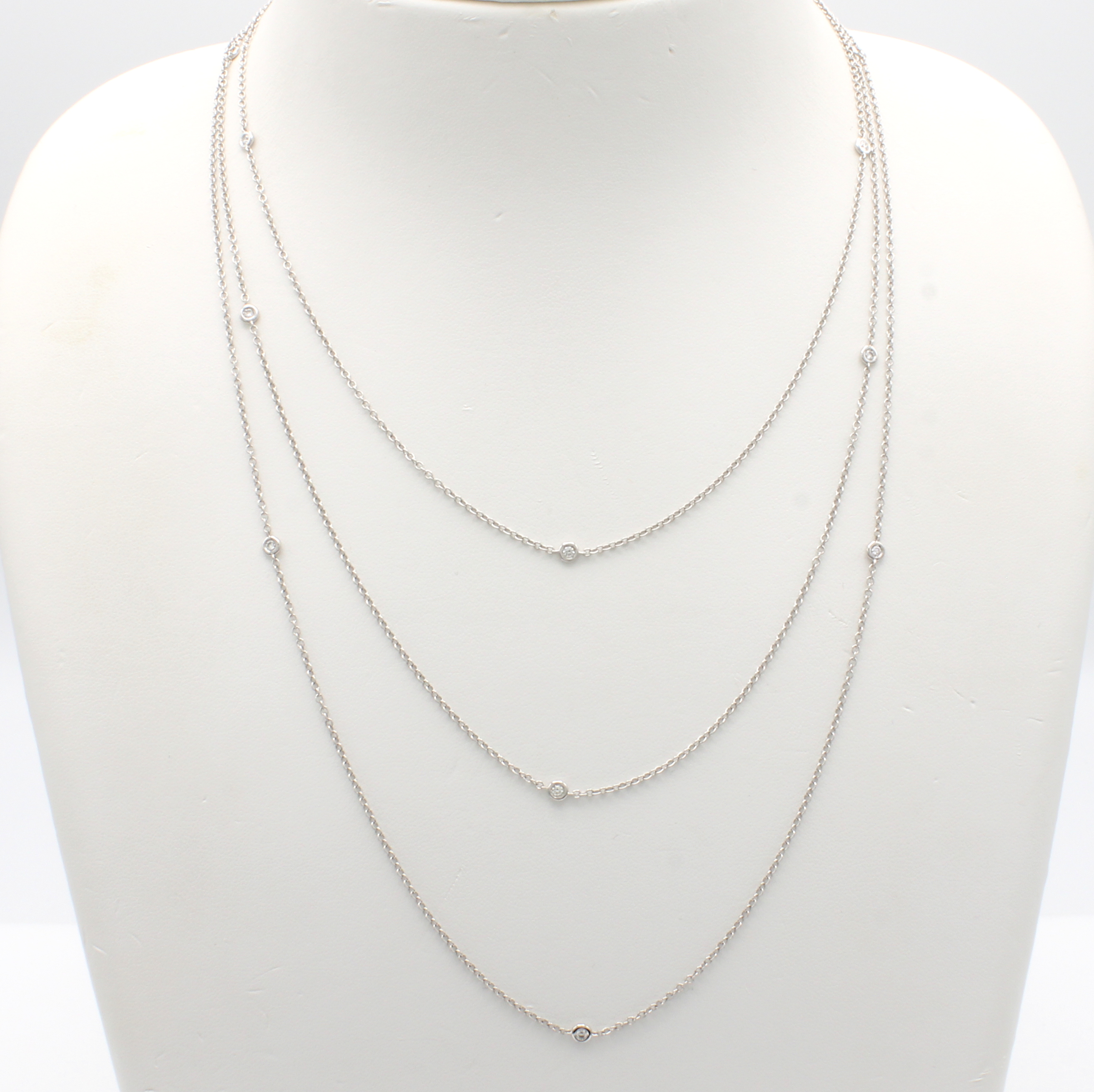 3 reihige Kette mit Brillanten, WG 750/000, Brill. in Zargenfassungen zus. ca. 0.45 ct Weiß/si, L. ca. 50, 60 u. 68 cm Schätzpreis: 4800, - EUR
