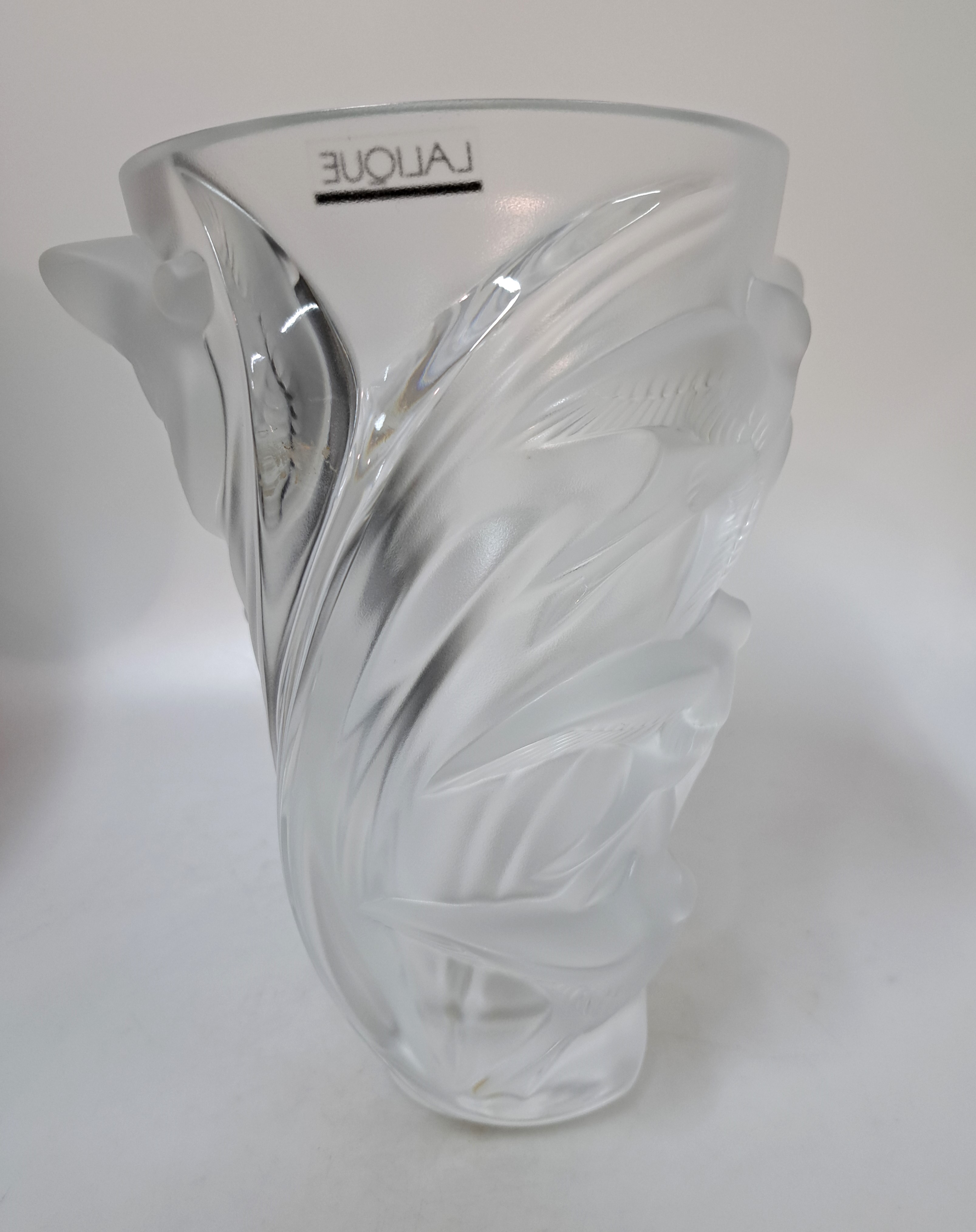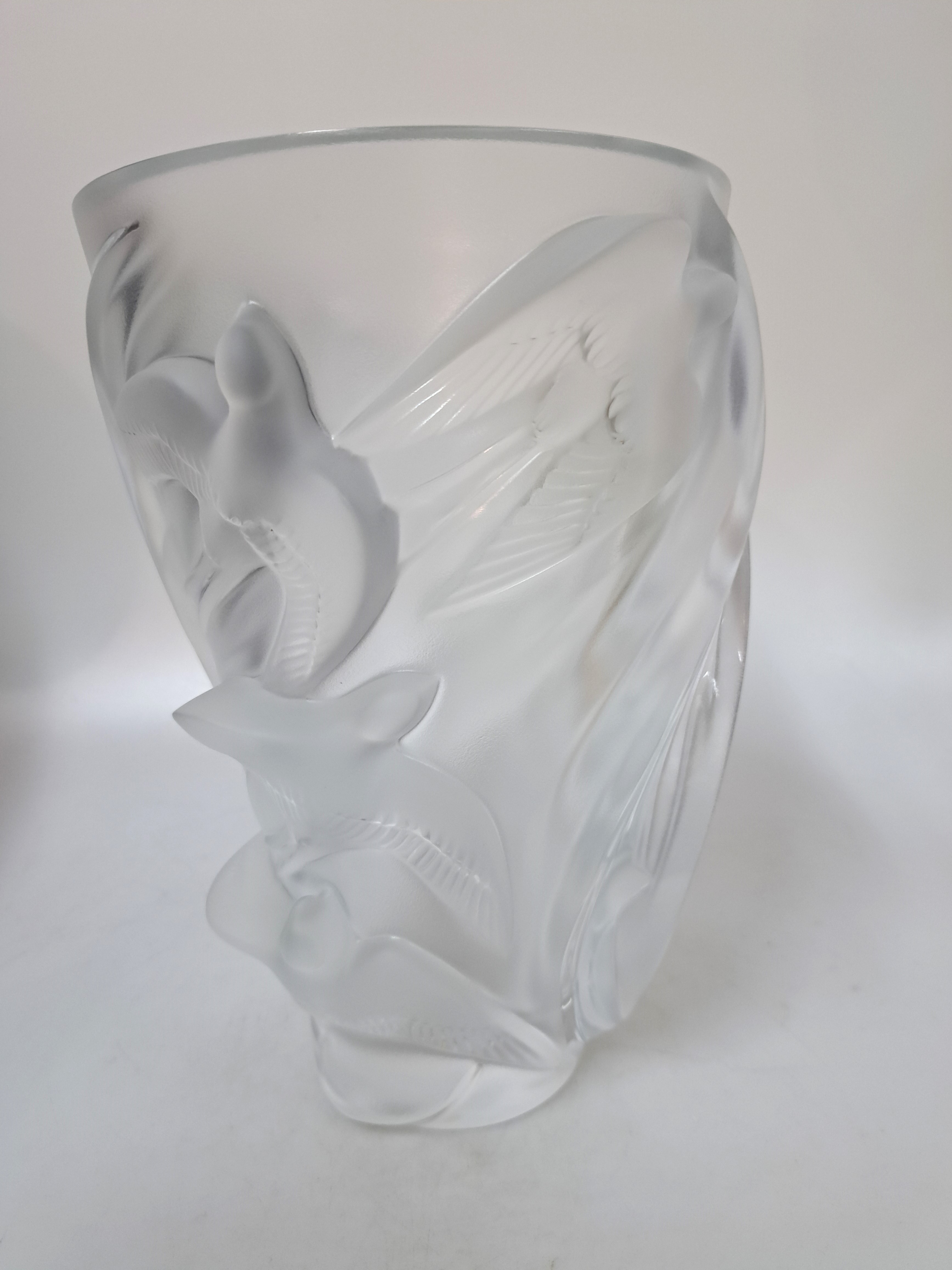 Vase "Martinets", Lalique, Frankreich, farbloses Glas, partiell satiniert, Dekor