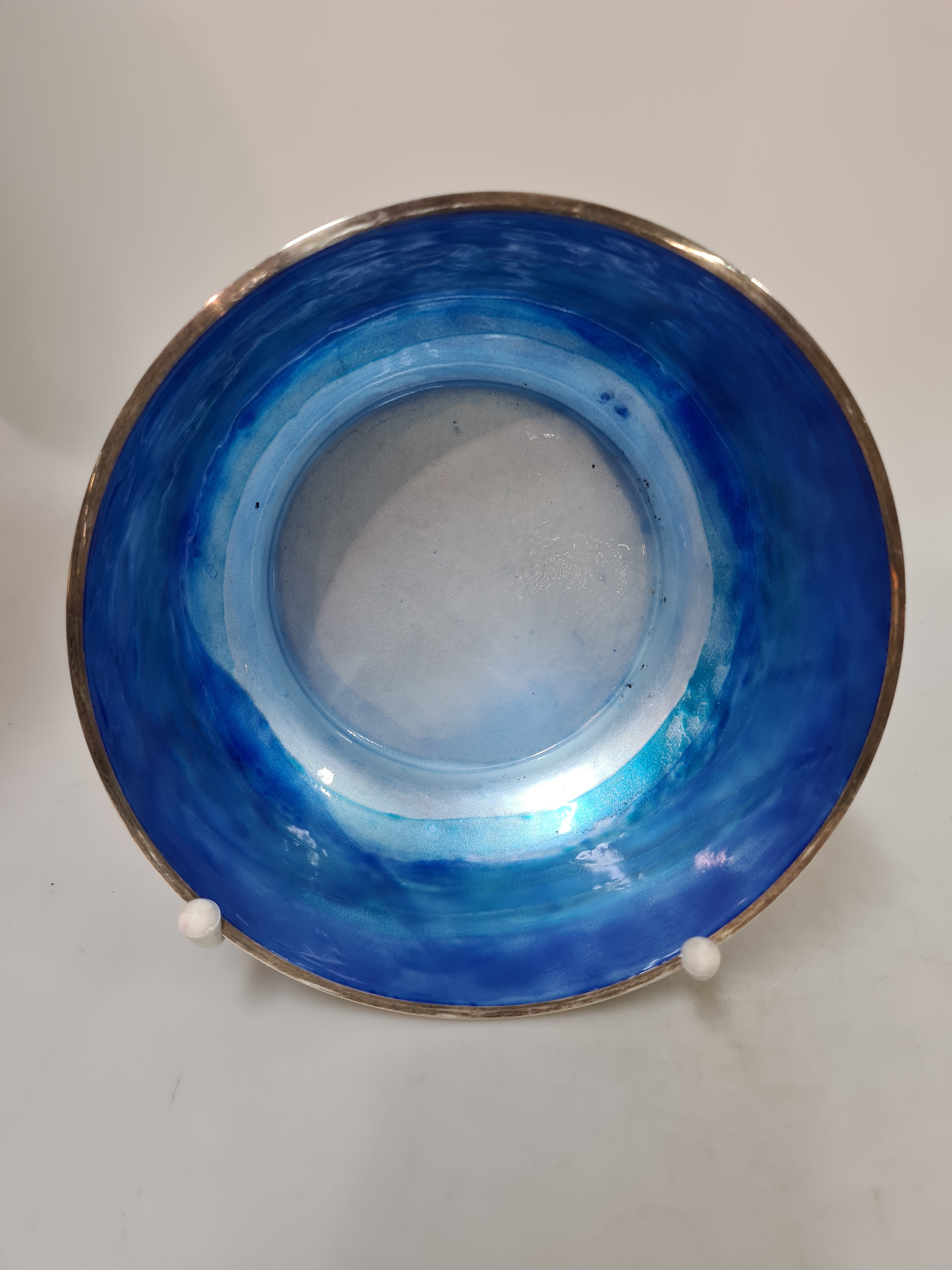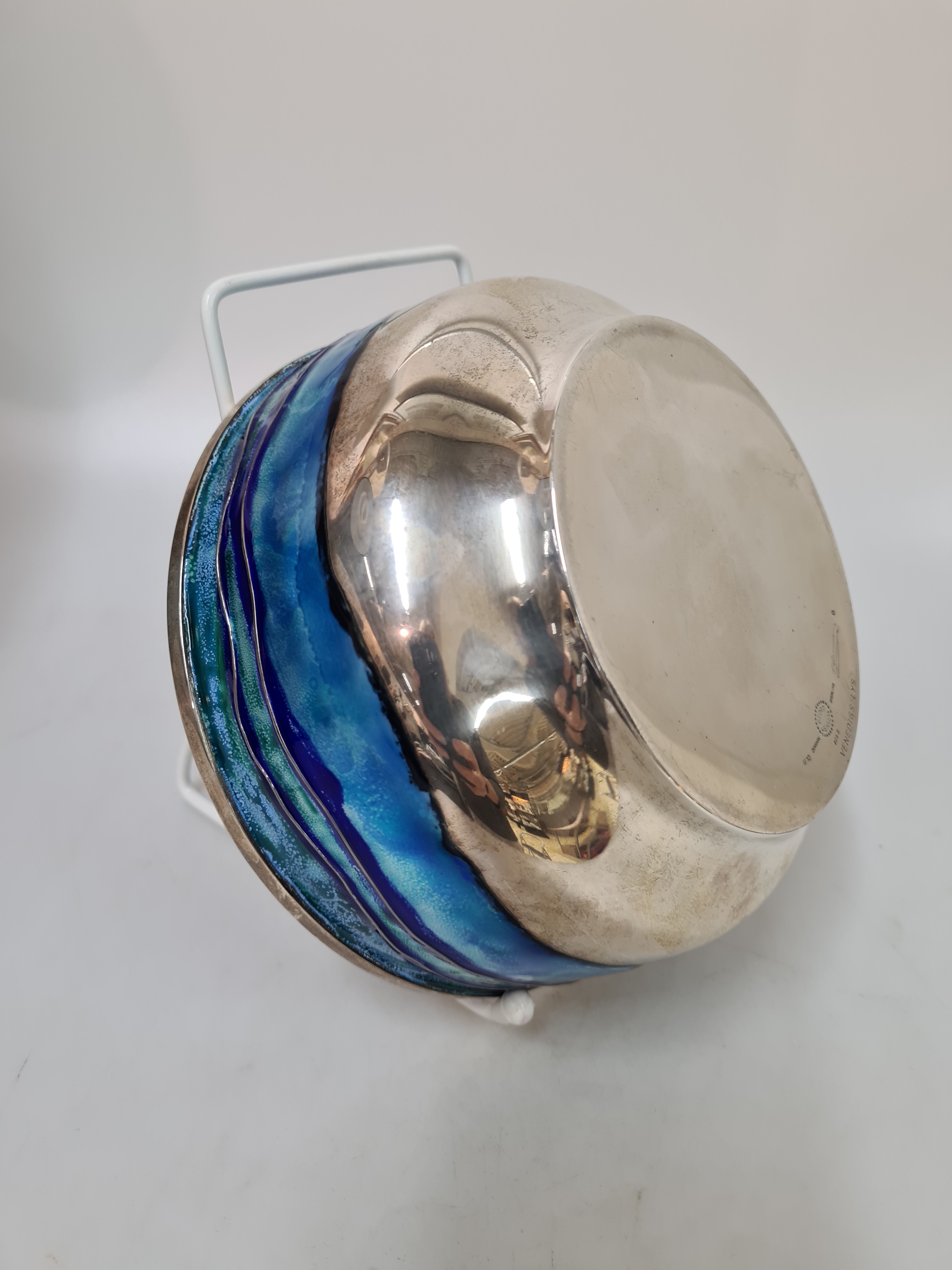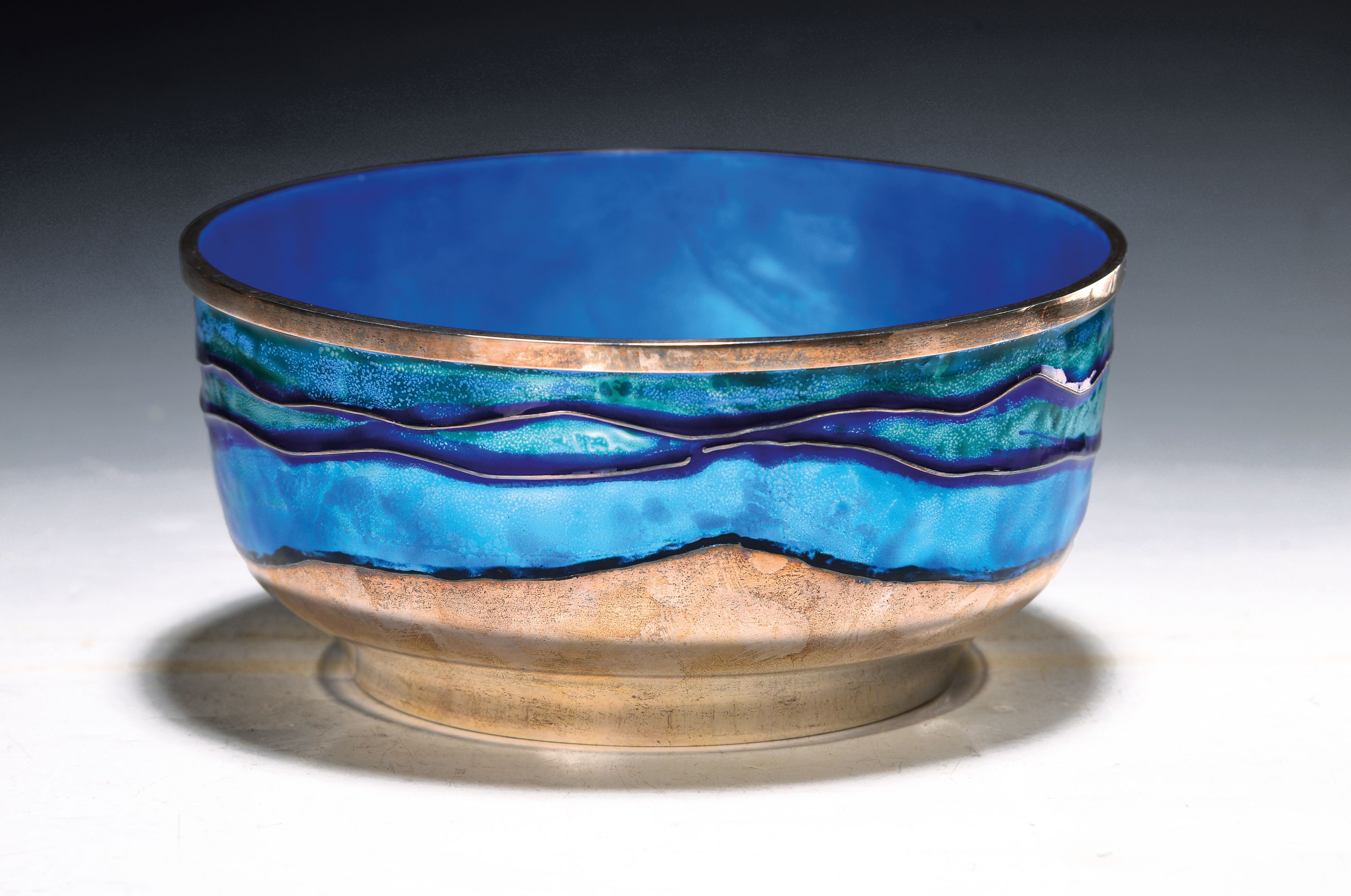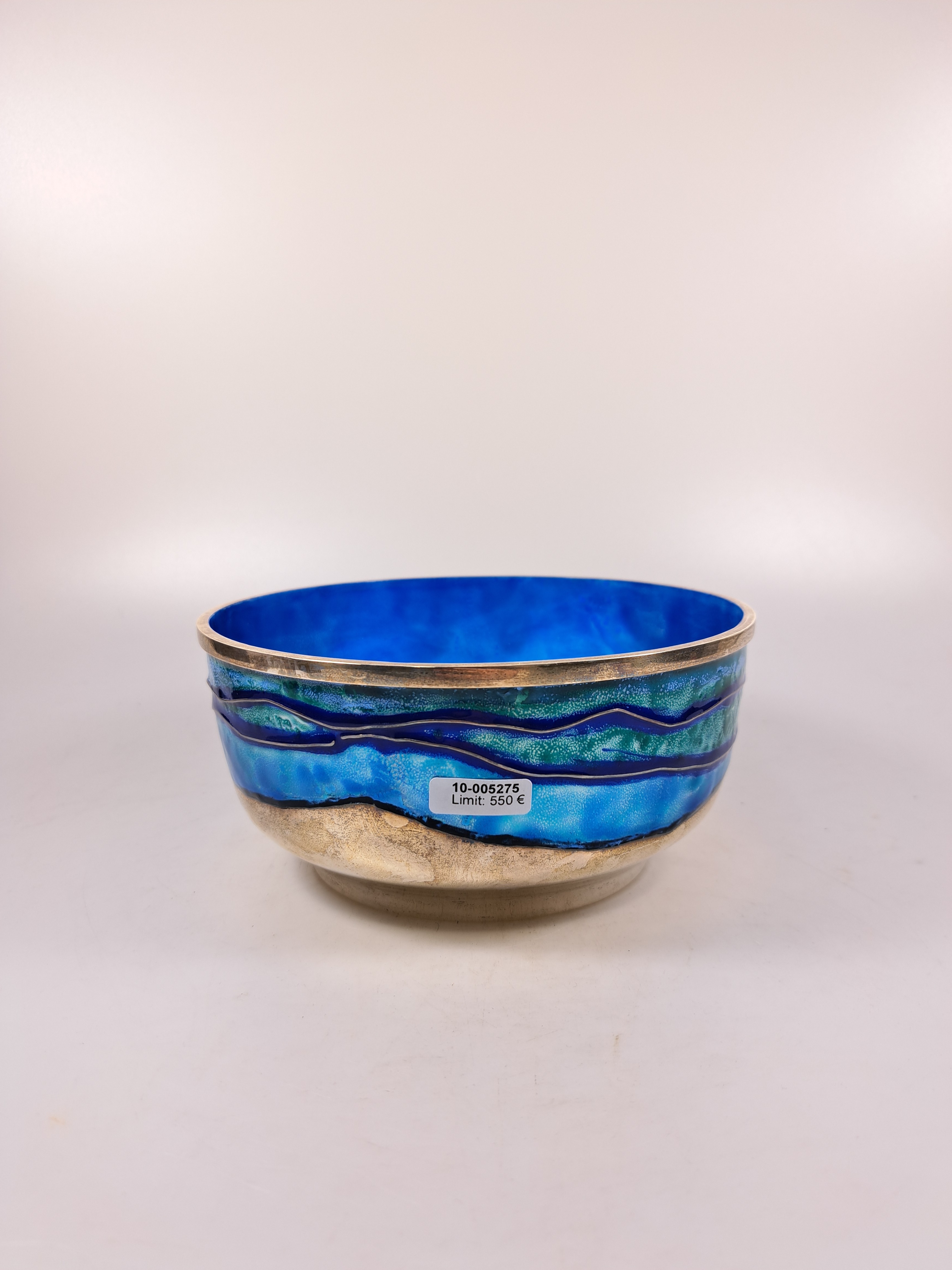 Silberschale mit Emaildekor, Georg Jensen, Dänemark, 925er Silber, Silberfond, innen