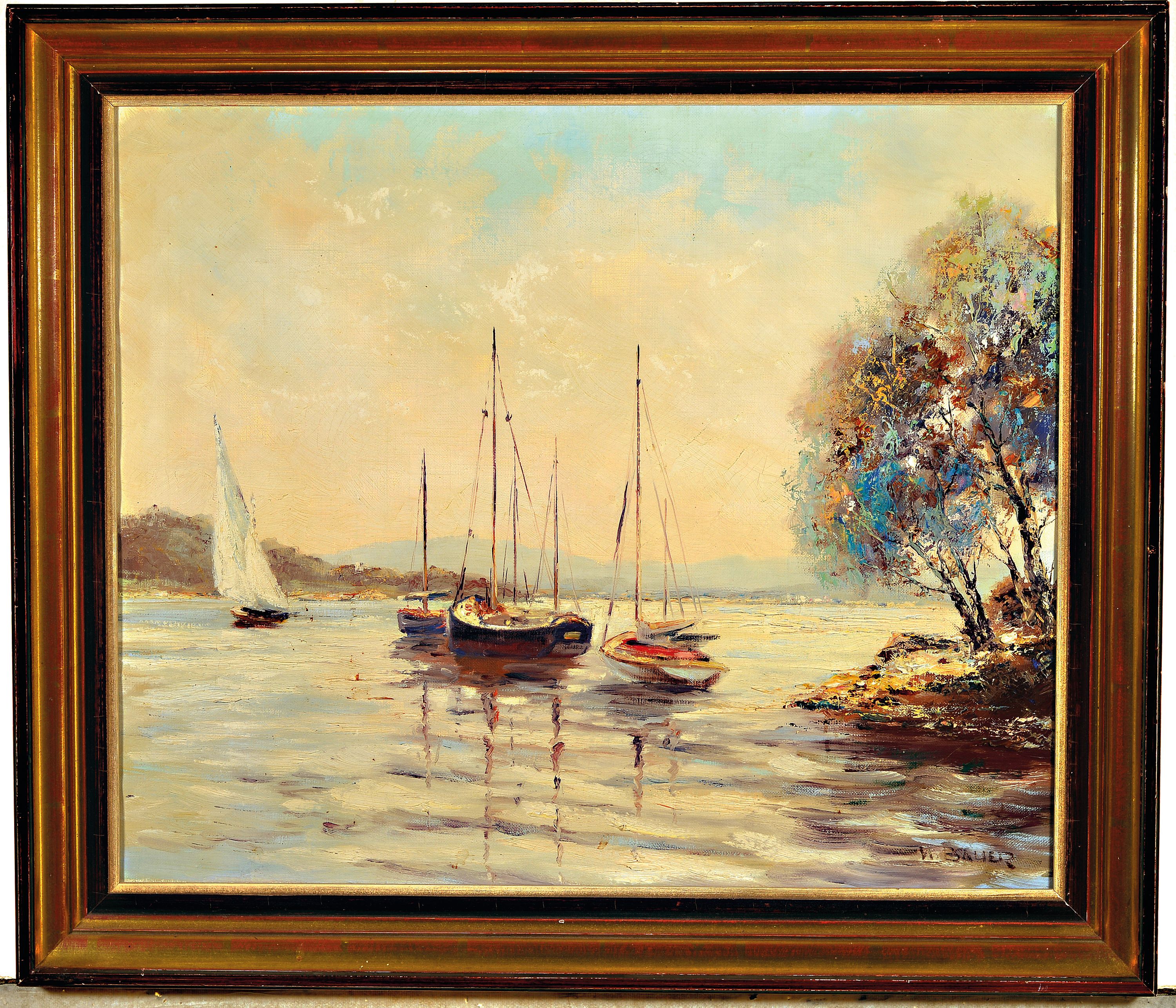 Willi Bauer, geb. 1923 Aschaffenburg, Segelboote auf einem See, rechts unten sign.,