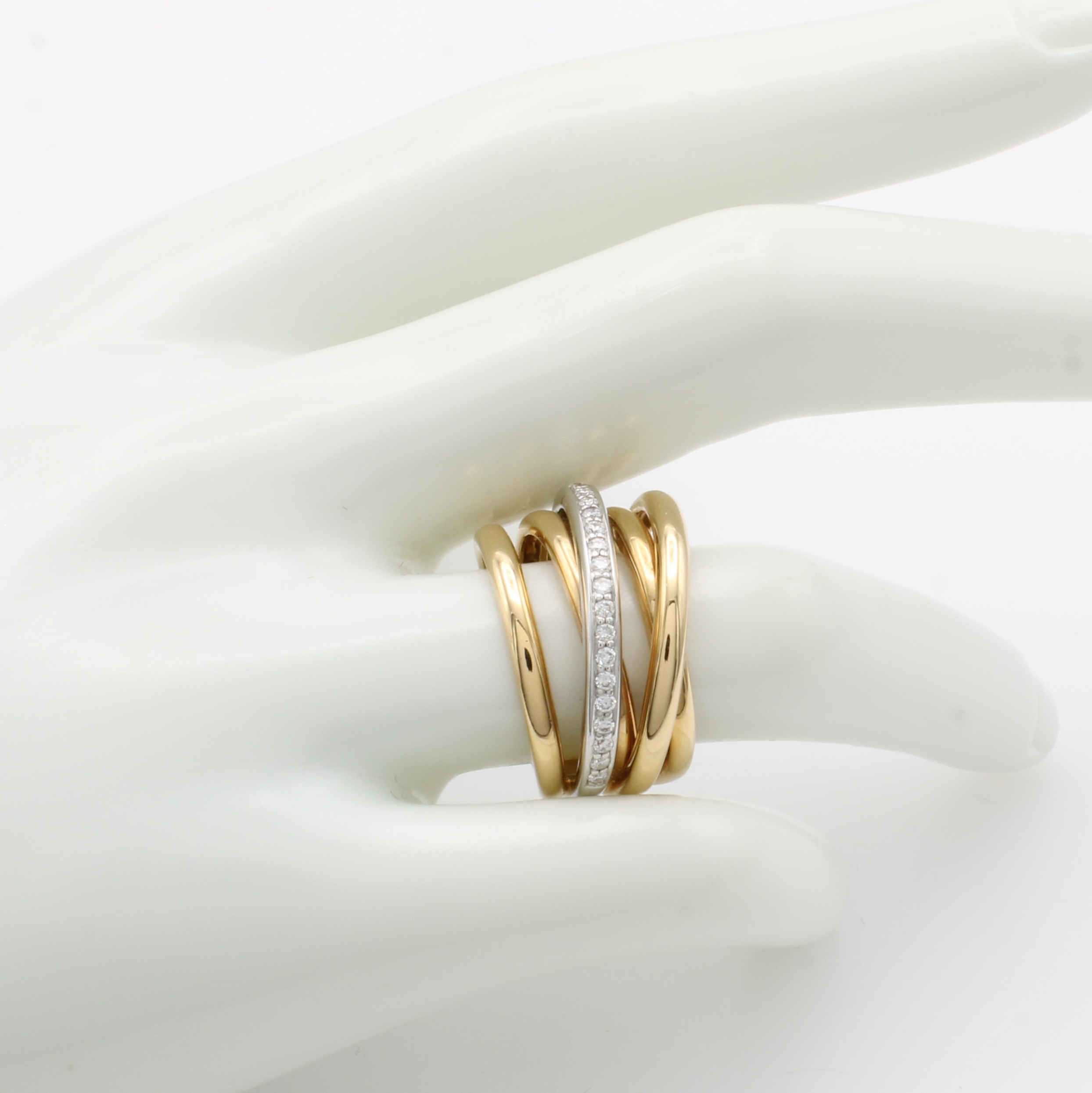 Ring mit Brillanten, RG/WG 750/000, 5 rhg. Optik, 1 Reihe z.T. bes. m. Brill. 0.28 ct Weiß/si, RW ca. 54 Schätzpreis: 4410, - EUR