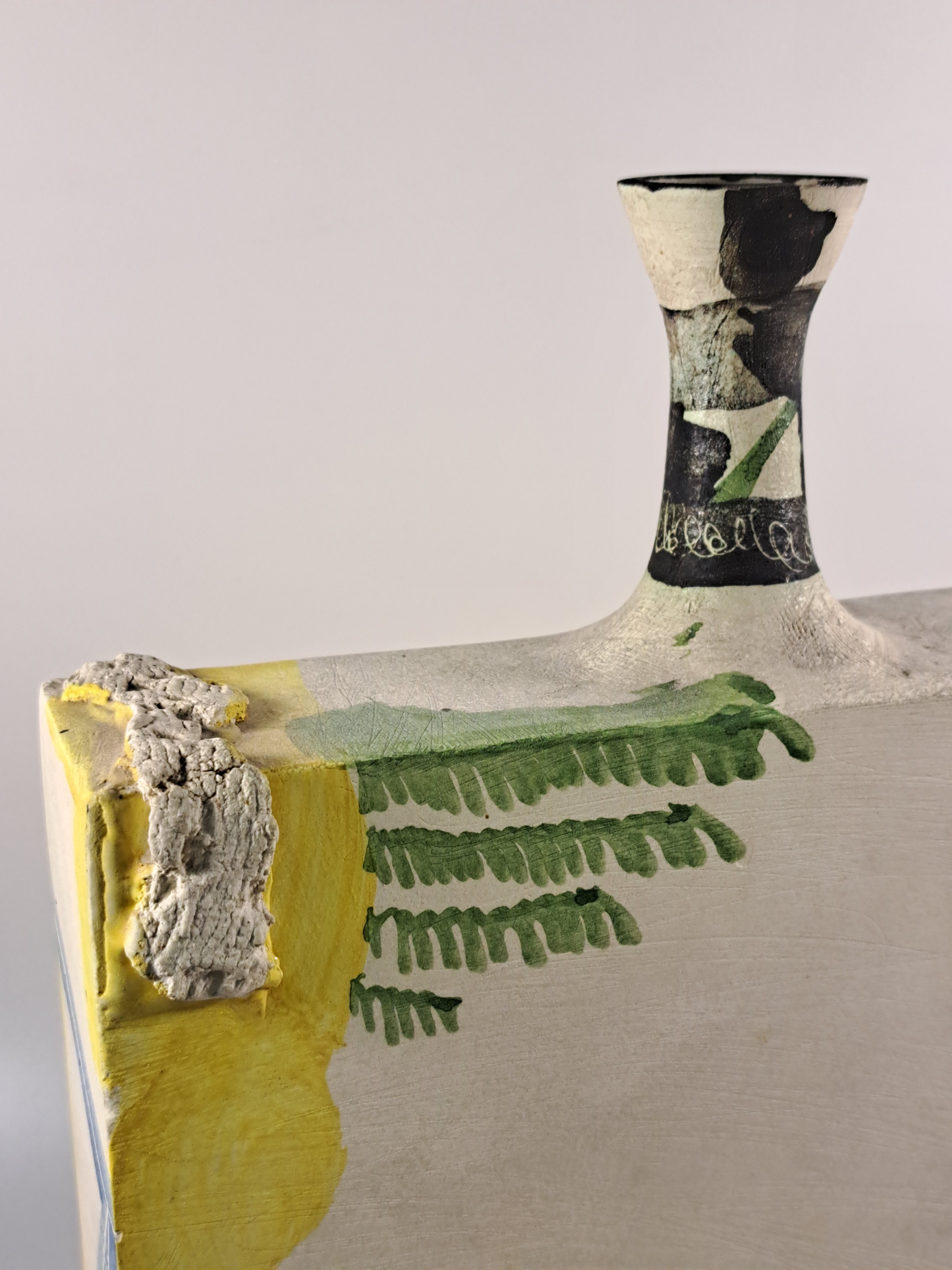 Gilbert Portanier, 1926 Cannes-2023 Vallauris , weißer Ton, handbemalt und mit Ritzdekor