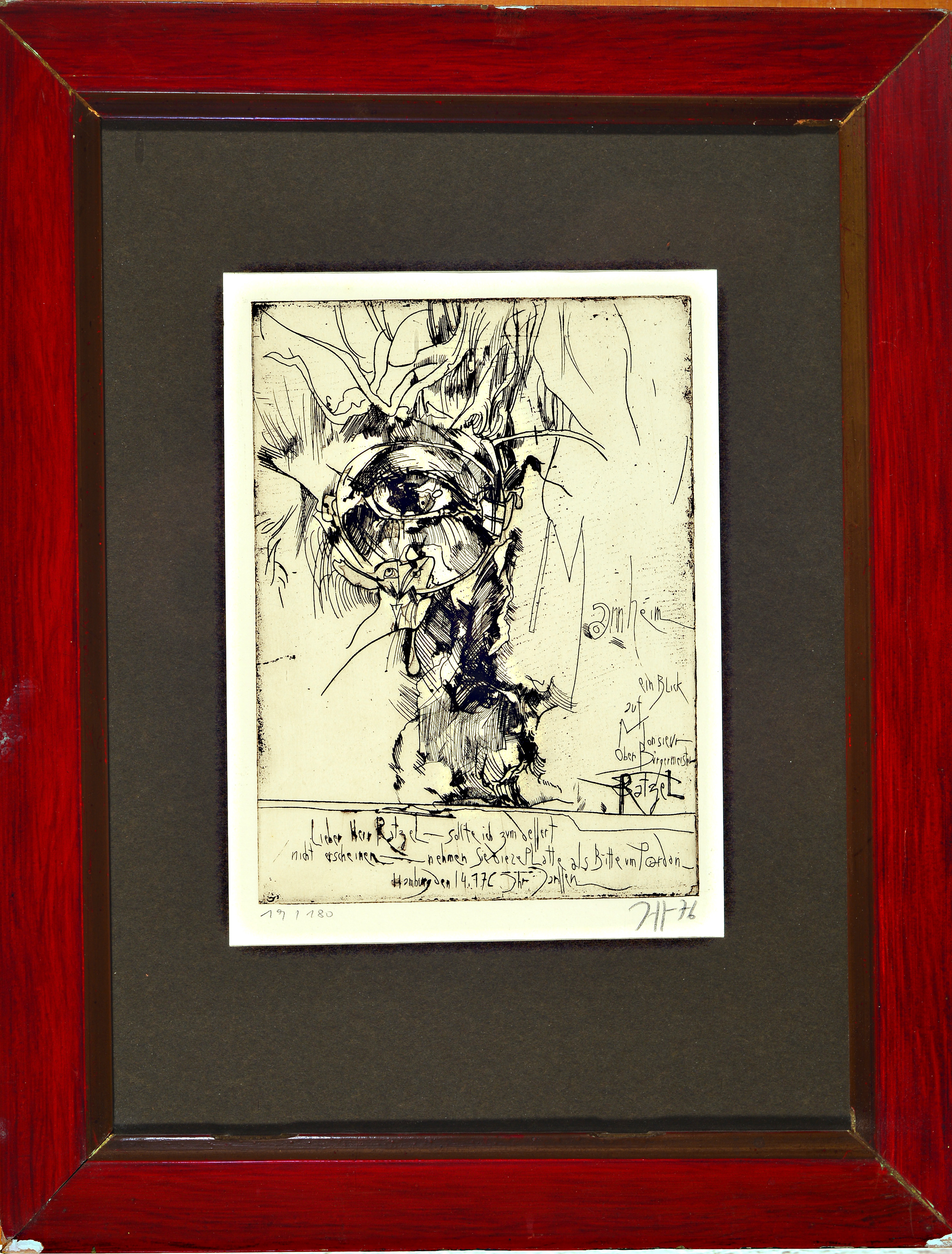 Horst Janssen, 1929-1995, 3 Radierungen: 1x Selbst, 1970, num. 160/200, ca. 30x20cm, PP, u.Gl., R. ca. 48x40cm; für Herm. Laatzen, 1976, num. 12/180, ca. 25x17cm, PP, u.Gl., R. ca. 48x40cm; Bürgerm. Ratzel, 1976, num. 19/180, ca. 22x16cm, PP, u.Gl., R. ca. 45x35cm