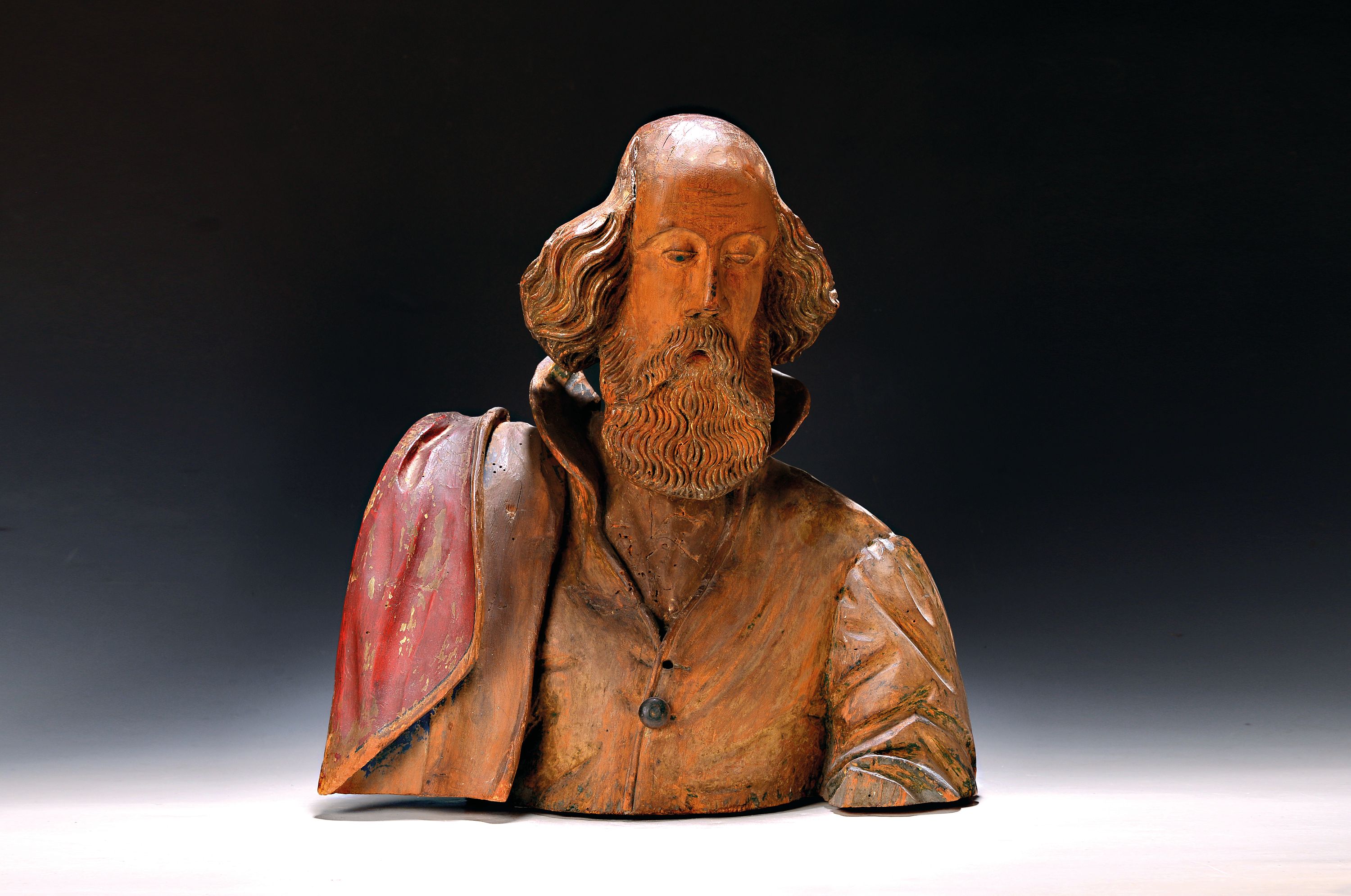 Büste eines Heiligen, deutsch, Ende 18. Jh., Lindenholz geschnitzt, alter Wurmbefalls