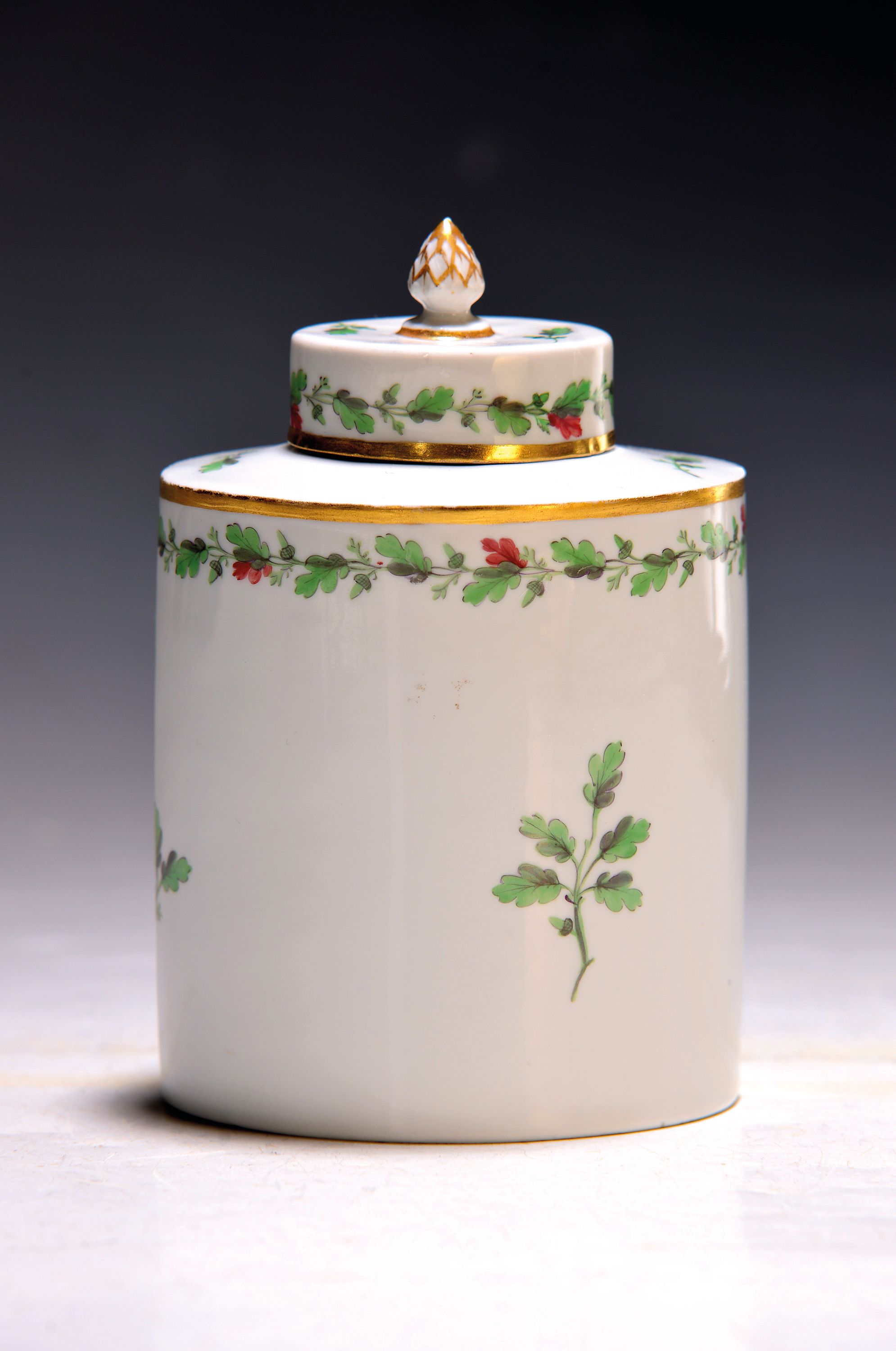Klassizistische Teedose, Fürstenberg, um 1800, Eichblattdekor, Porzellan, Blindmarke