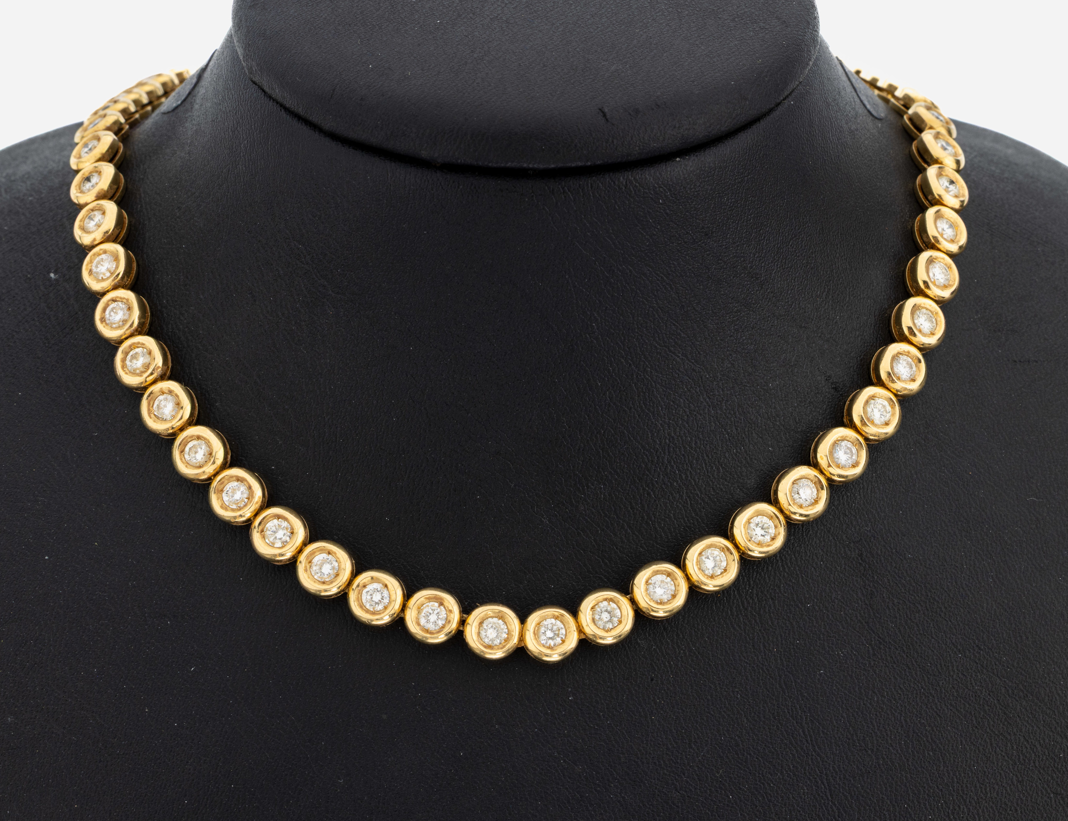 18 kt Gold Brillant-Collier, GG 750/000, 59Brillanten zus. ca. 8.65 ct Weiß-l.get.Weiß/