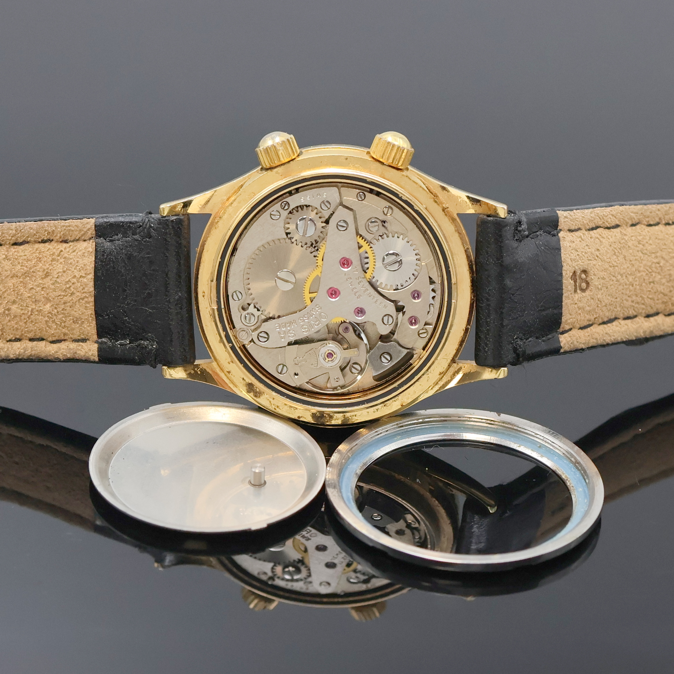 getr. Antrieb, sinngem. getr. Kronen, Ringunr., Flachspir., Stoßs., D. ca. 34 mm,