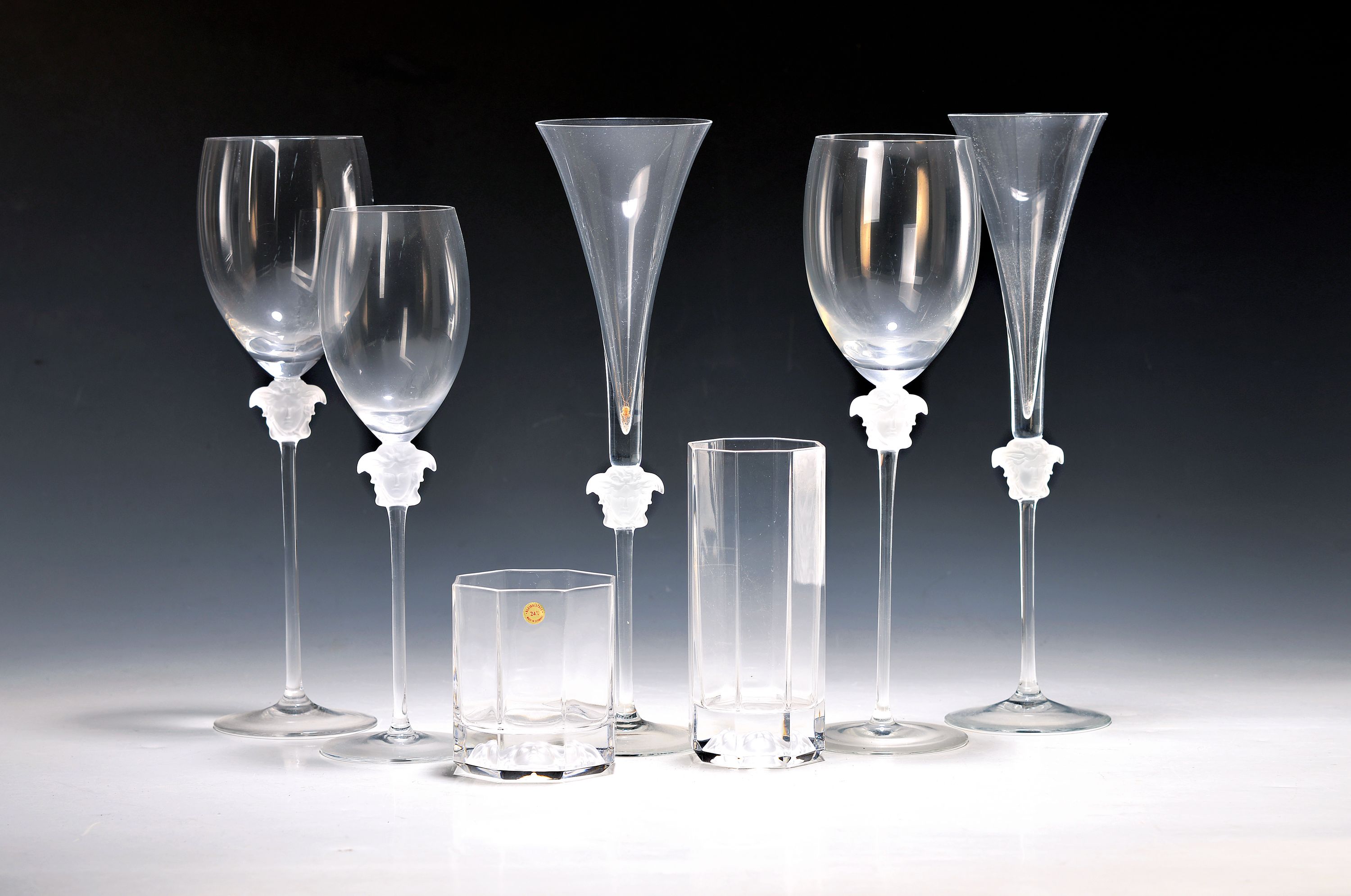 Trinkglasservice, Rosenthal, Dekor Medusa, Entwurf Gianni Versace, farbloses Glas