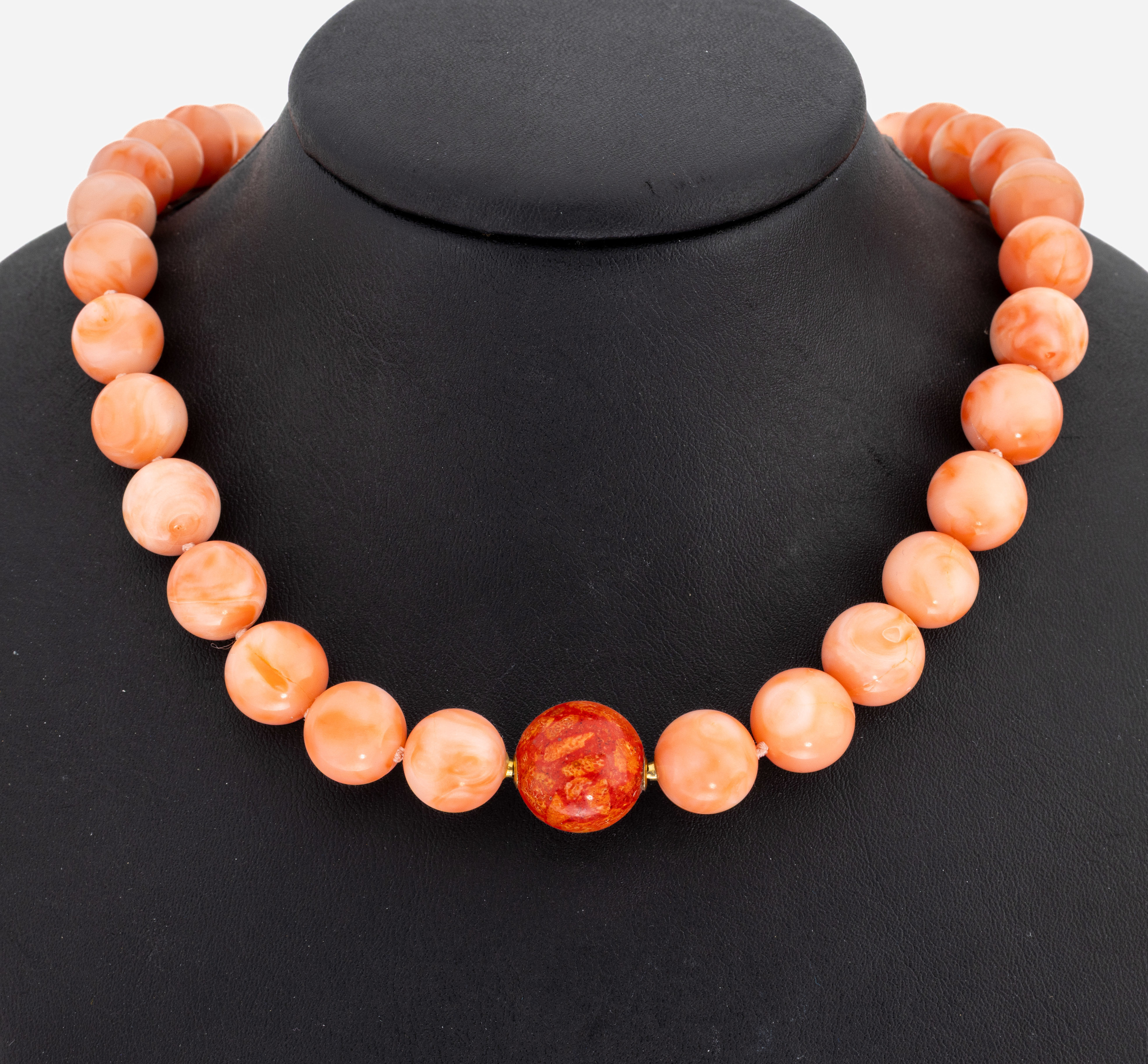 Korallen-Collier, Engelhautkorallen-Kugeln,D. ca. 11.4-12.7 mm, Bajonetteschließe,