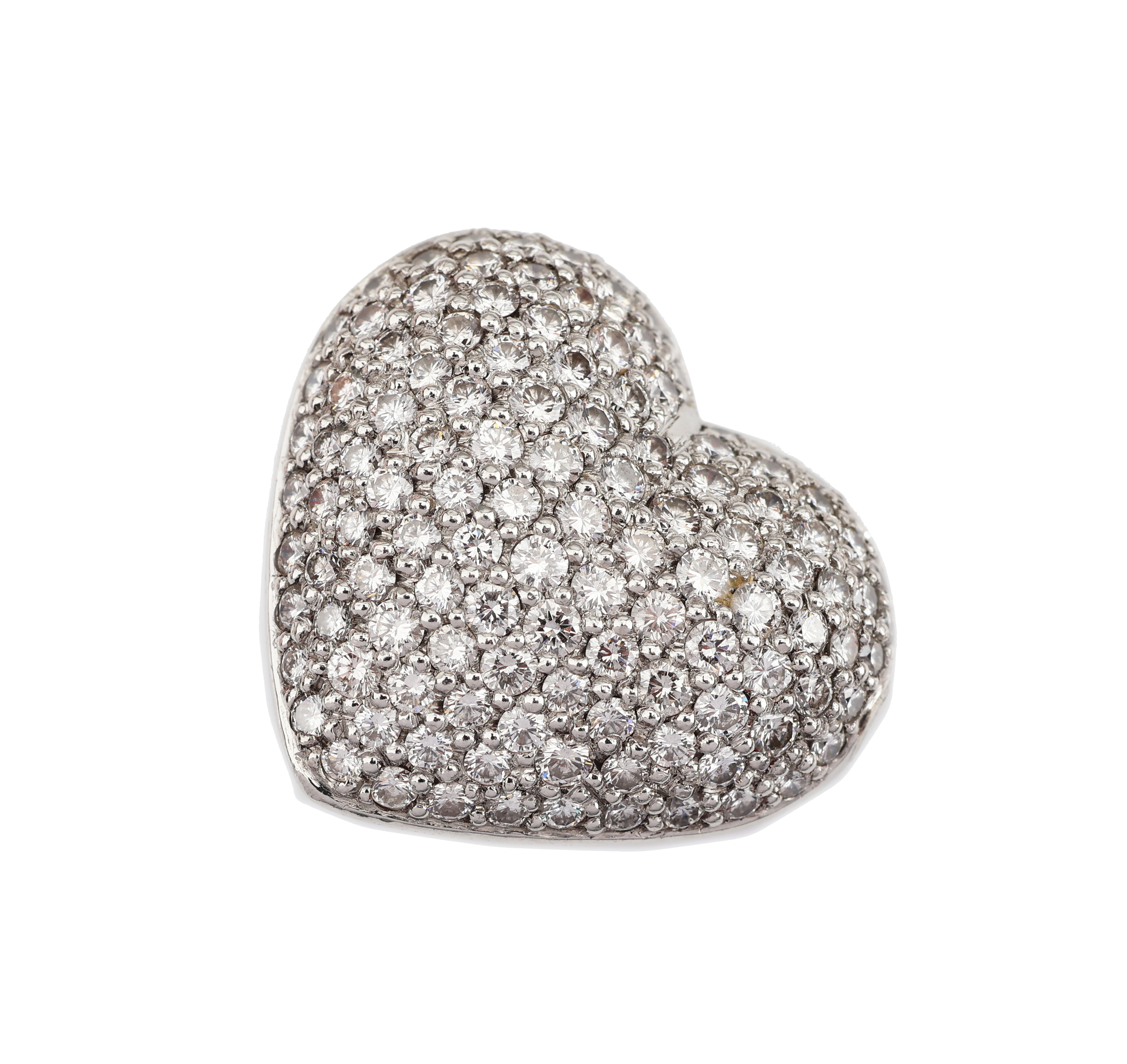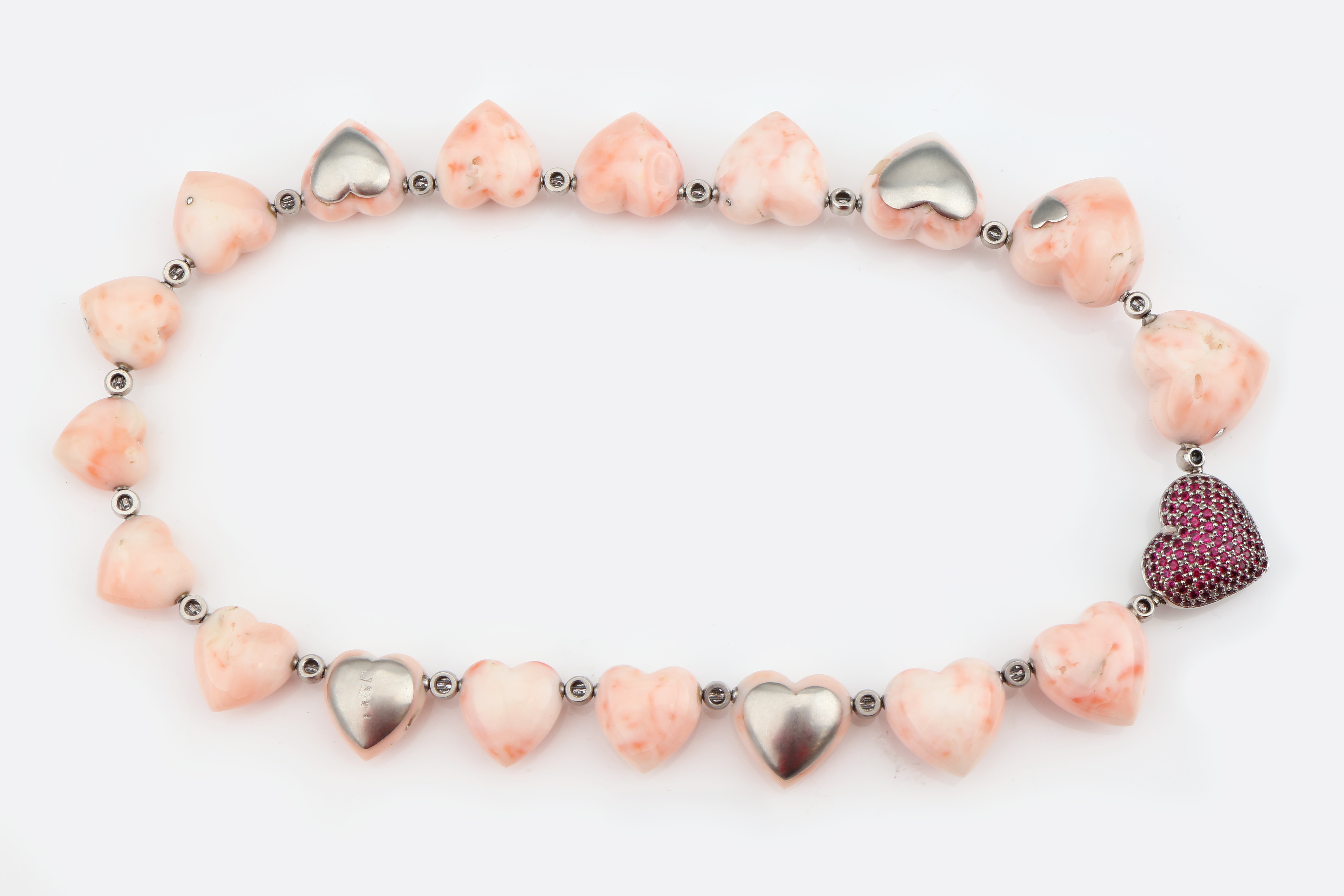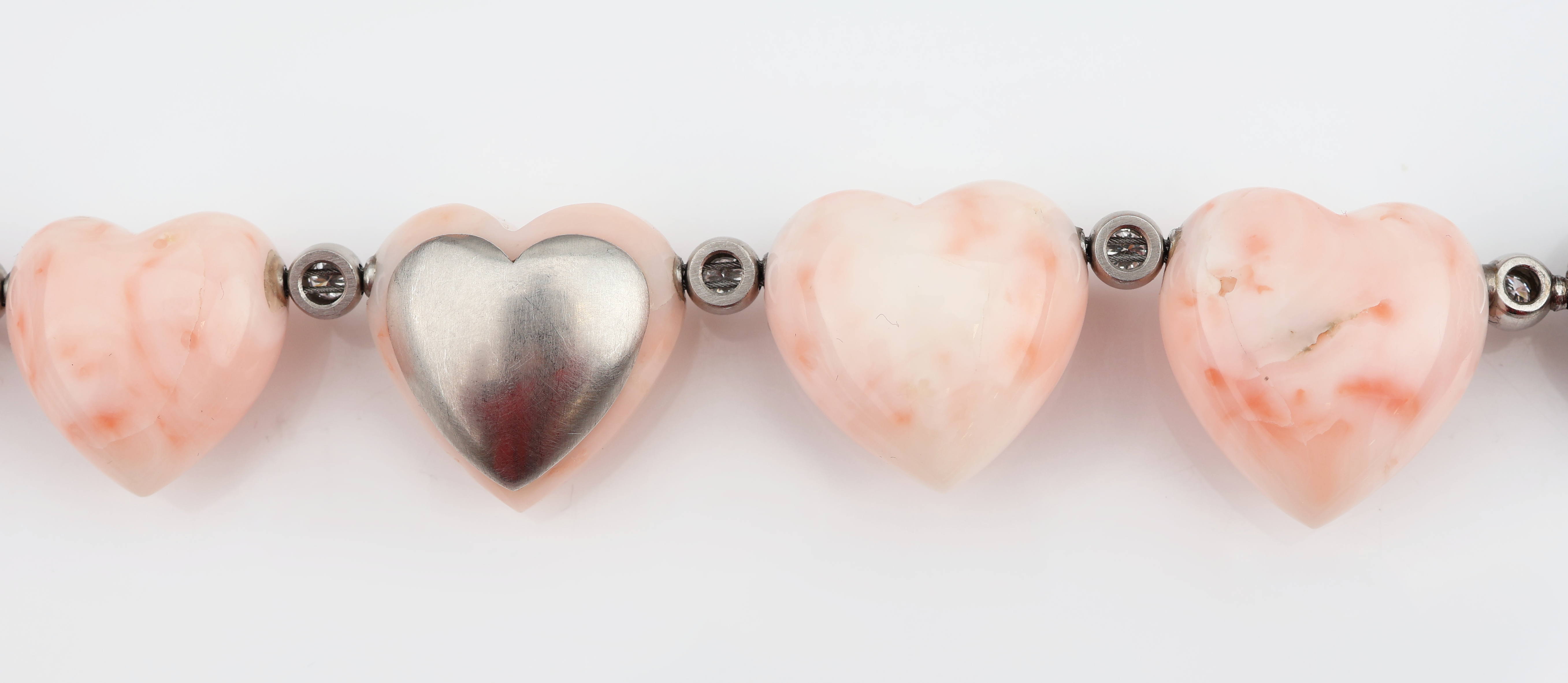 Herzenaus Engelhautkoralle, 19 Brillanten als Zwischenglieder zus. ca. 1.90 ct Weiß/vs-si,