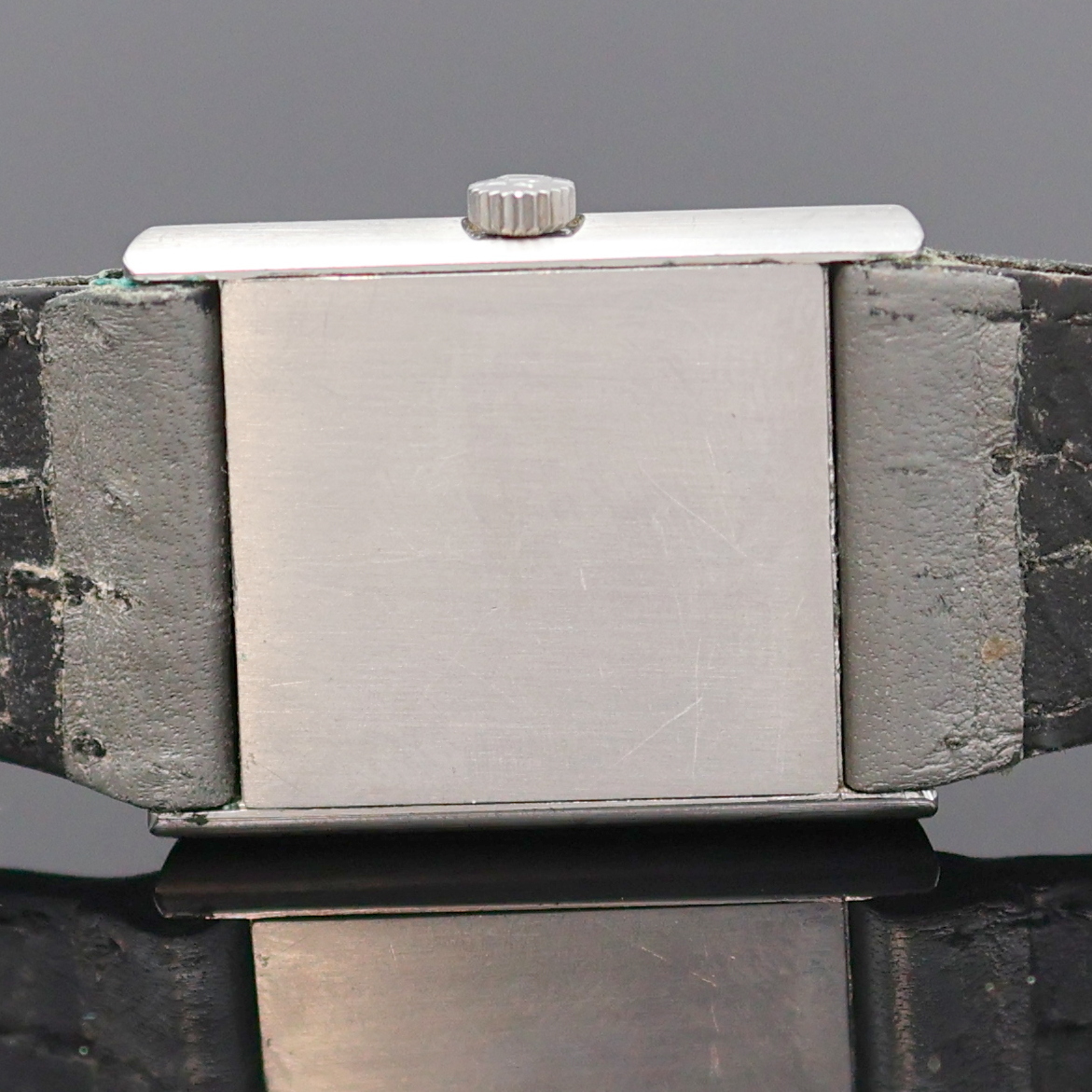 2-teil. rechteck. Geh. inkl. Lederband m. Dornschl., orig. Krone, Boden aufgedr.,