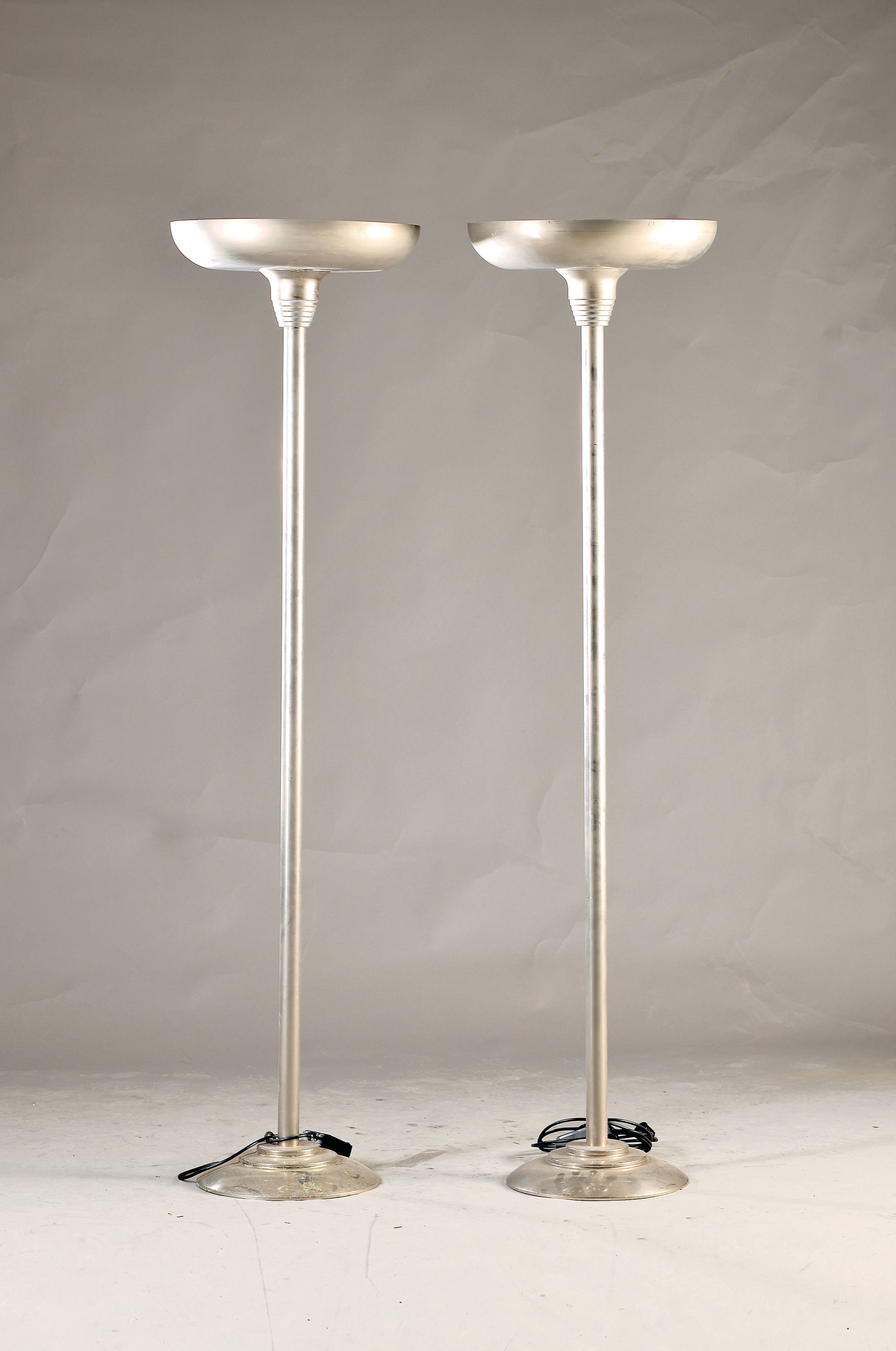 Zwei Stehlampen, Art-Deco, wohl 40er Jahre, Metall verchromt, berieben, Elektrifizierung