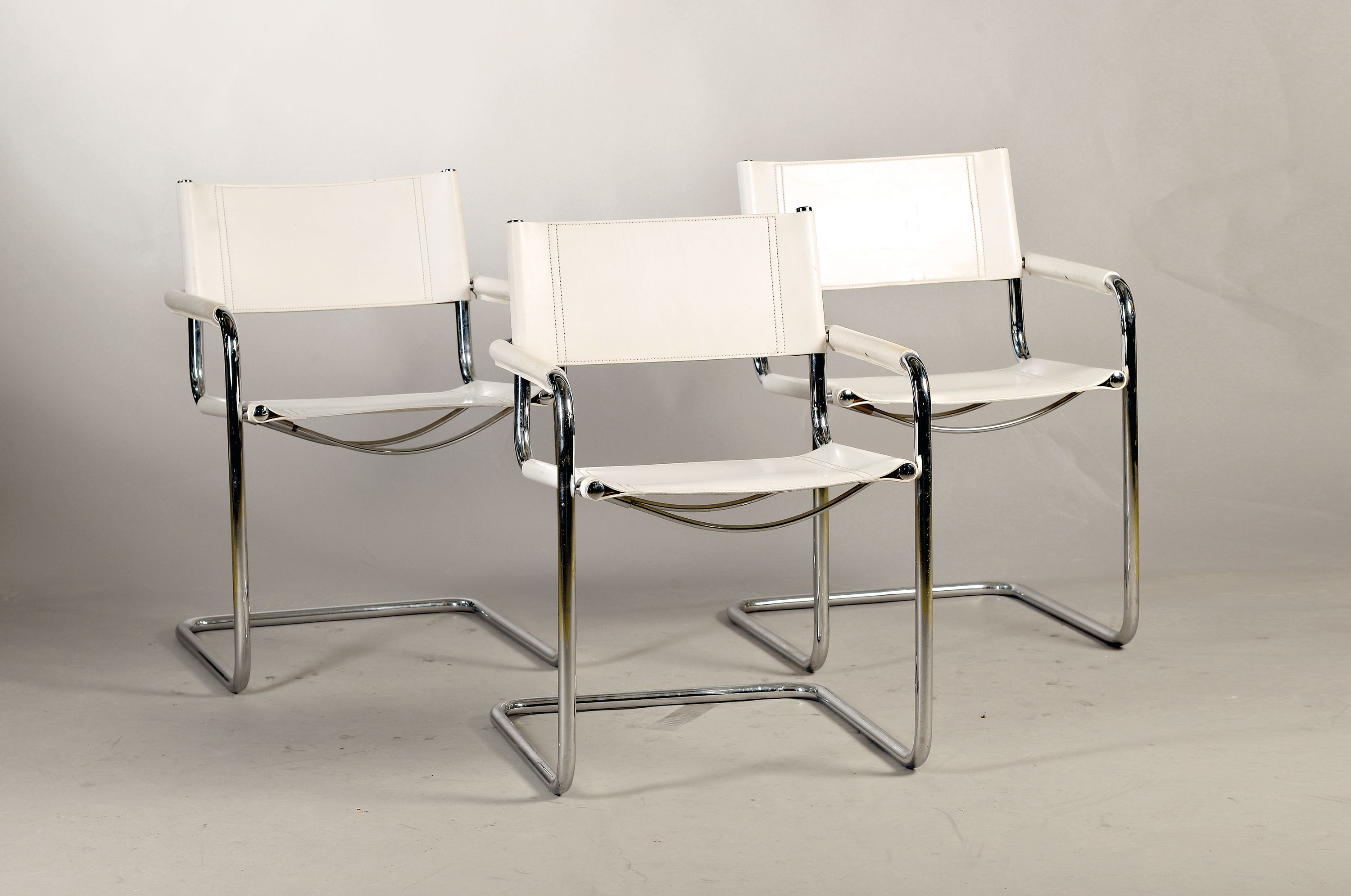 Drei Freischwinger "S34", Entw. Mart Stam 1925, Ausführung unbekannt, Stahlrohrahmen