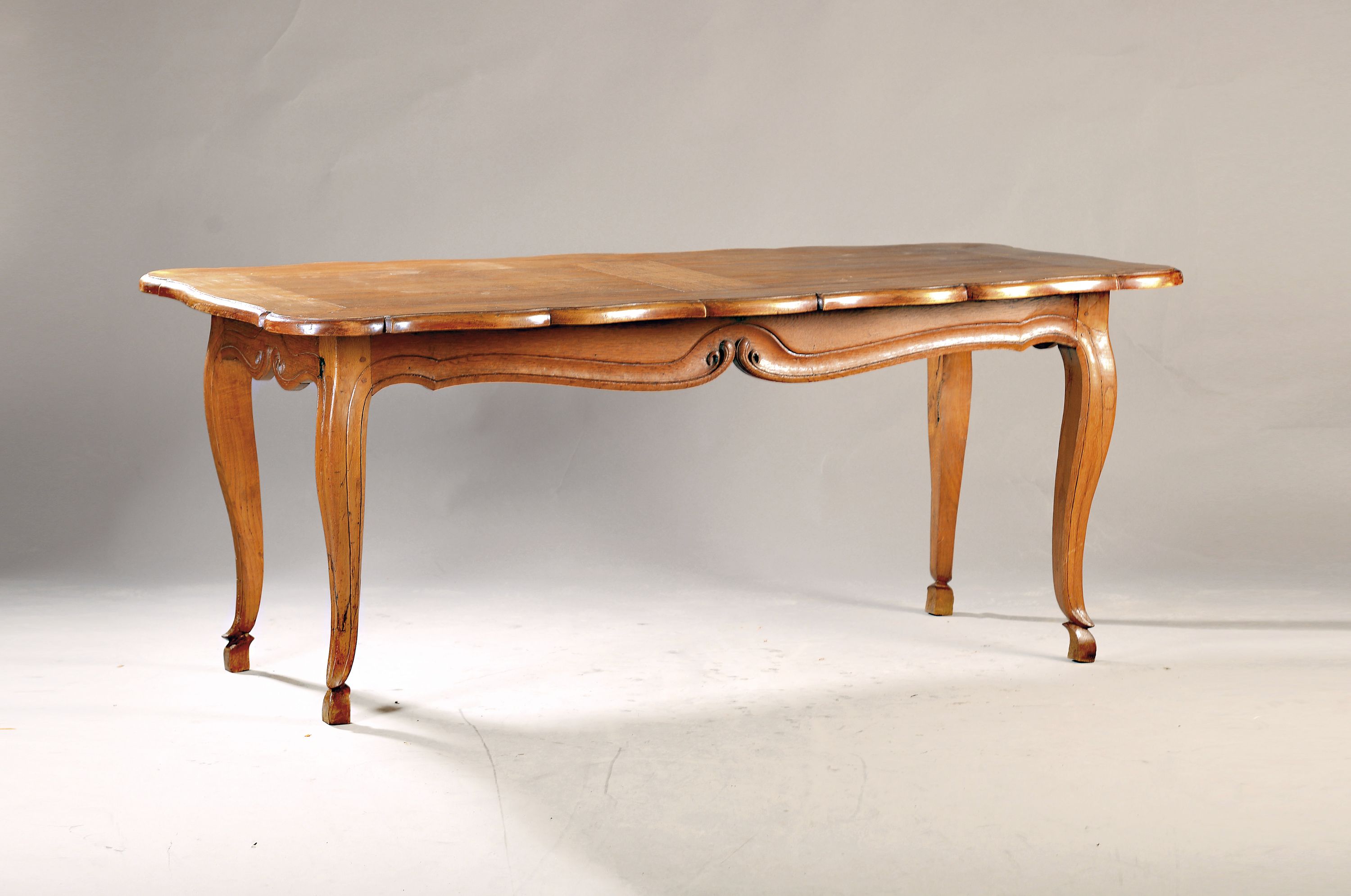 Großer Barocktisch, 18.Jh., Eiche massiv, mehrfach geschweift, auf langen geschwungenen