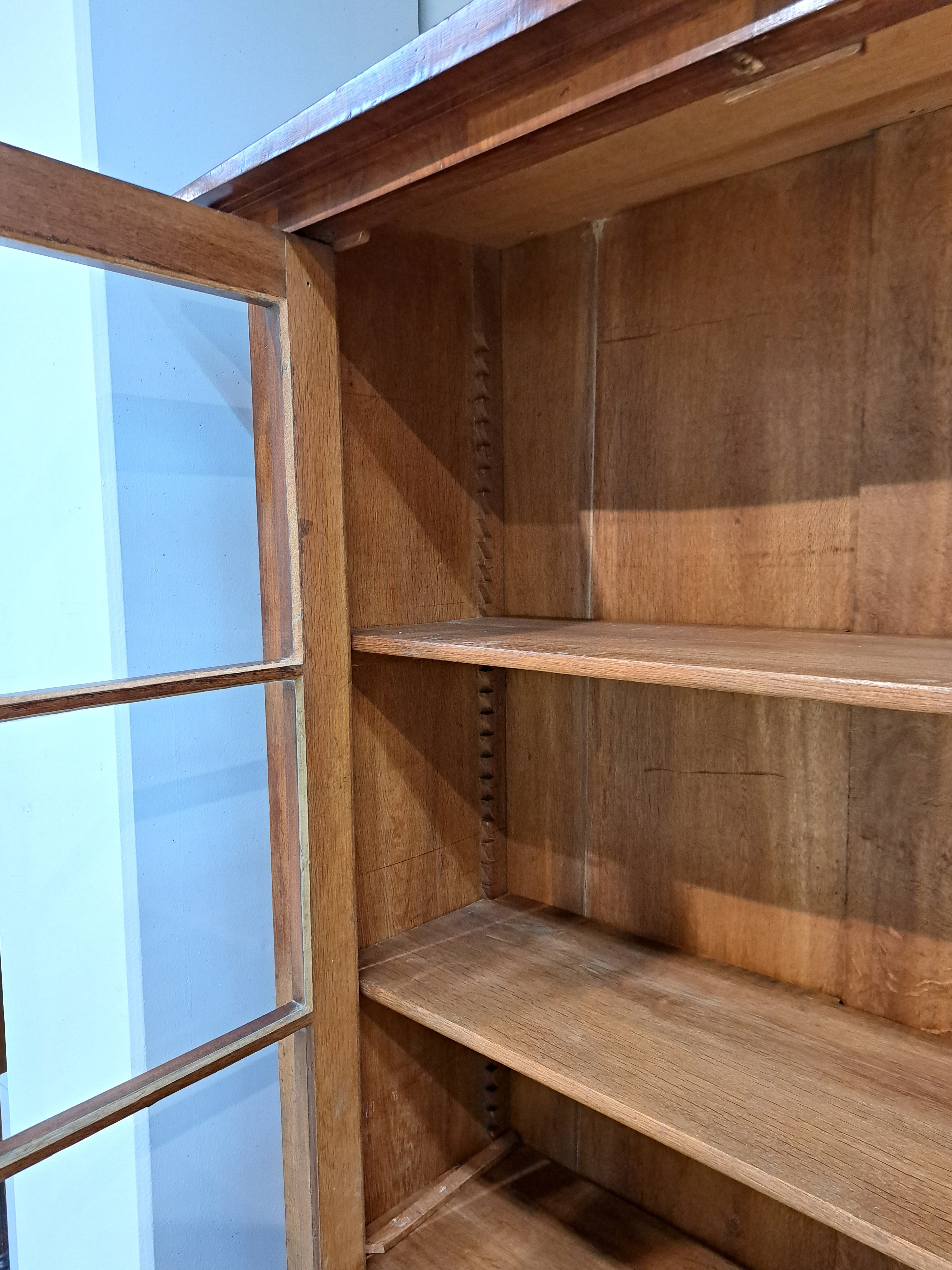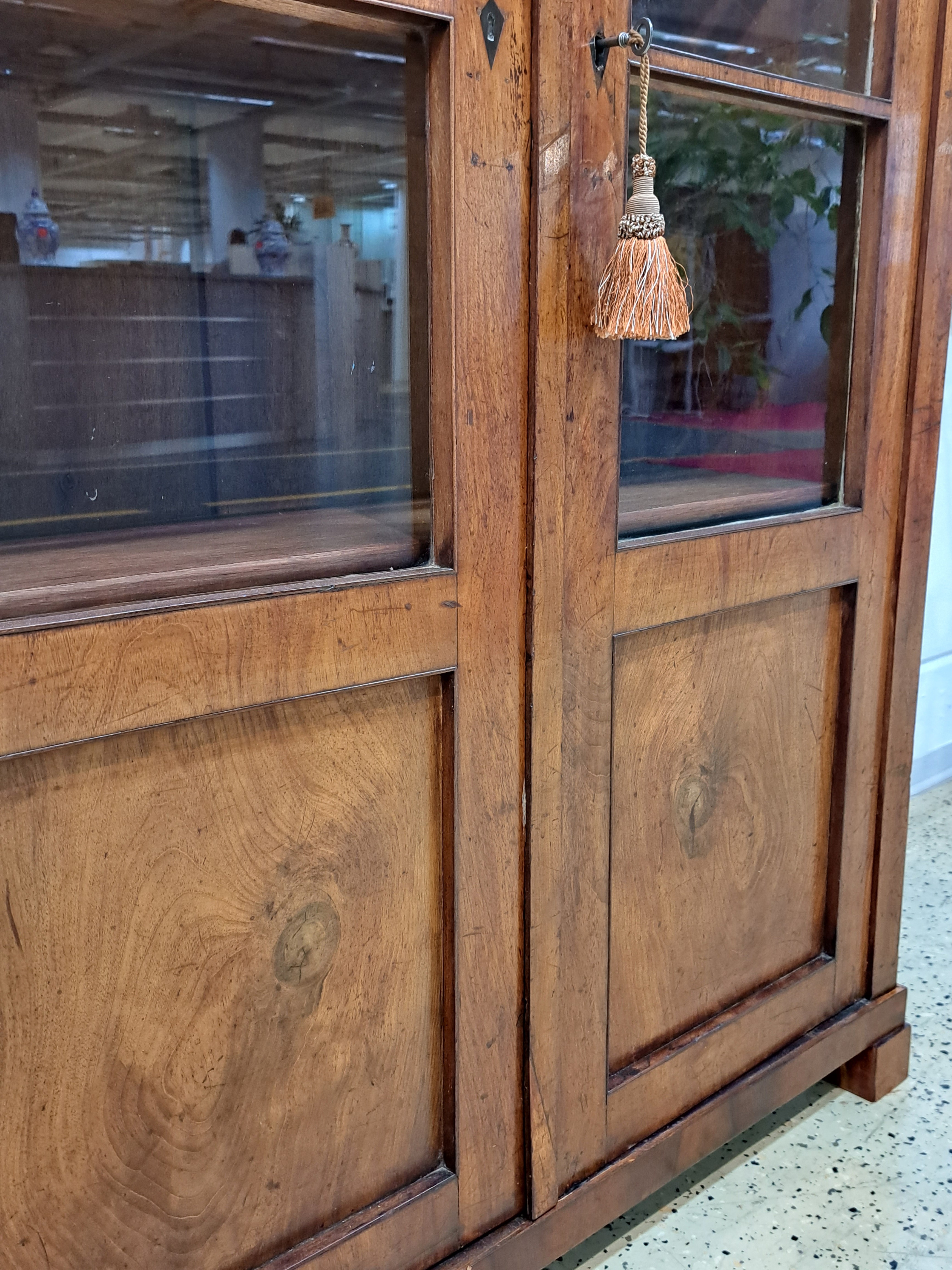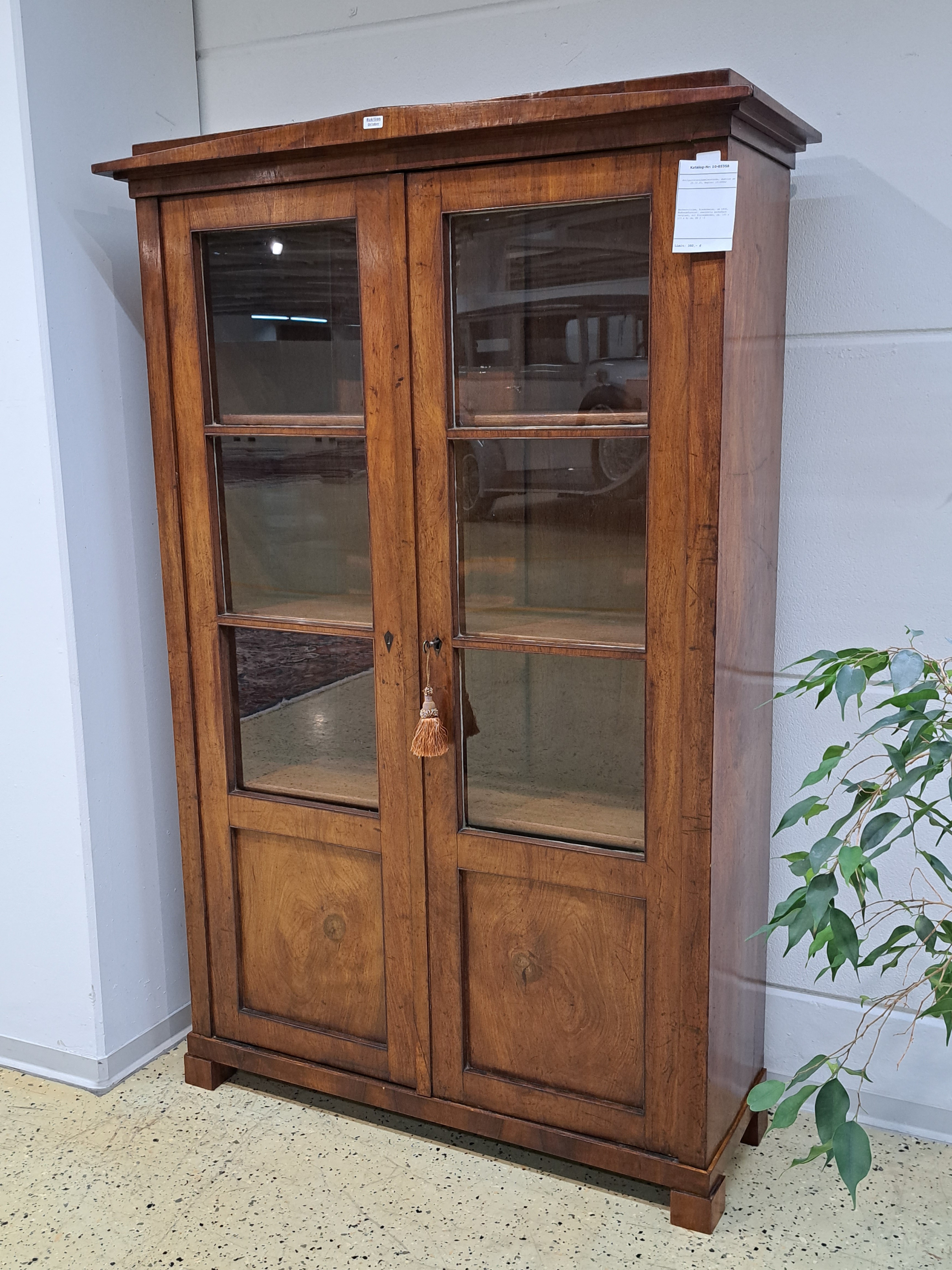 Büchervitrine, Biedermeier, um 1830, Nußbaumfurnier, zweitürig sechsfach verglast, mit Einlegeböden, ca. 185 x 119 x 41 cm, EZ 2 -3