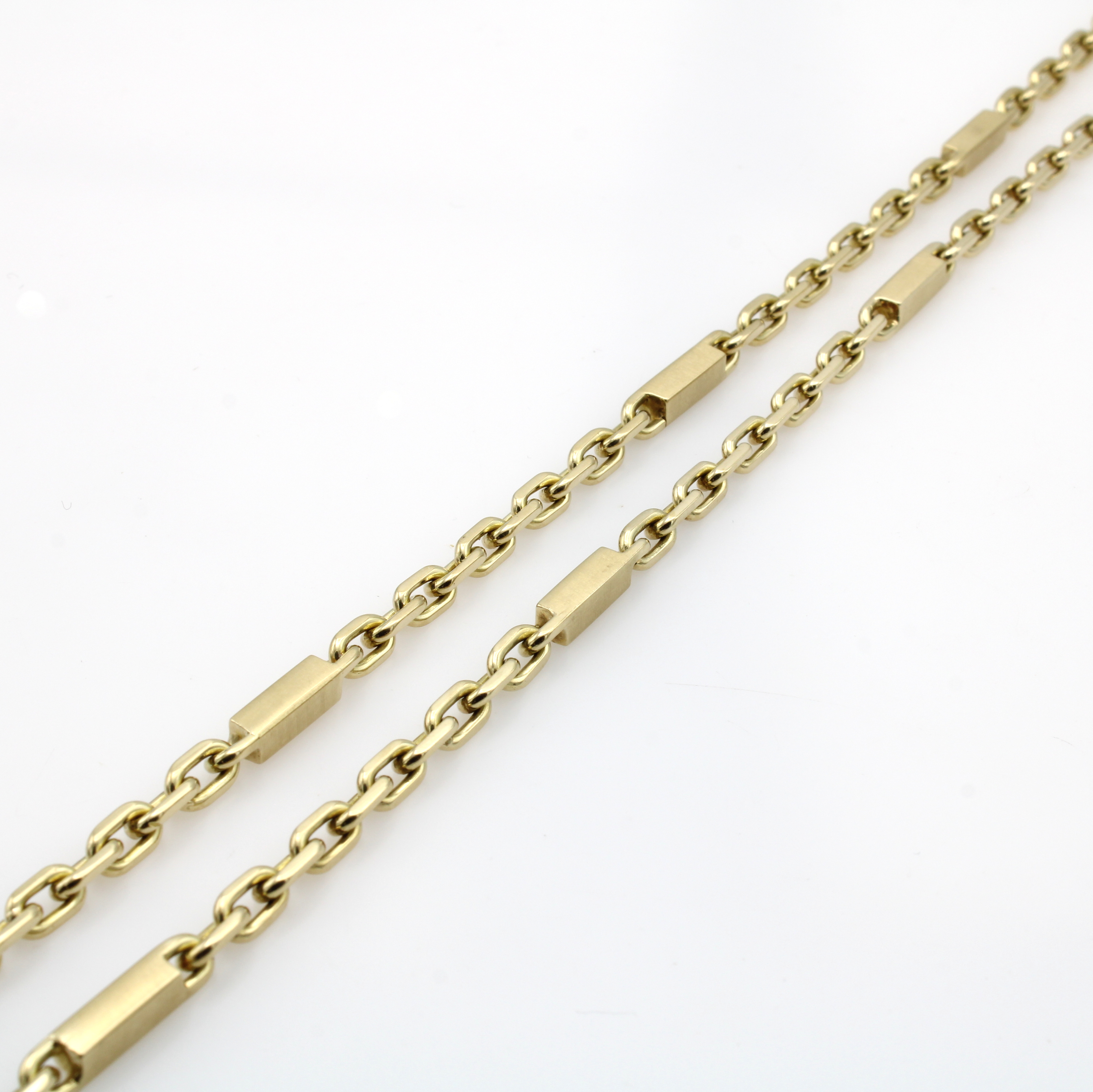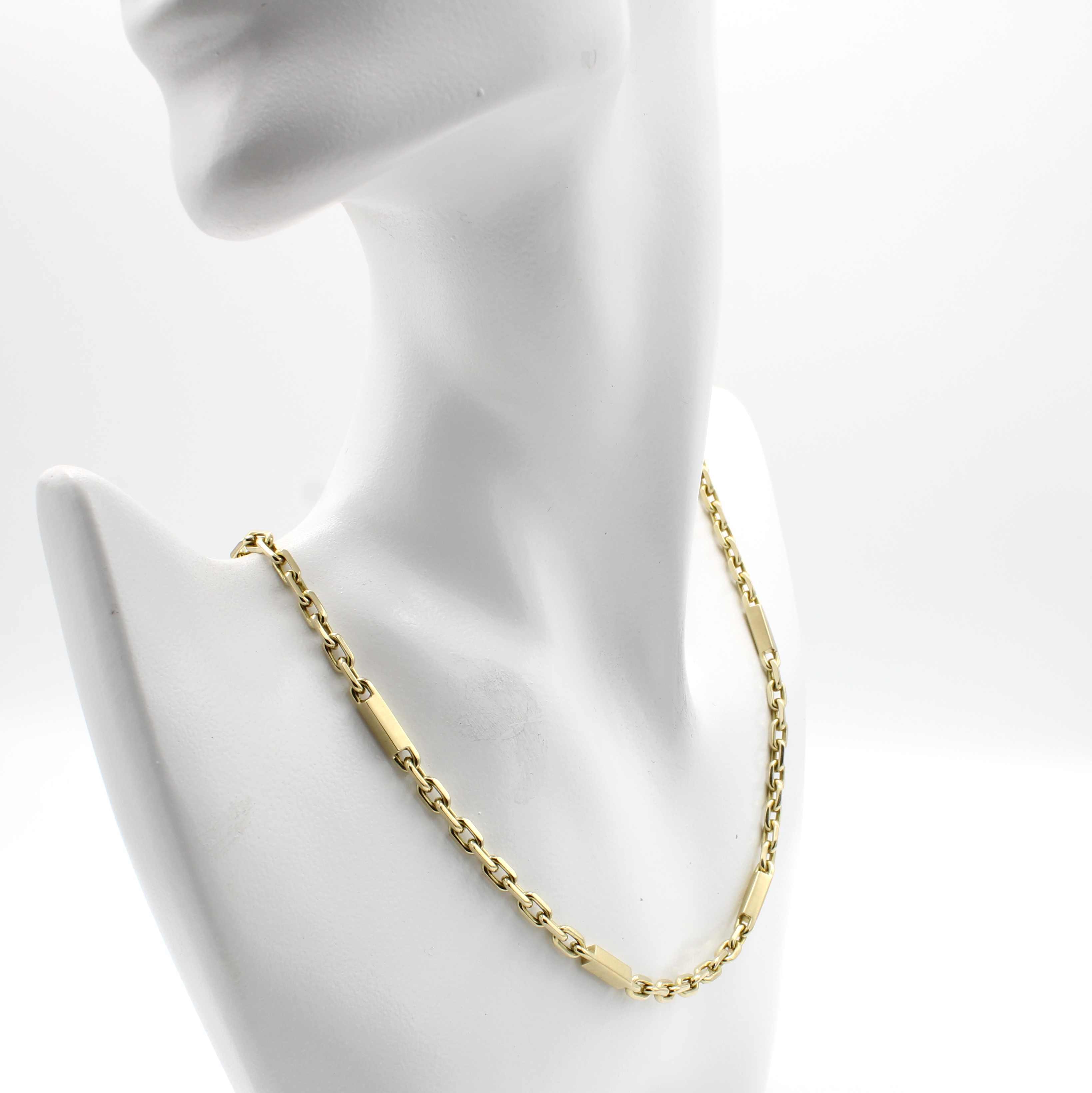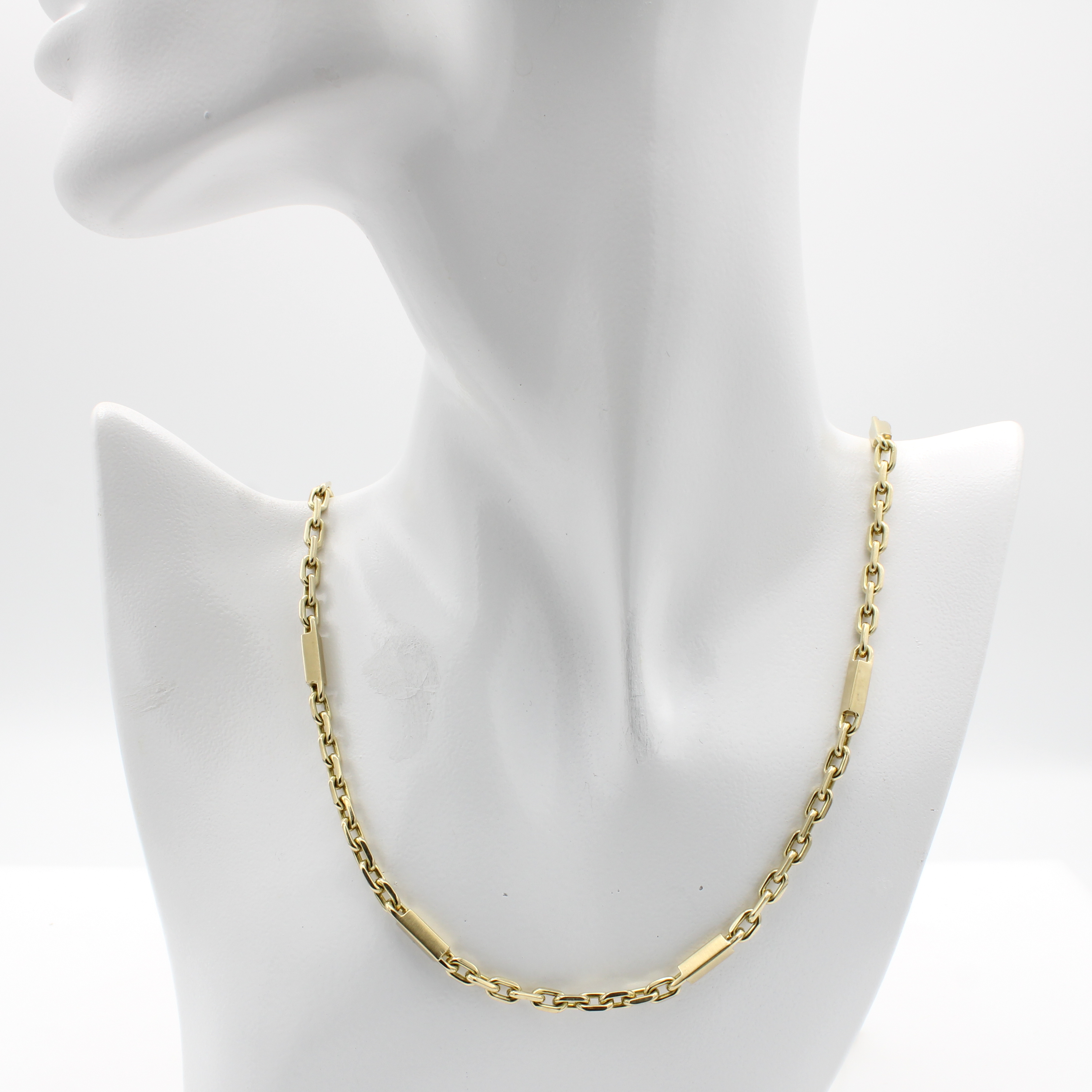 Massive Ankerkette, GG 585/000, Zwischen- glieder feinsatiniert, Gew. ca. 61.4 g, L. ca. 74 cm