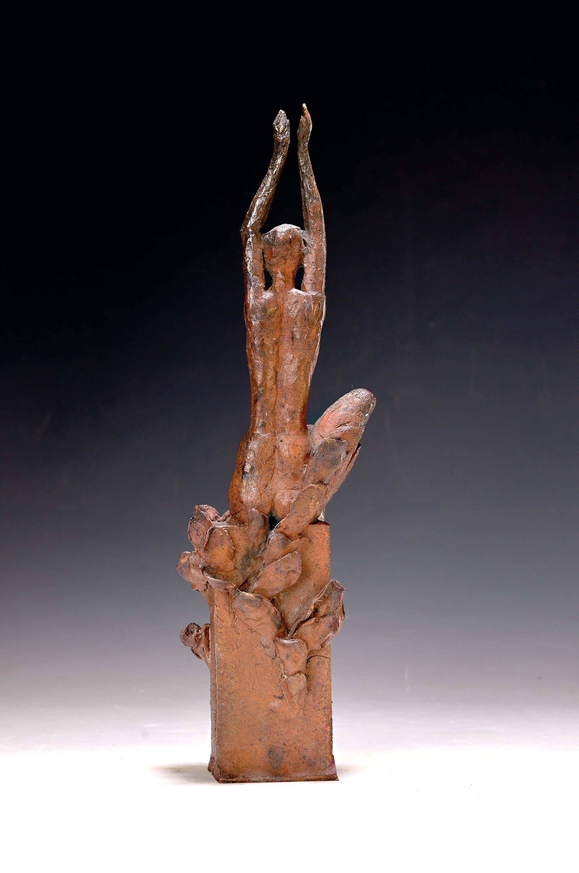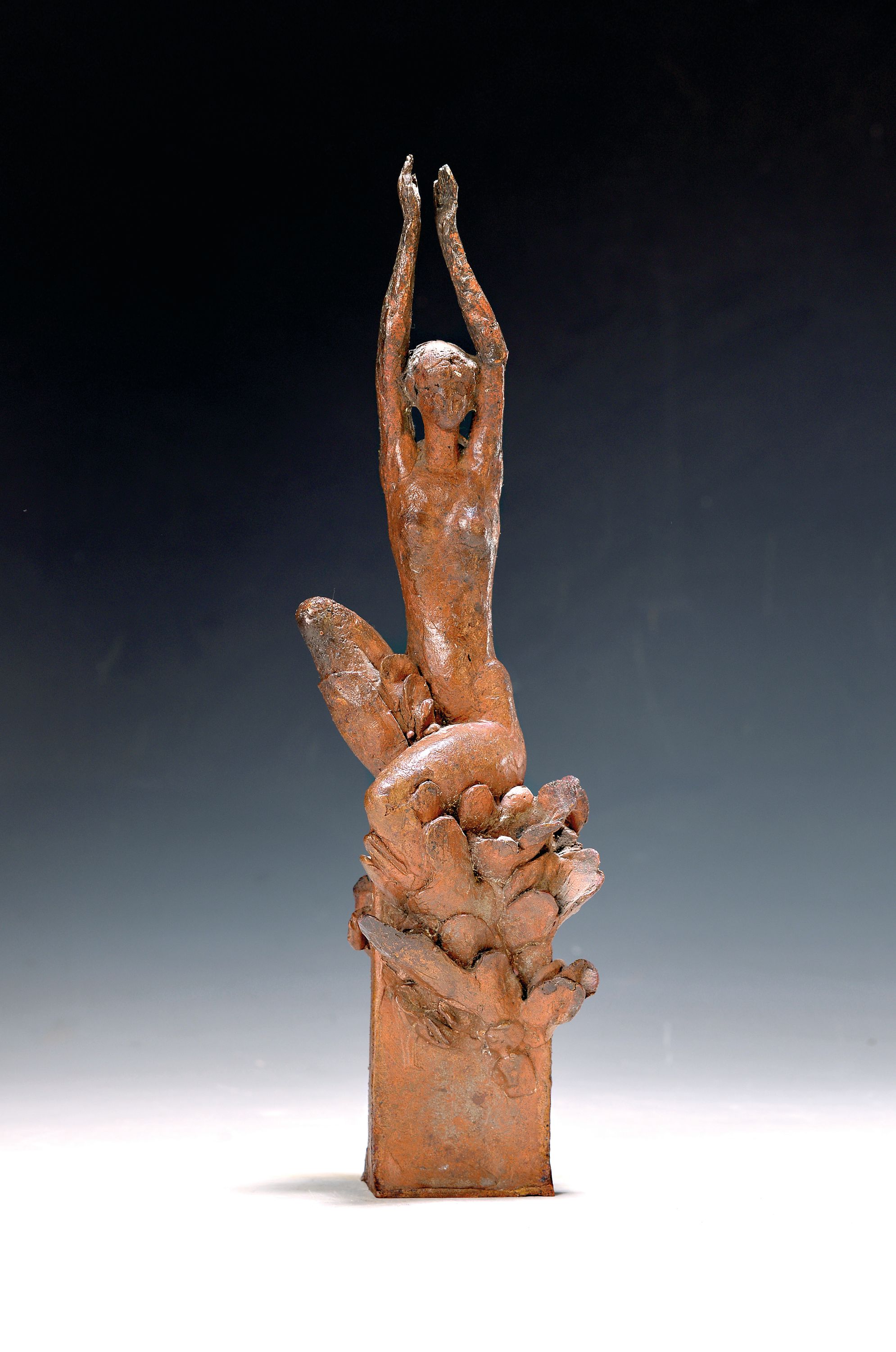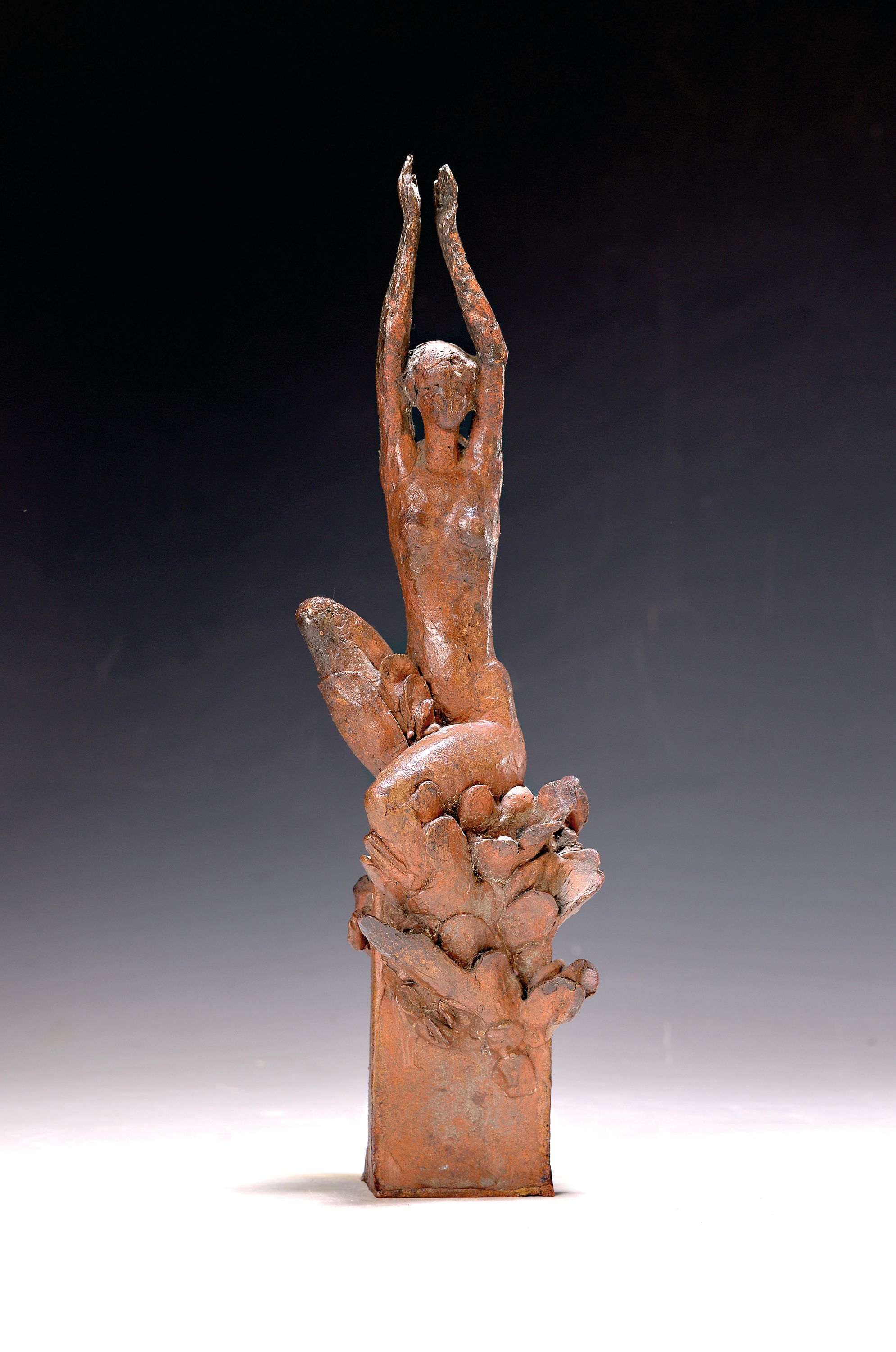 sitzende Frau mit nach oben ausgestreckten Armen, signiert seitlich Koch, H. ca.
