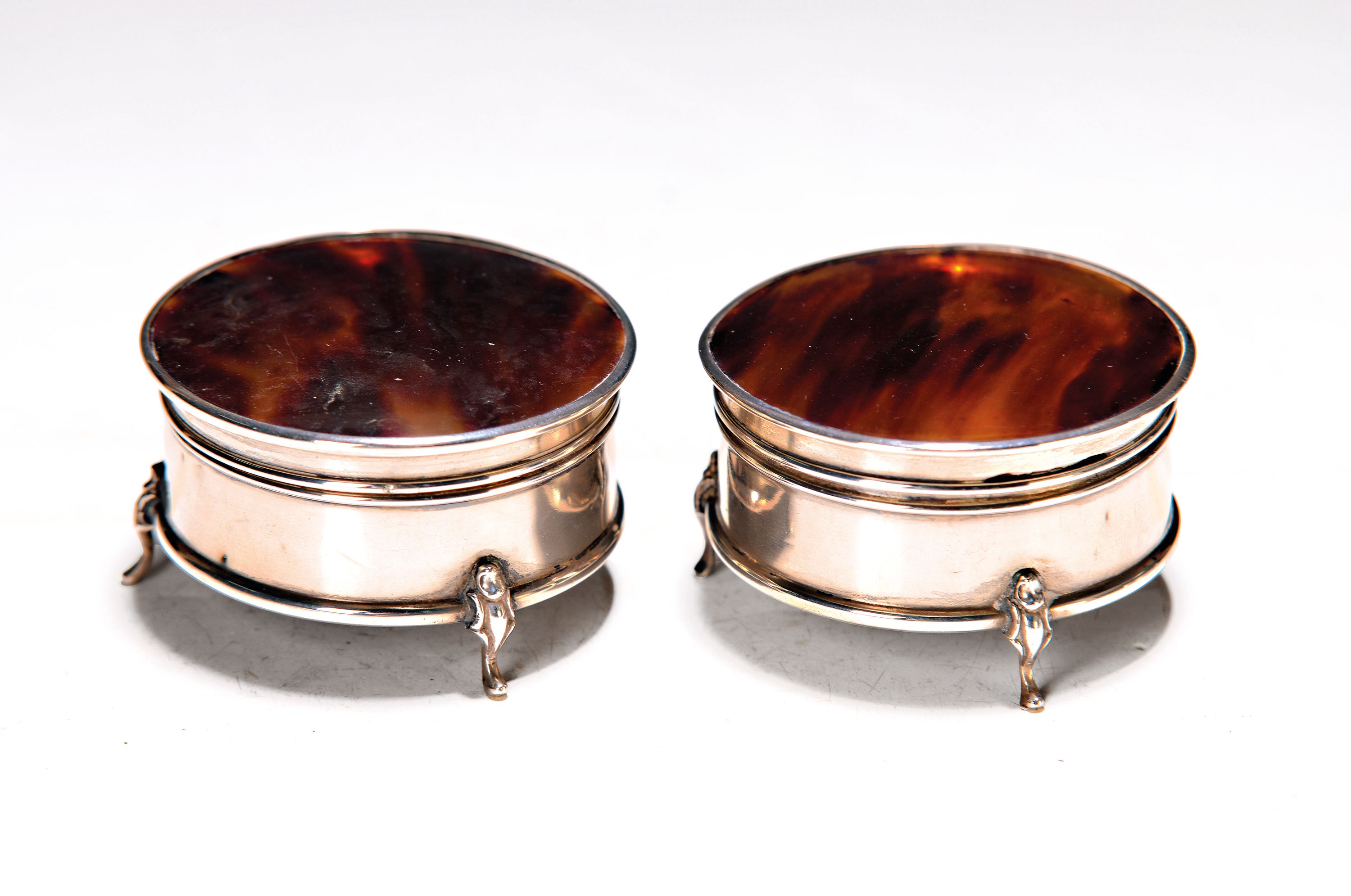 Zwei Deckeldosen, England, Birmingham, um 1922, Sterlingsilber mit Horneinsätzen,