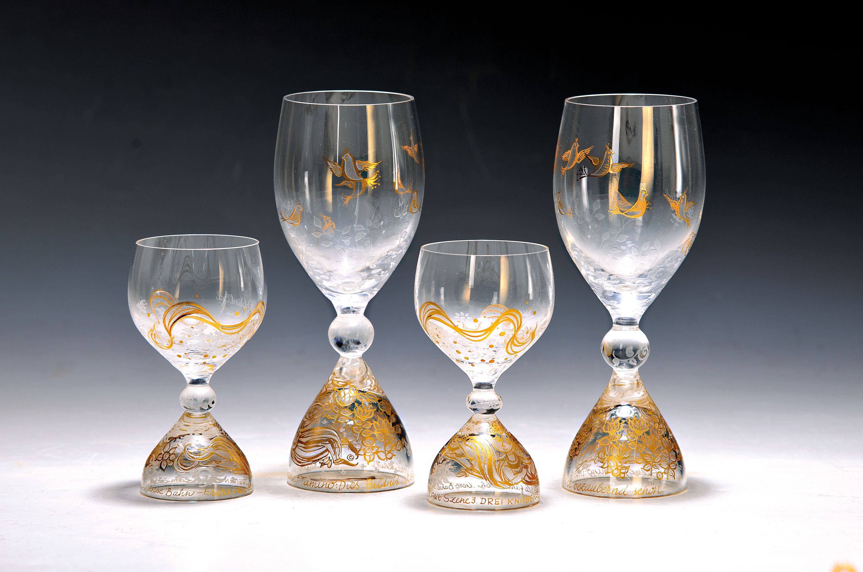 Gläserset Rosenthal, Zauberflöte, Entw. Björn Wiinblad, 4 Weingläser H.ca. 17.5