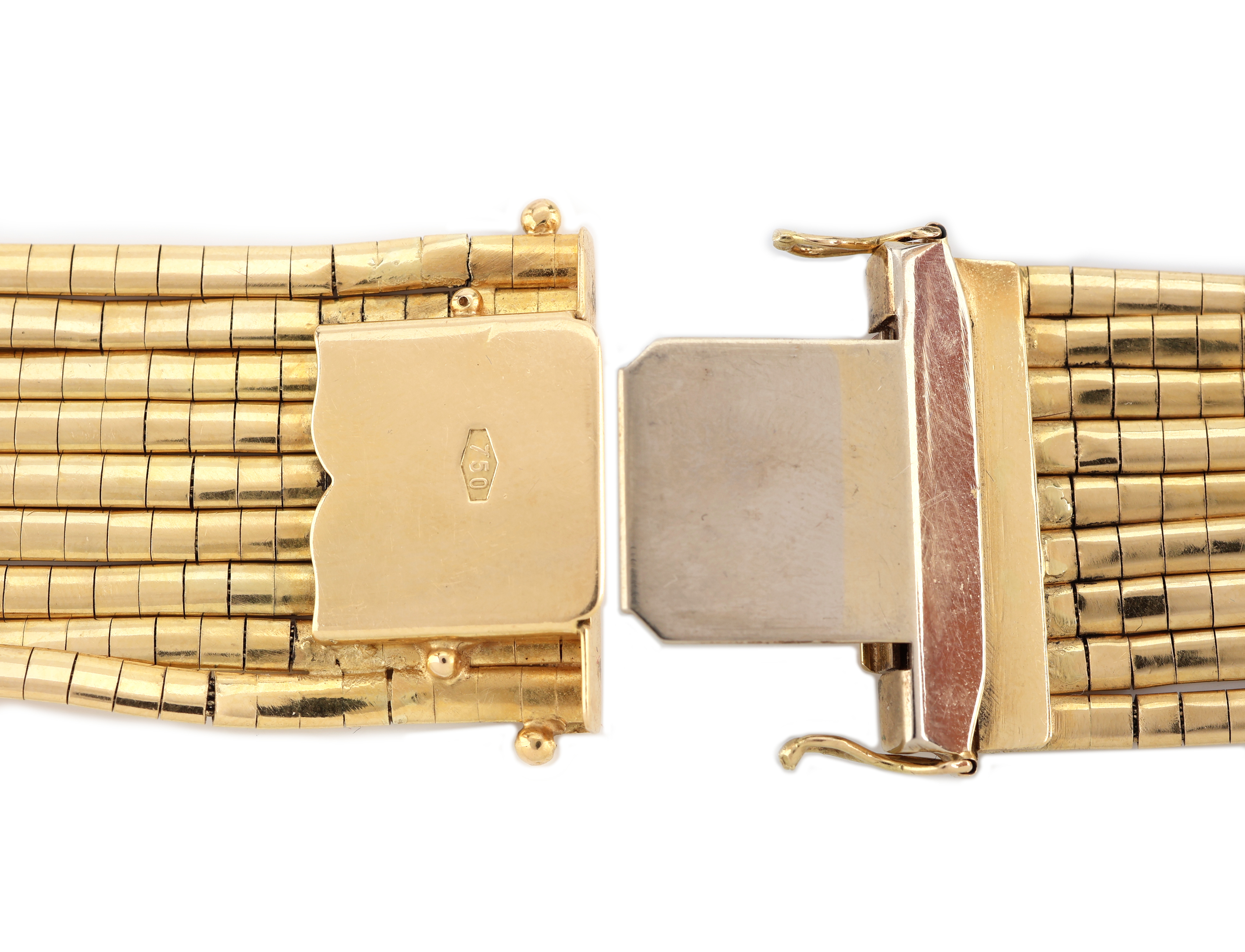 18 kt Gold Armband, GG 750/000, sat., 9- rhg., L. ca. 19.5 cm, Kastenschloss mit