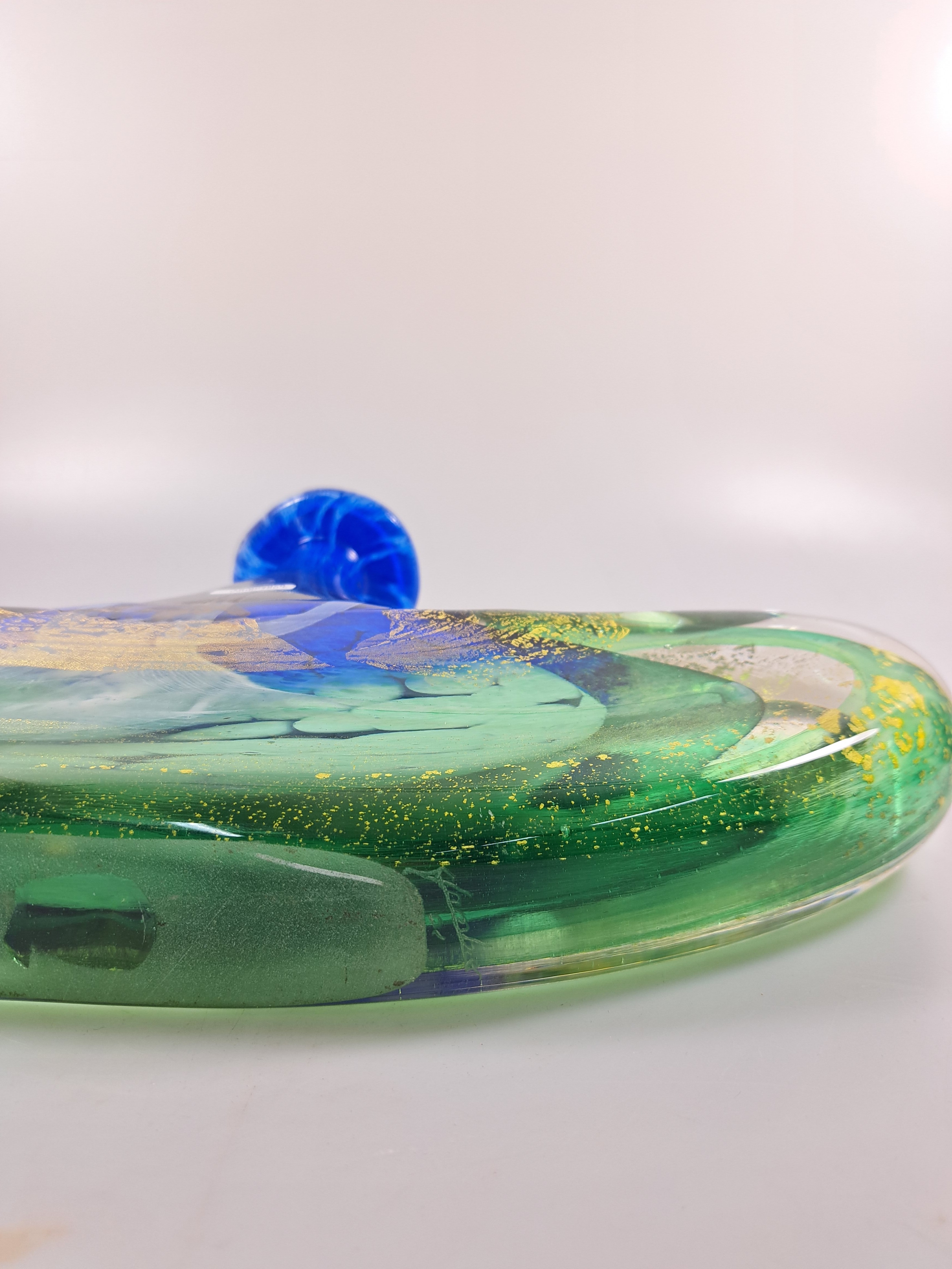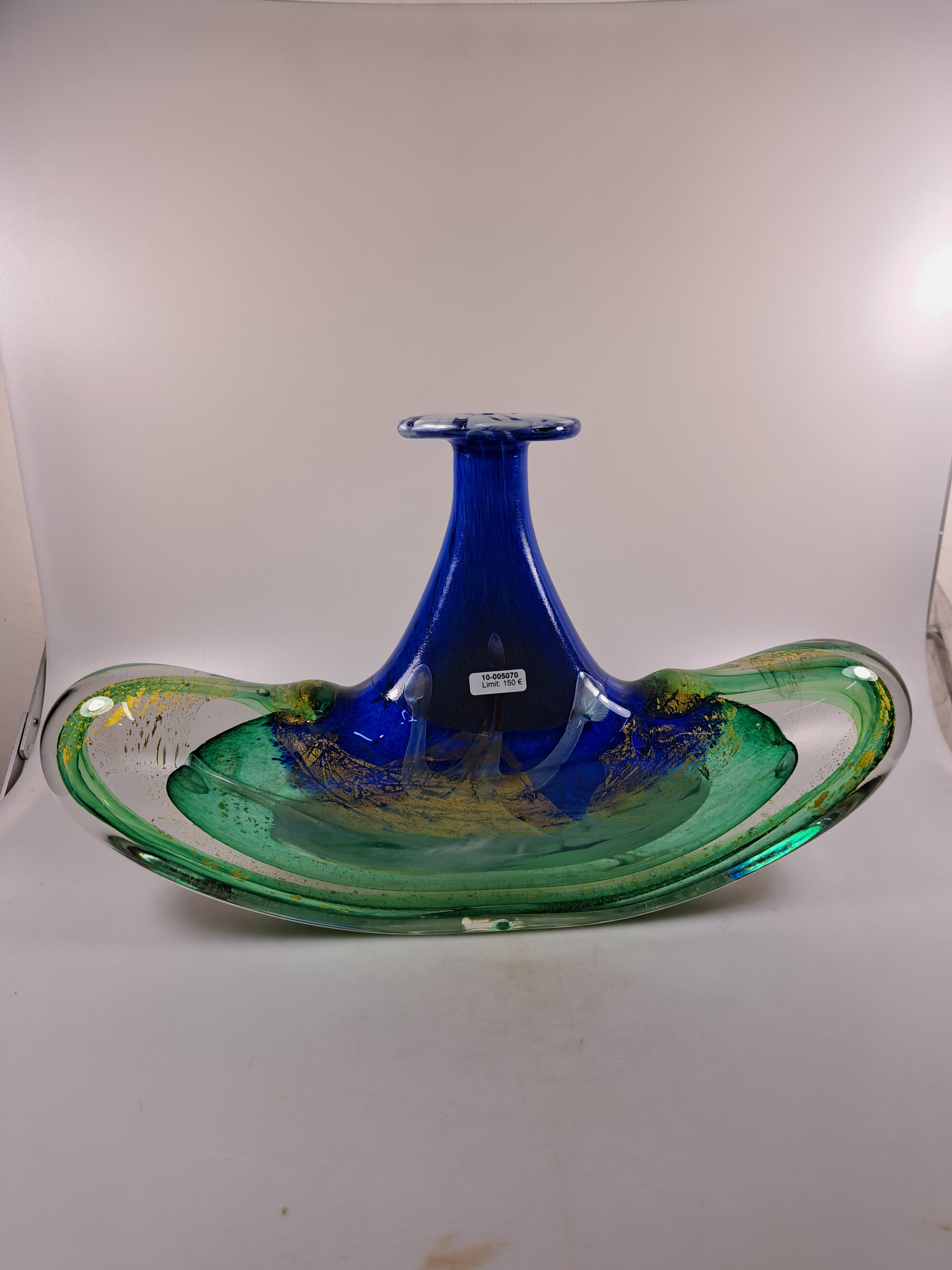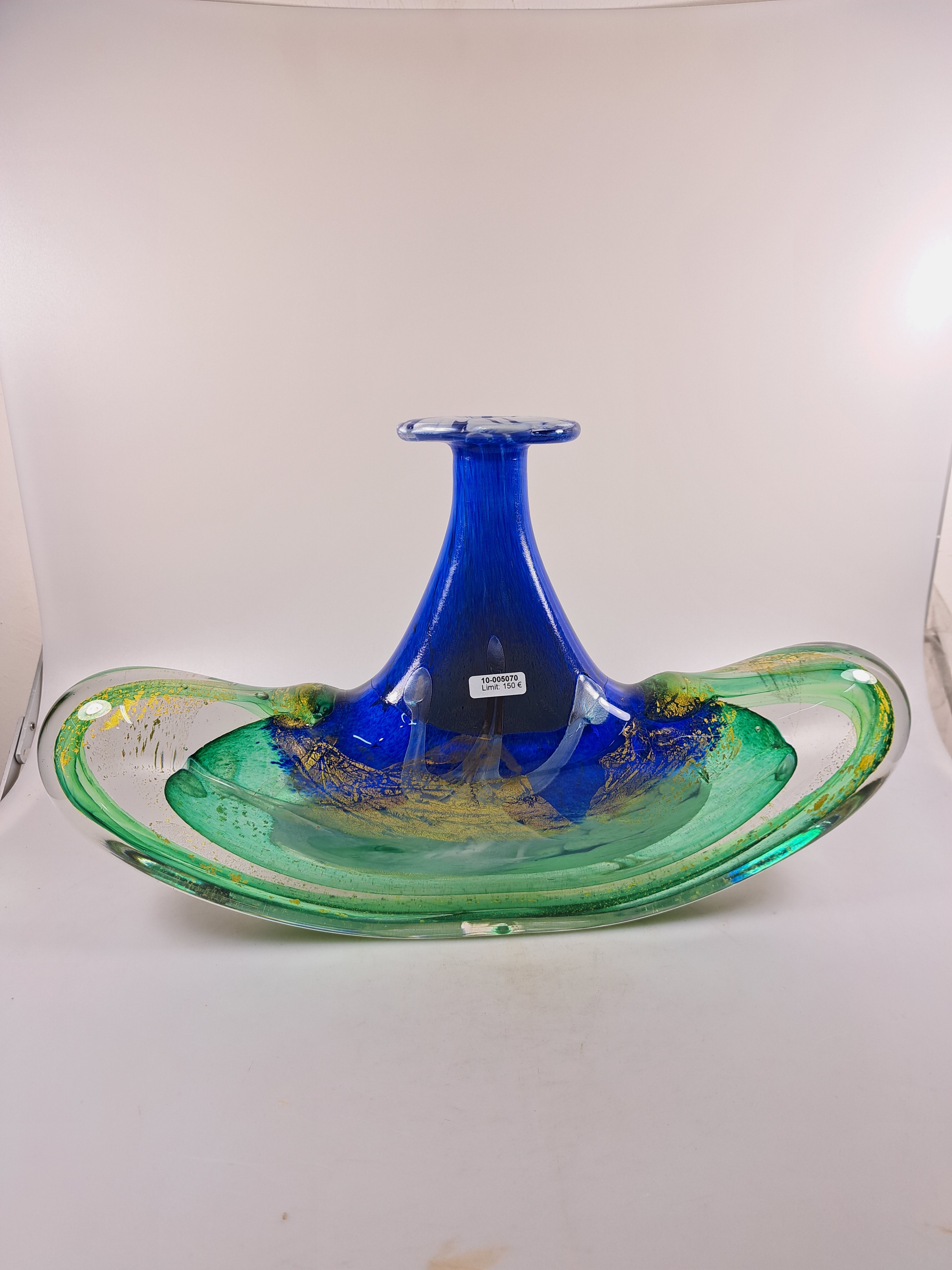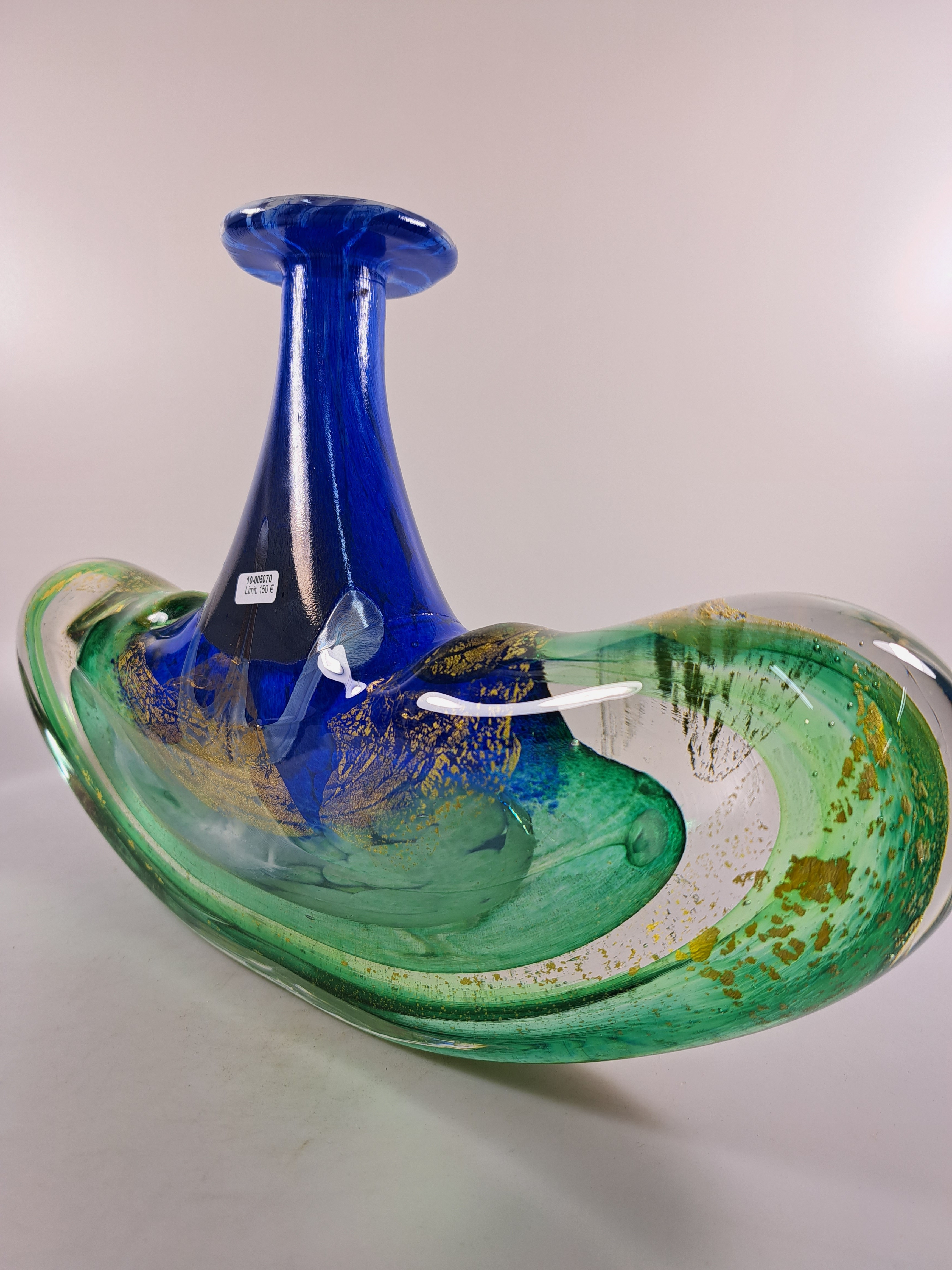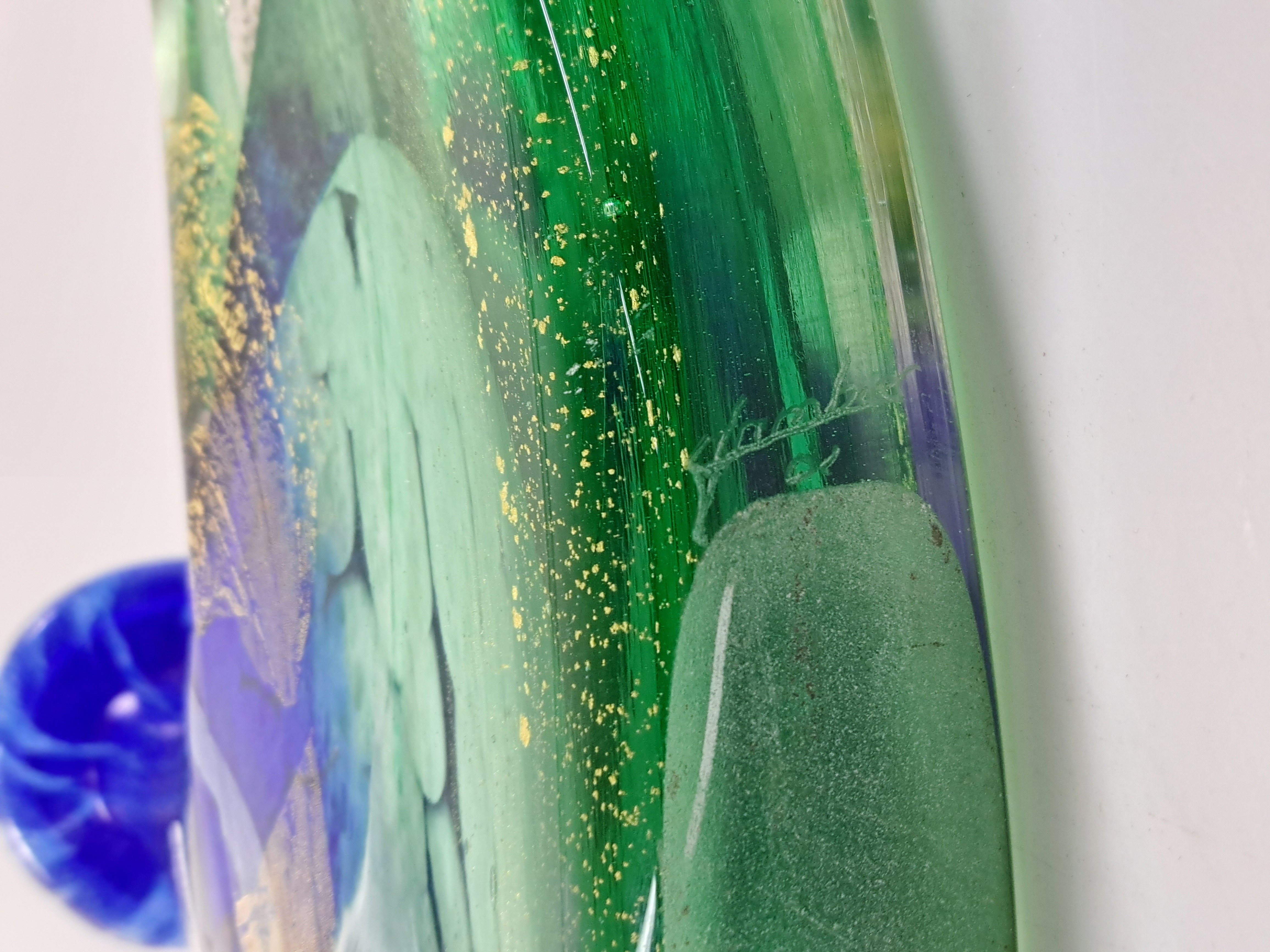 farbloses Glas, mit grünen, blauen und weißen Einschmelzungen, Goldpuder, H. ca.
