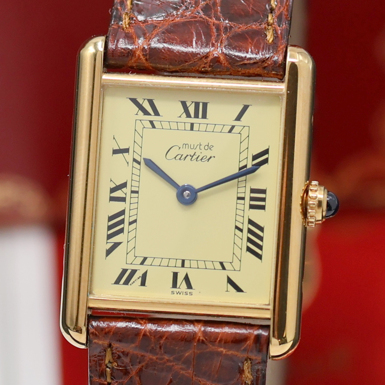 CARTIER Armbanduhr Tank Vermeil Referenz 590005, Schweiz um 1990, quarz, 2-teil.,