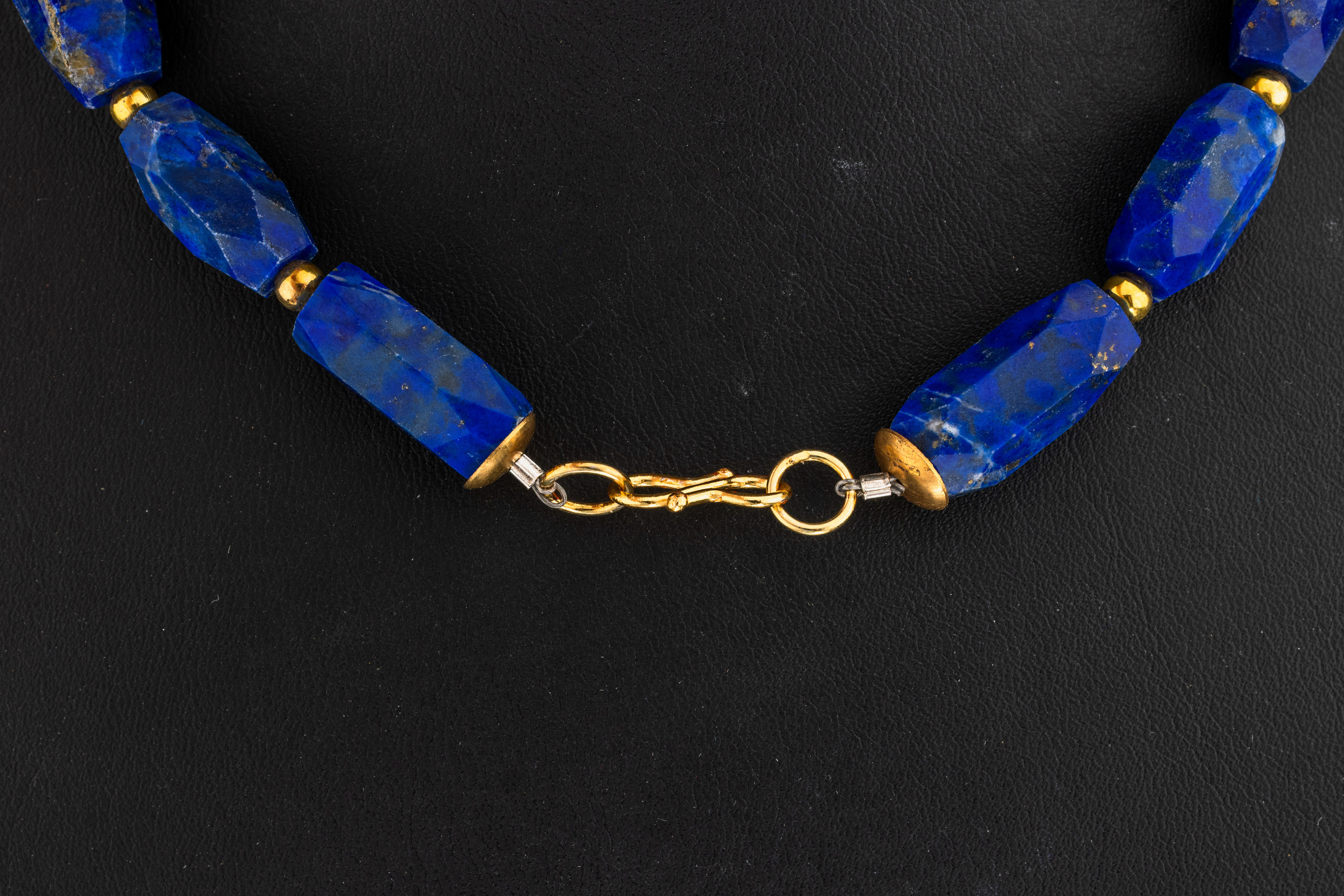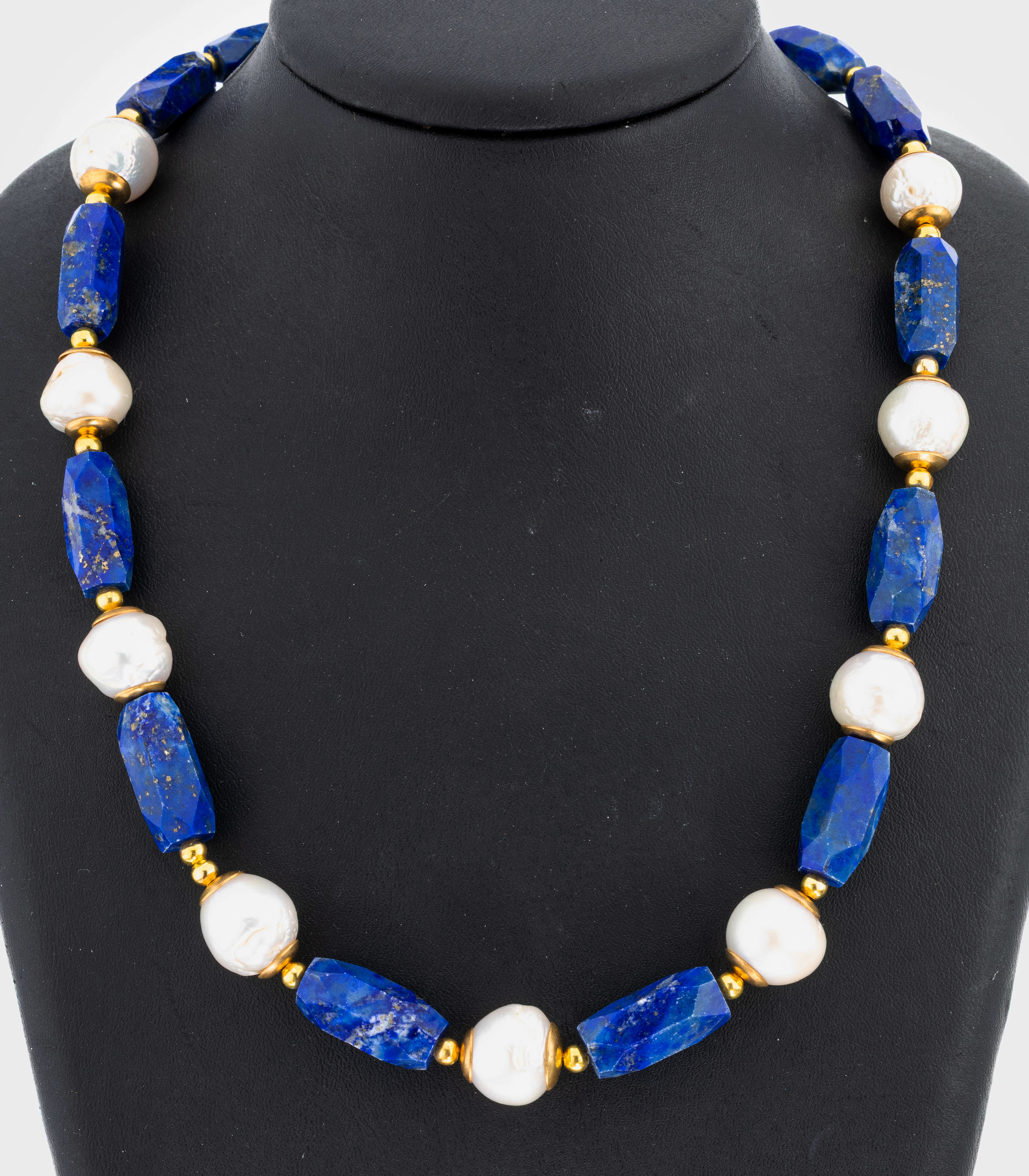 Lapislazuli-Perl-Collier, längliche facett.Lapislazuli-Glieder, unrunde Zuchtperlen, D. ca. 12.4-14.4 mm, L. ca. 51 cm, S-Schließe verg.