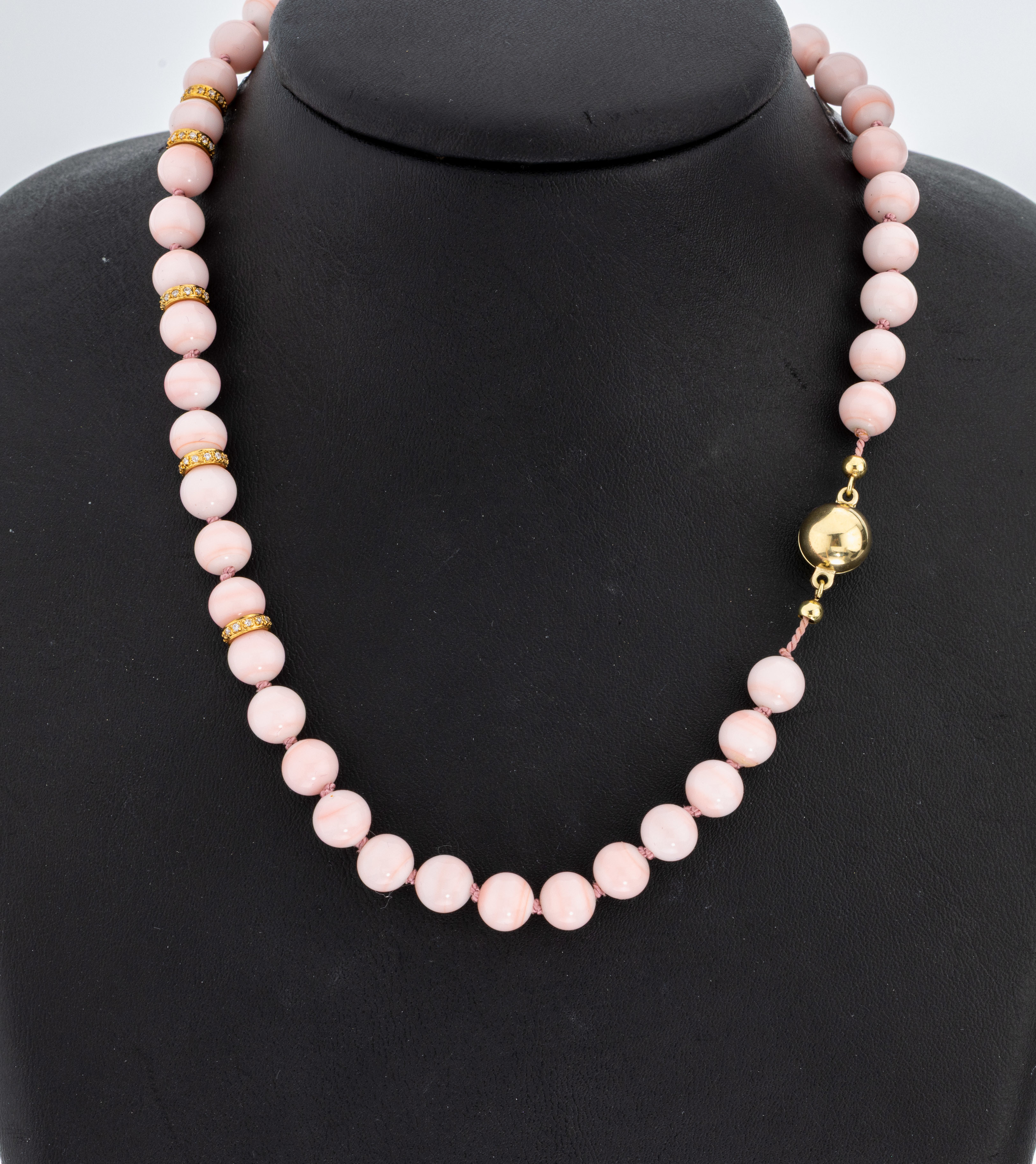 Korallen-Brillant-Collier, Engelhautkorallen-Kugeln, D. ca. 7.7 mm, 8 GG Zwischenglieder