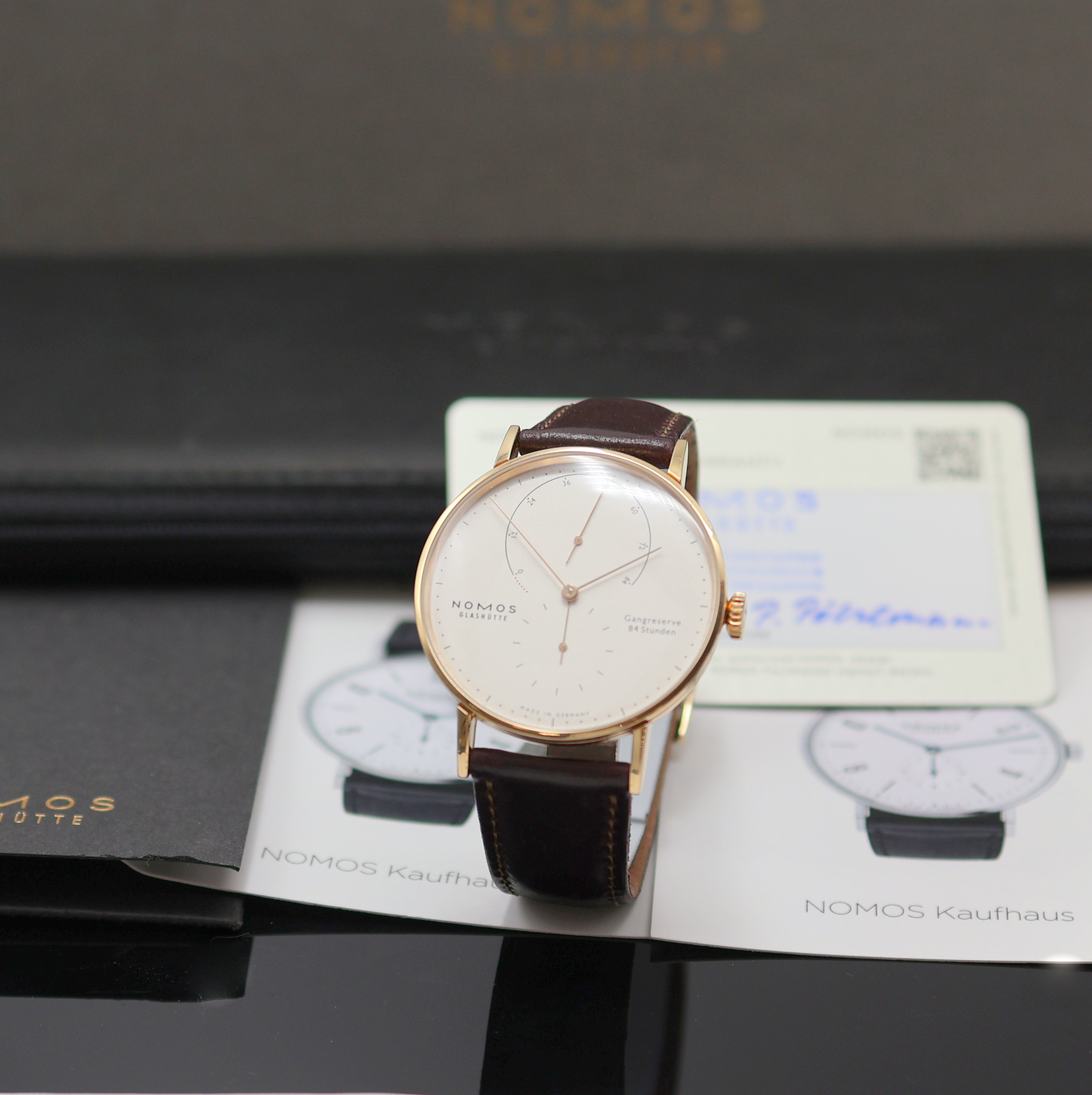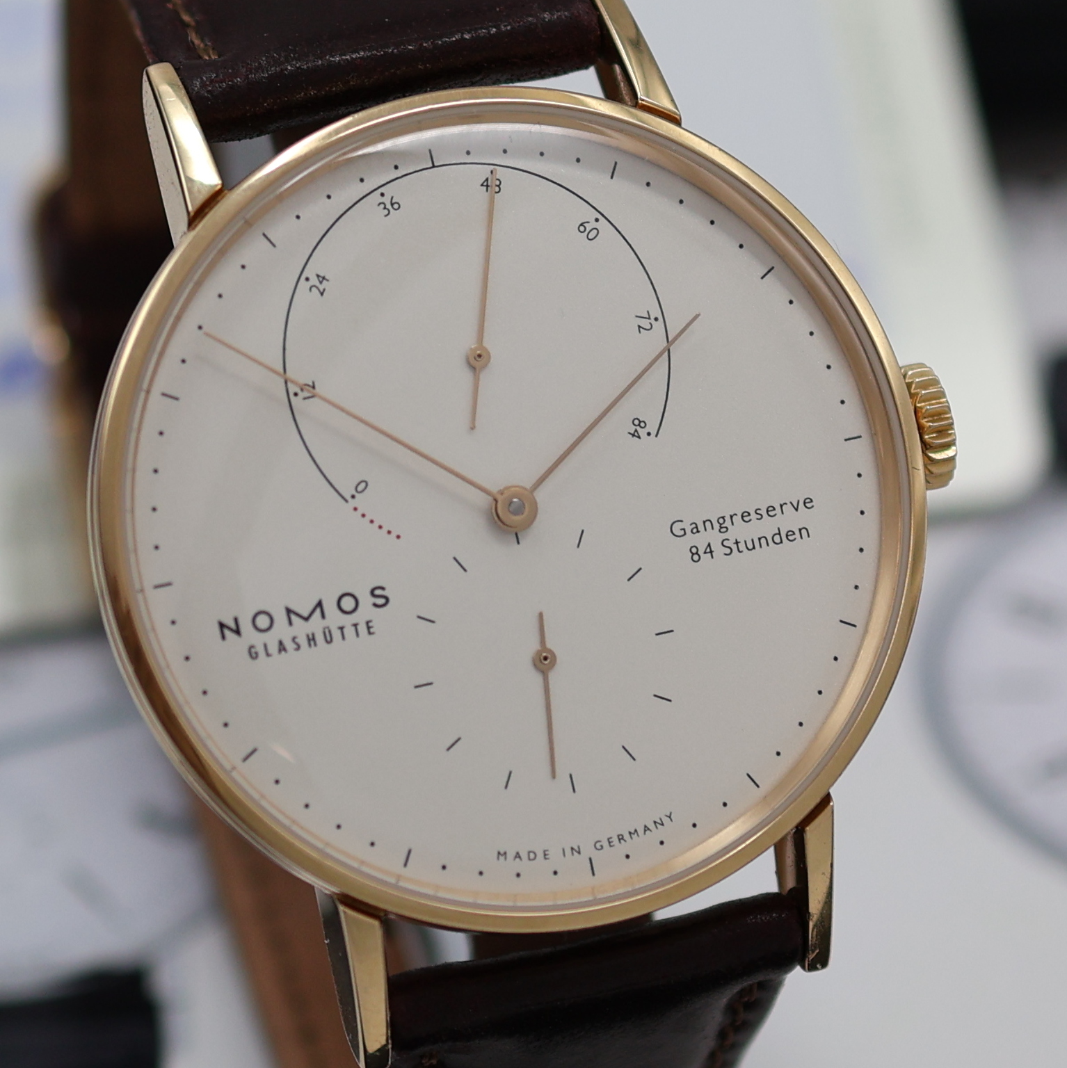 NOMOS GLASHÜTTE Herrenarmbanduhr Lambda 39 in Roségold 750/000 Referenz 952, Handaufzug,