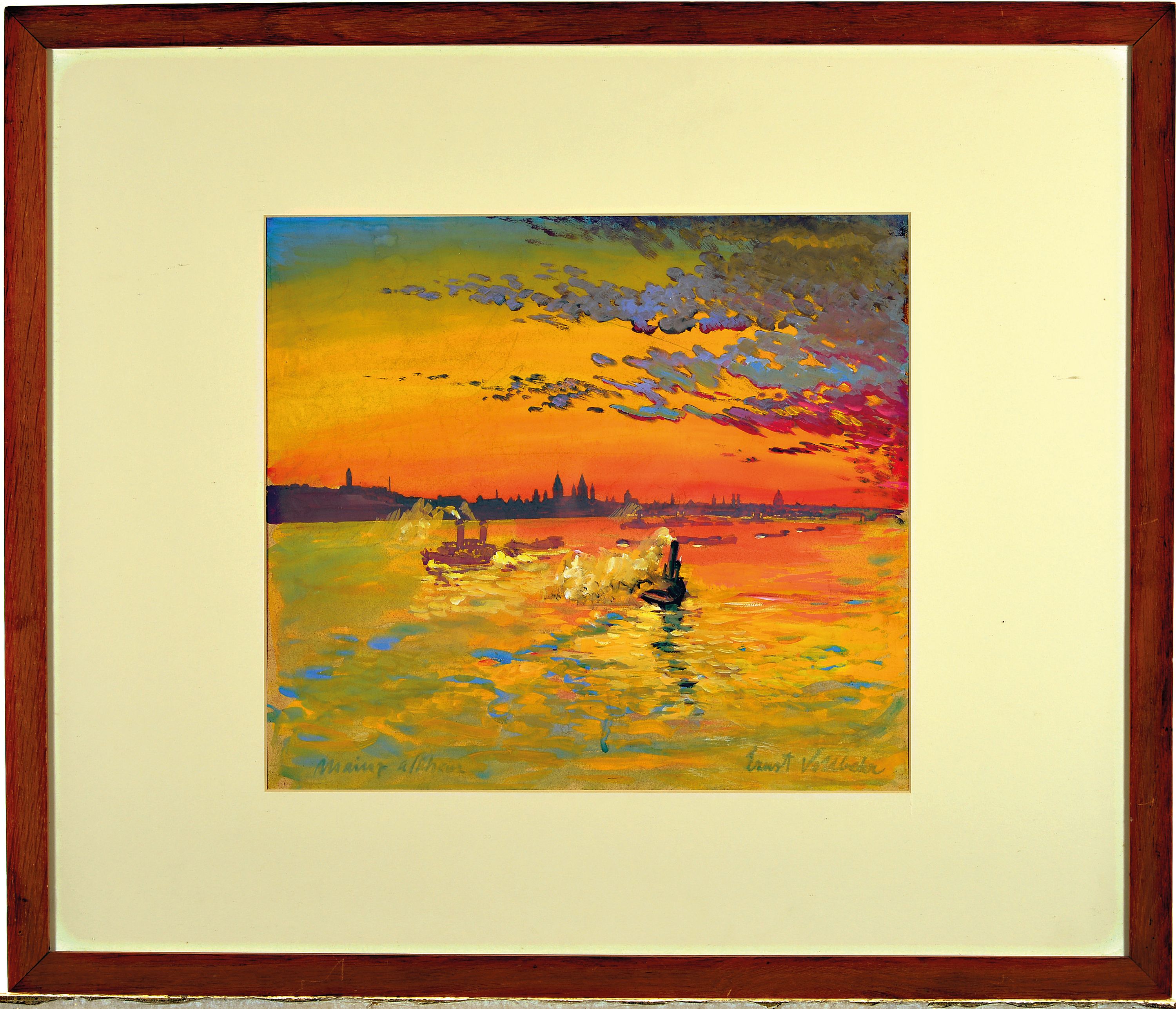 Ernst Vollbehr, 1876 Kiel-1960 Krumpendorf, Aquarell/Gouache, Blick über den Rhein