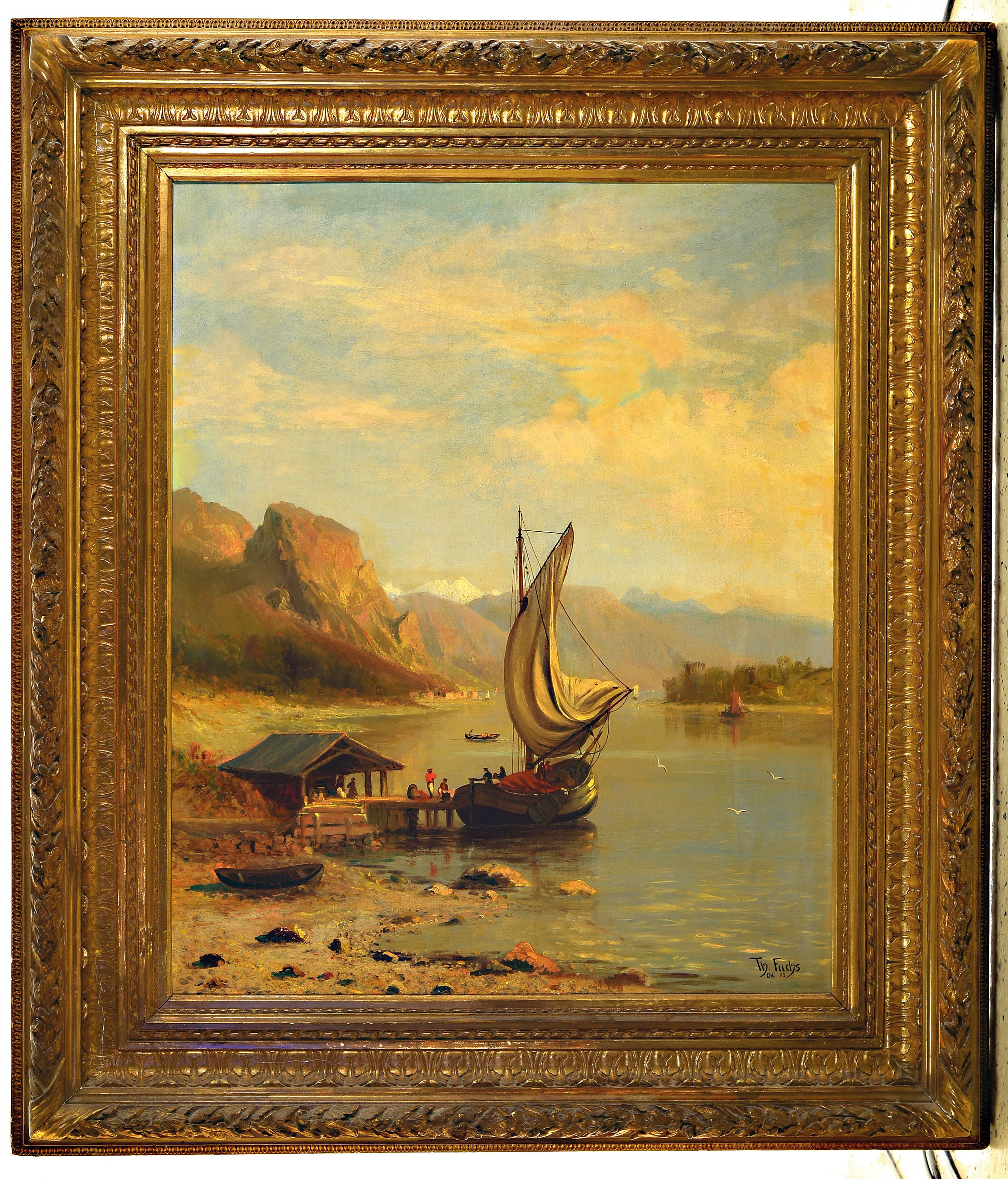 Therese Fuchs, 1849-1910, Norwegische Fjordlandschaft mit Boot am Steg, Öl/Lwd,