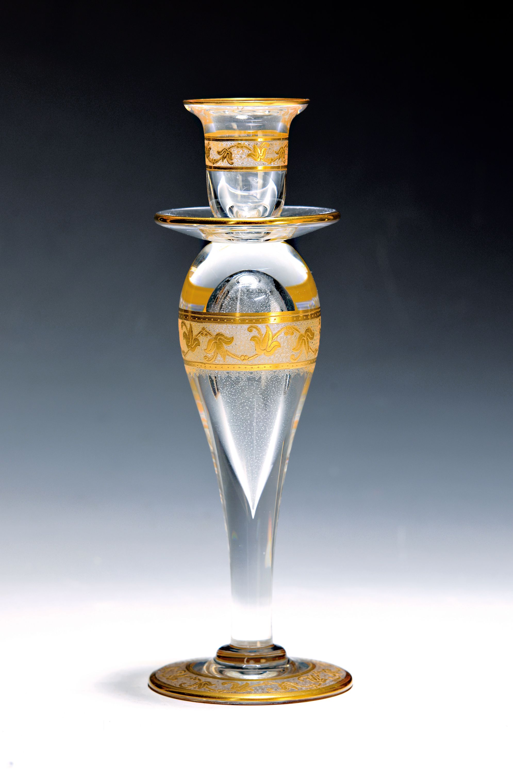 Kerzenleuchter Ivy Gold, St. Louis, Frankreich, farbloses Glas, Golddekor auf geätztem