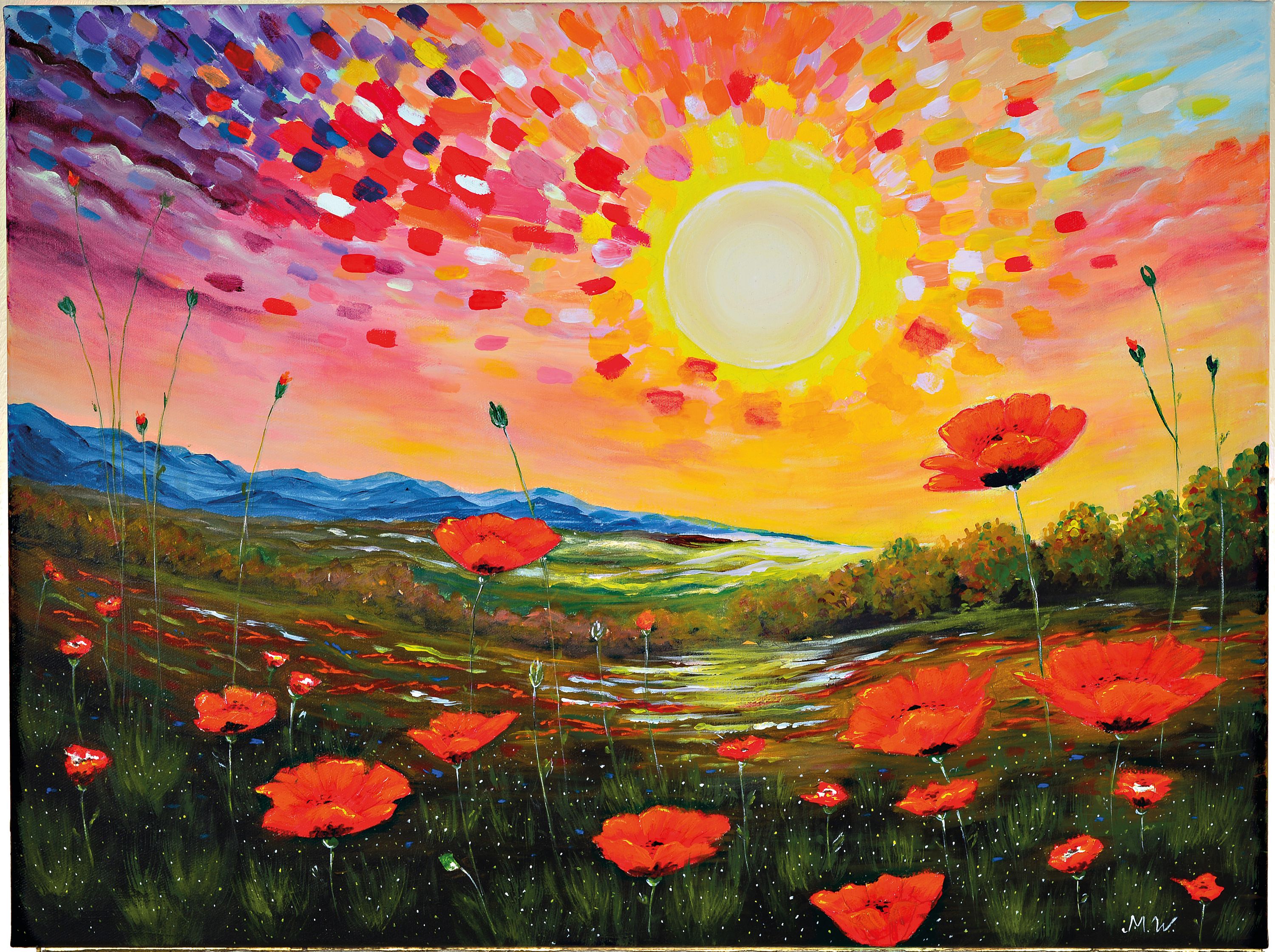 Maria Winter, geb. St. Petersburg, lebt und arbeitet in Deutschland, hier: Mohnblumenfeld,Acryl