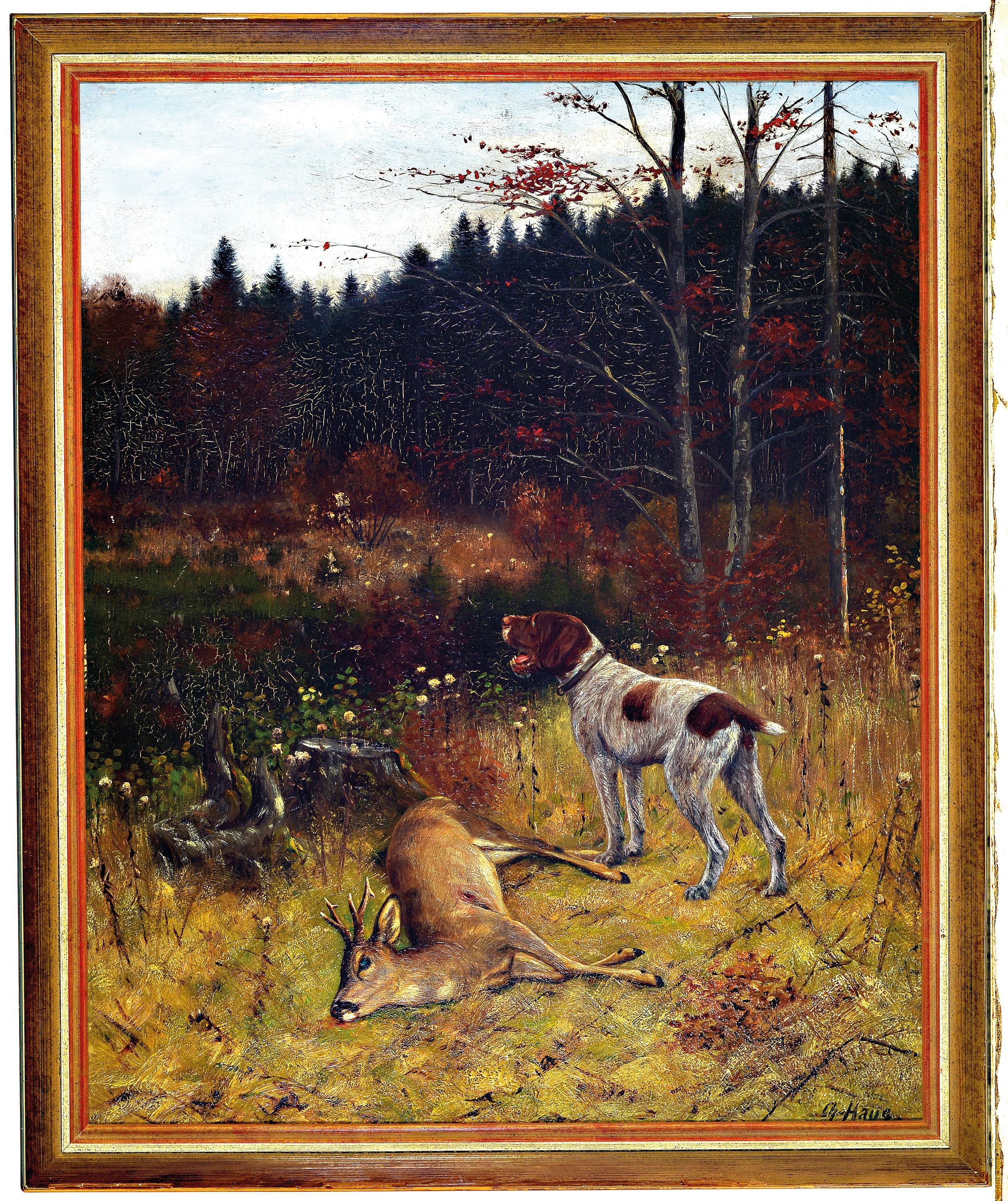 Christian Haug, 1878-1942, Jagdhund vor dem erlegten Rehbock, Öl/Malkarton, rechts
