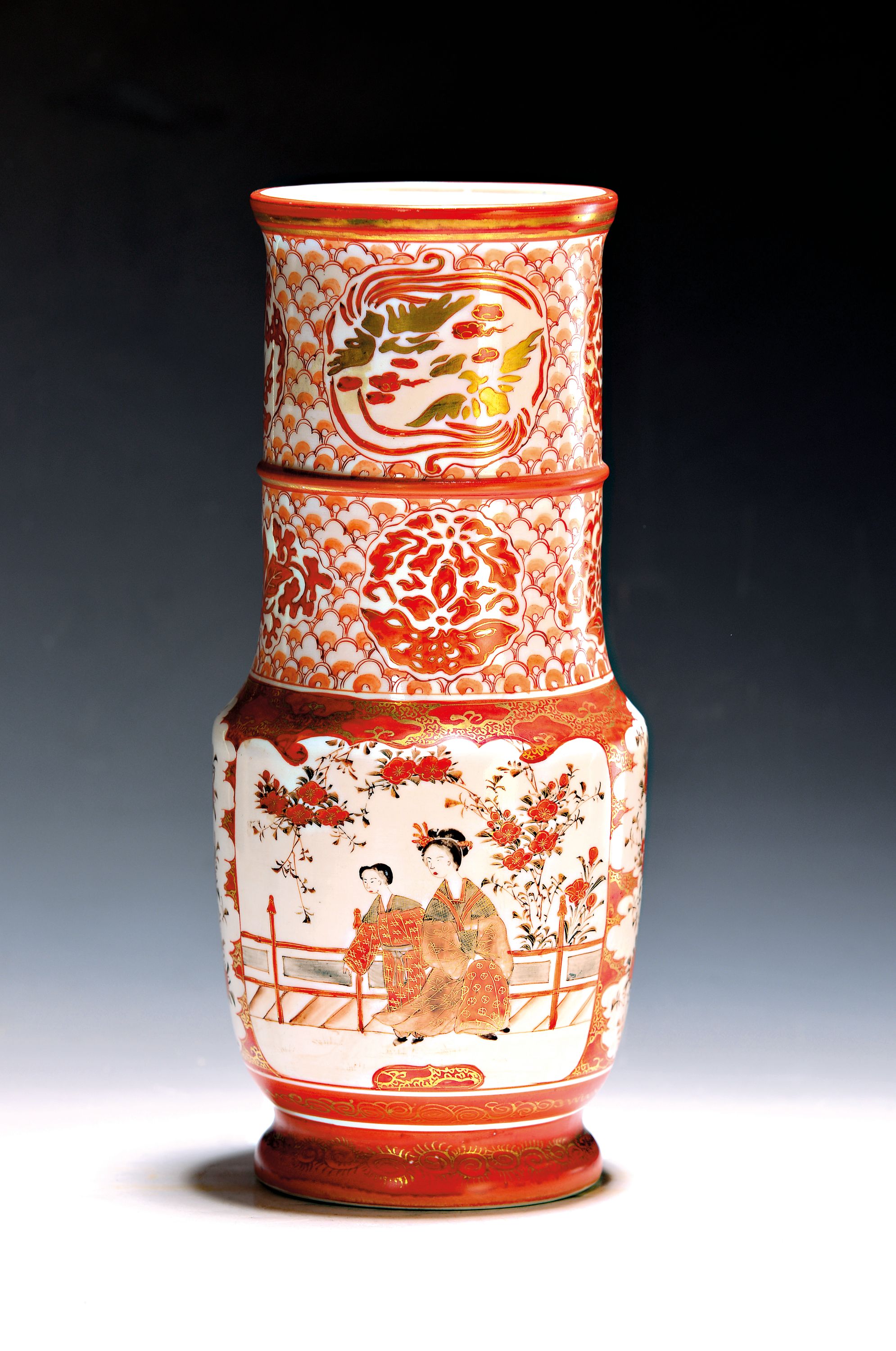 Kutani-Vase, Japan, Taisho-Zeit oder später, Porzellan, Malerei in rot und gold,