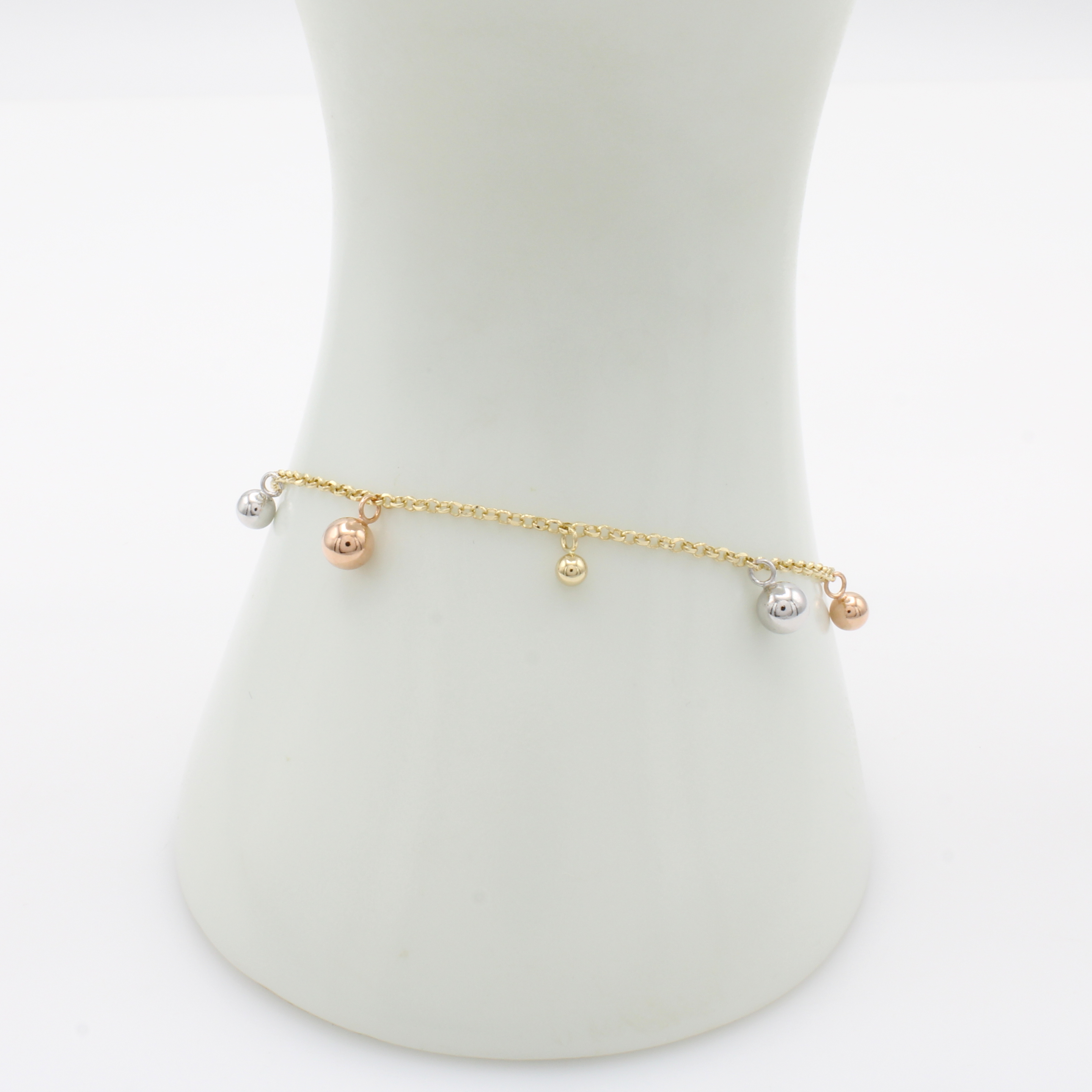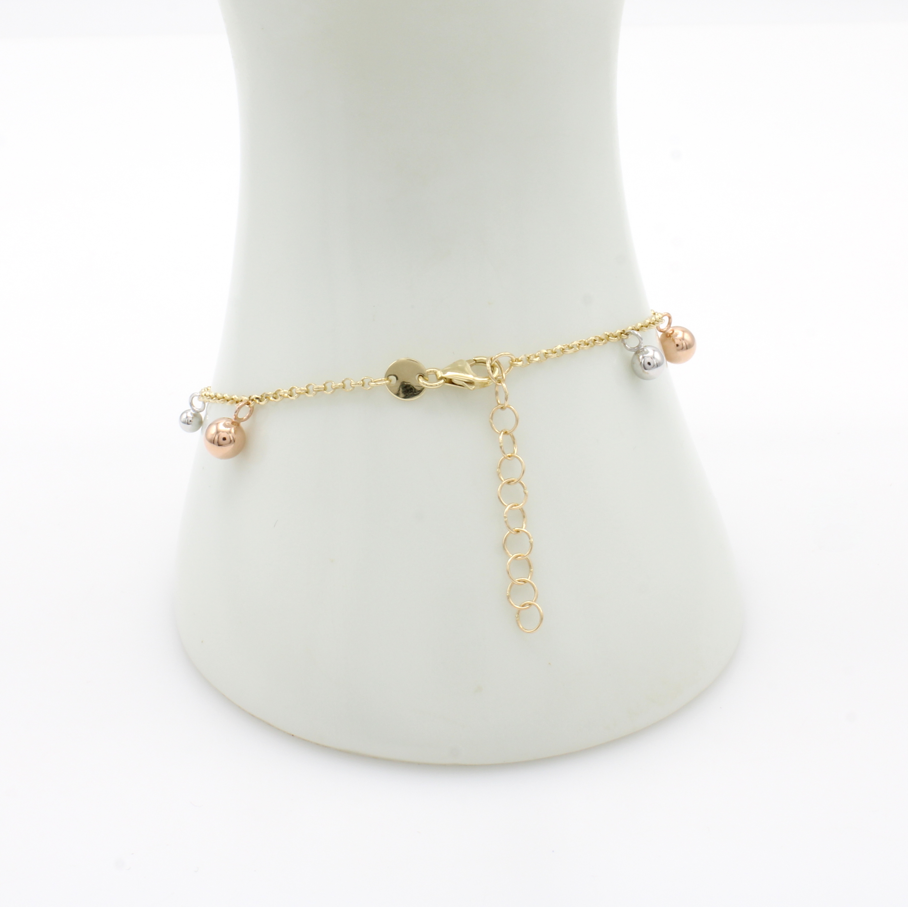 Kugelarmband, GG/WG/RG 585/000, Karabiner- schl., Abhängungen bewegl., in L. ca. 18-21 cm