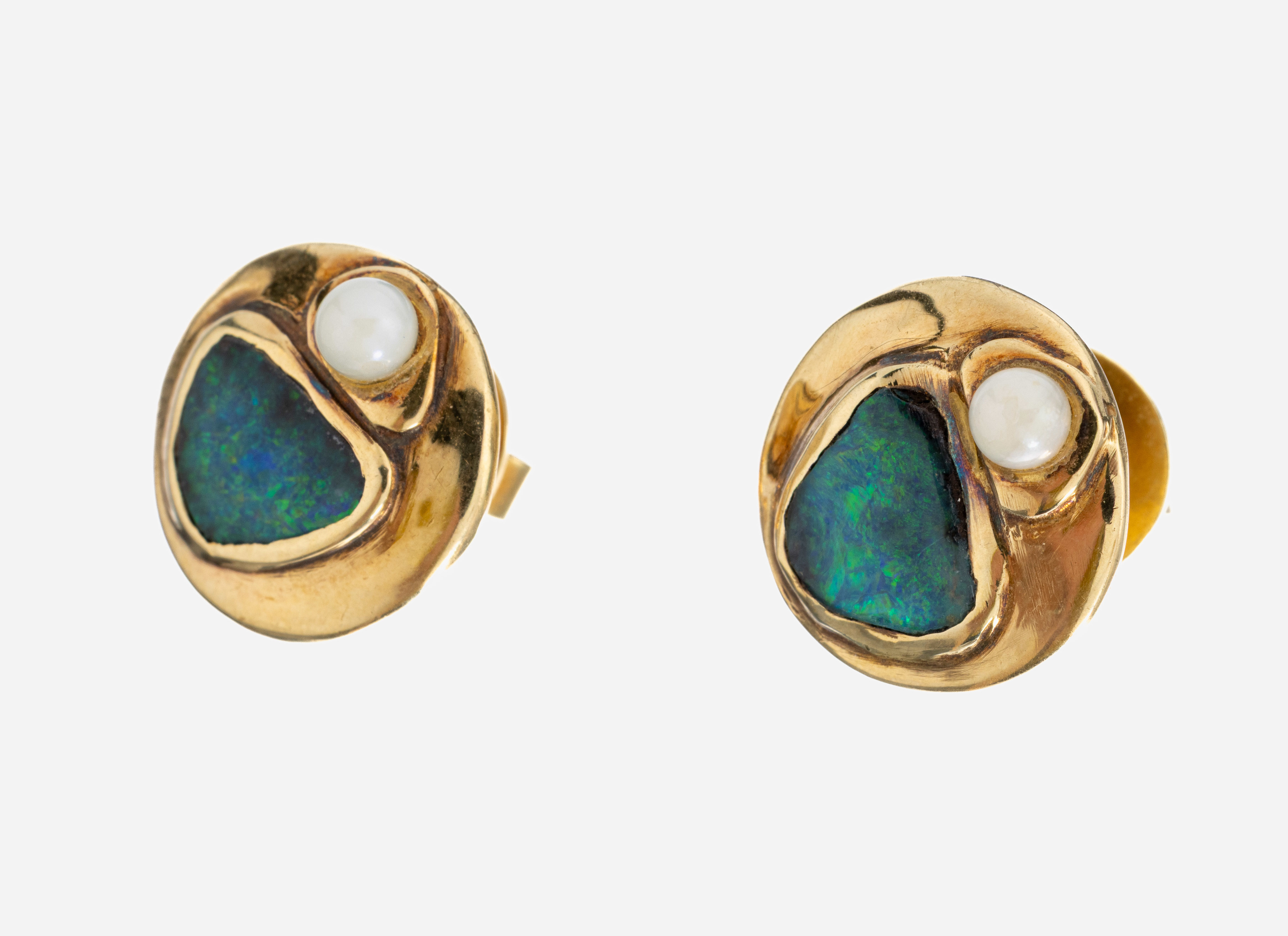 Paar 14 kt Gold Opal-Perl-Ohrstecker, GG 585/000, qualitätvolle Verarbeitung, 2