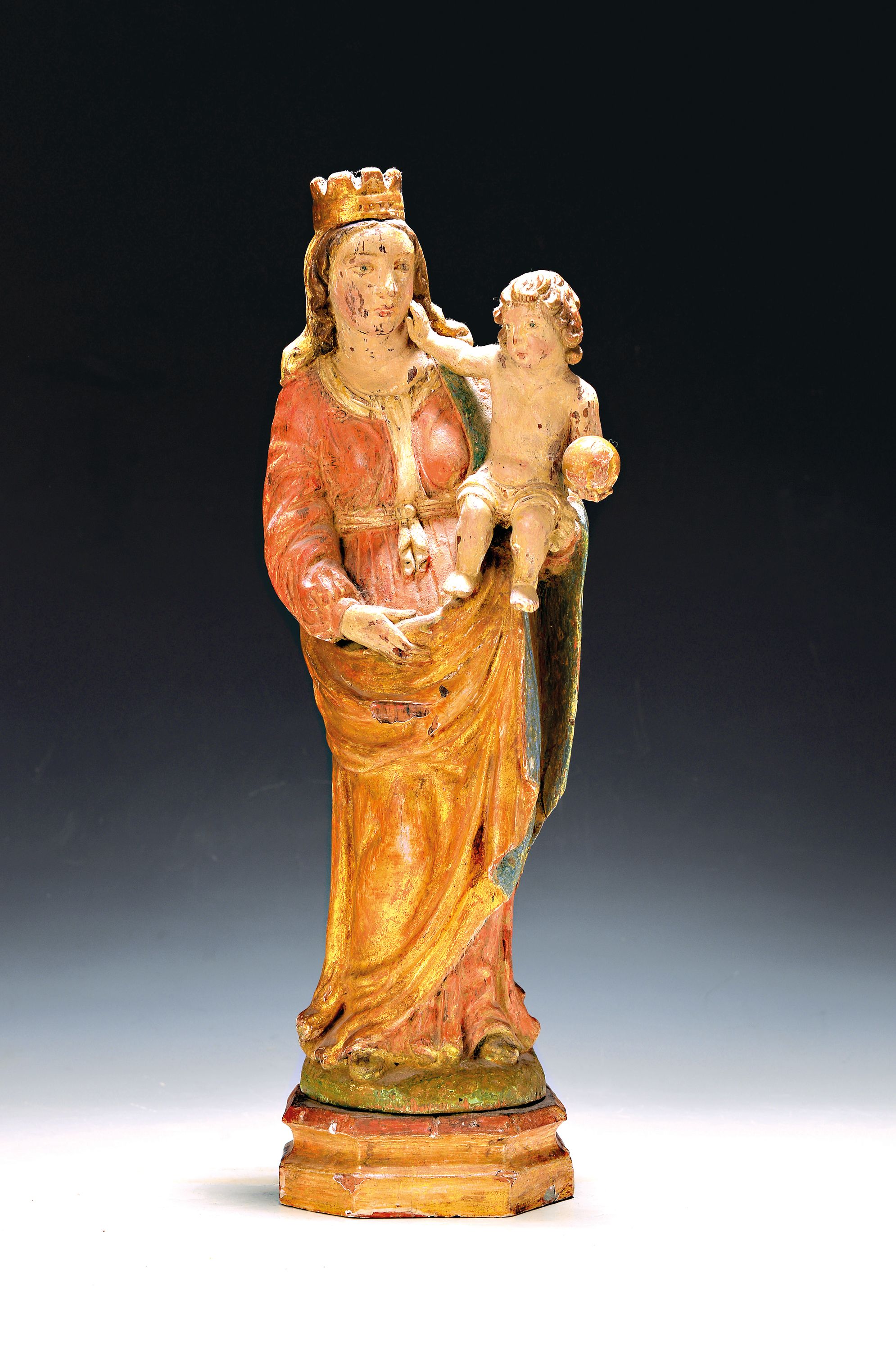 Heiligenfigur/Bildschnitzerei, rheinisch , frühes 18. Jh., Mutter Gottes mit Christuskind,