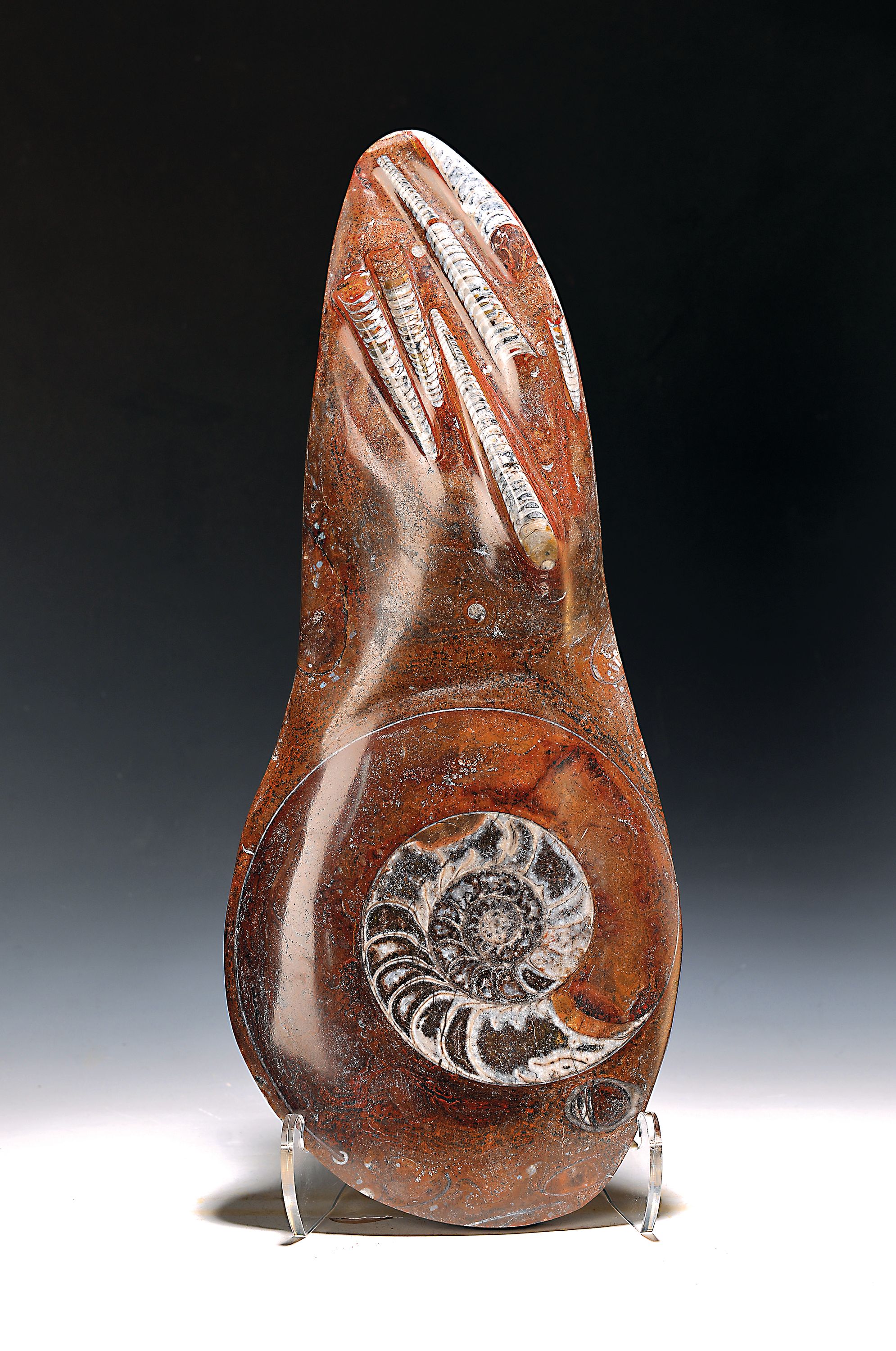 Fossil Ammonit Othoceras, Devon, Erfoud, Marokko, poliert, ca. 52 x 20.5 cm